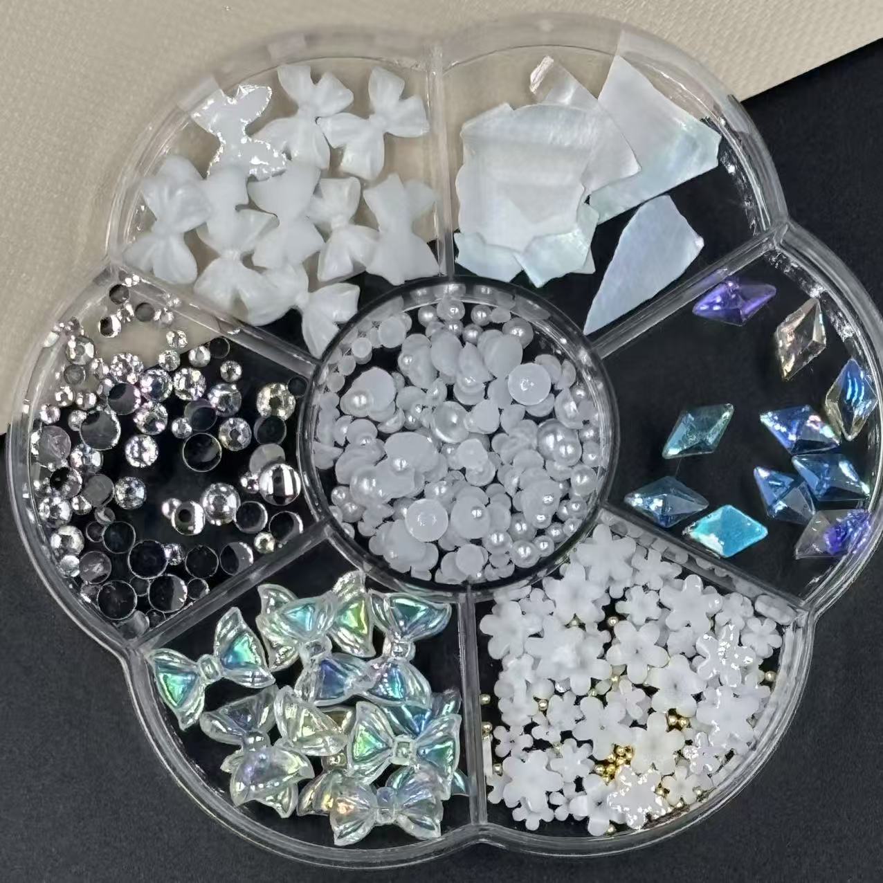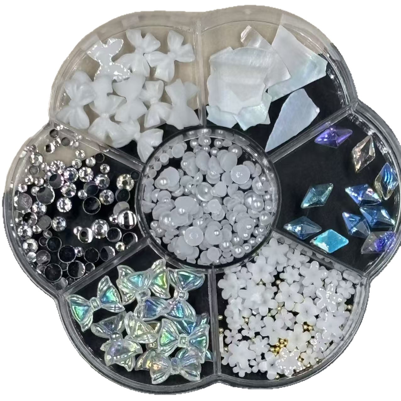 아마존 핫 세일 네일 아크릴 수지 플랫 화이트 다이아몬드 반원 진주 장식