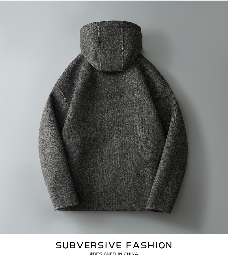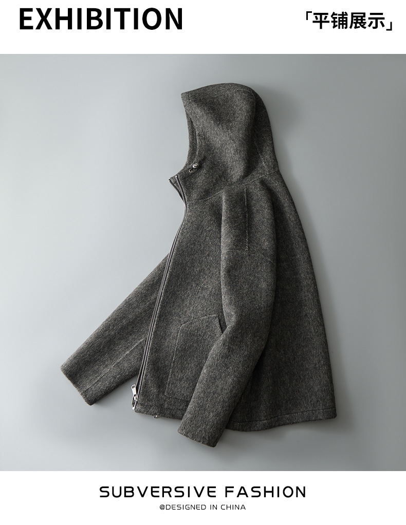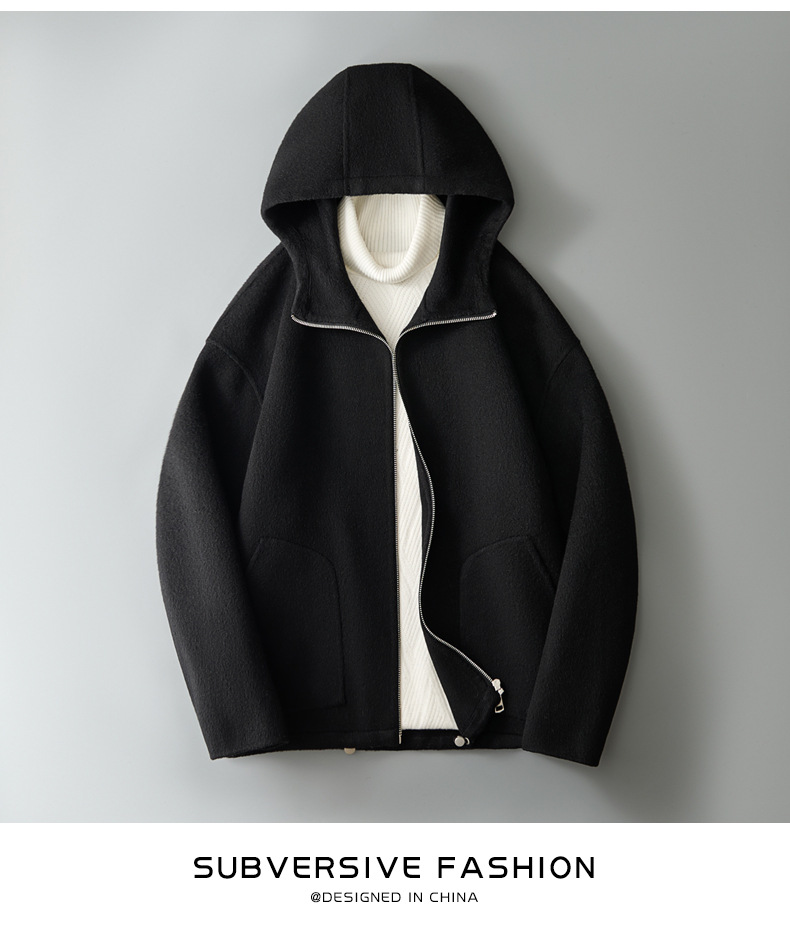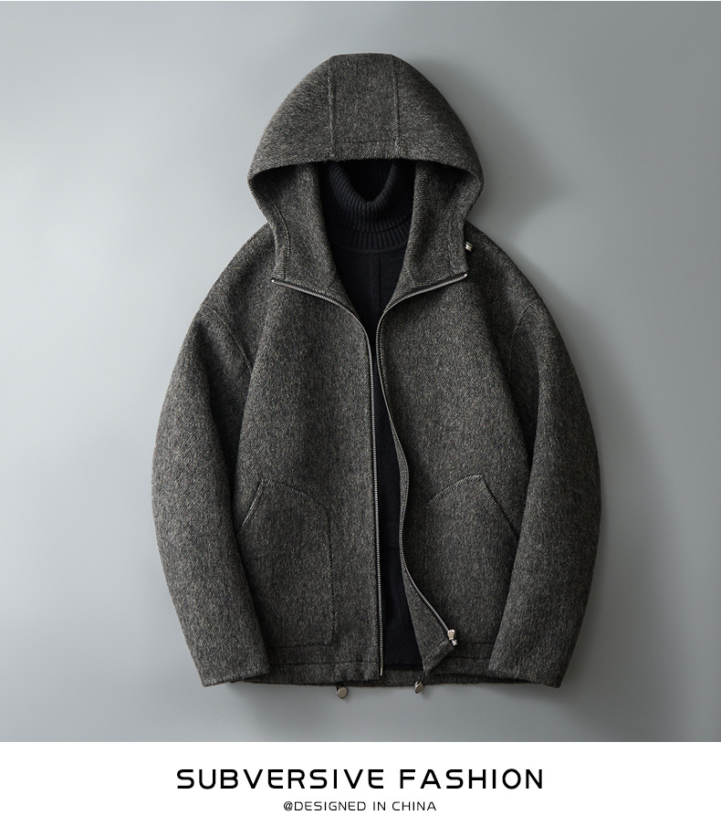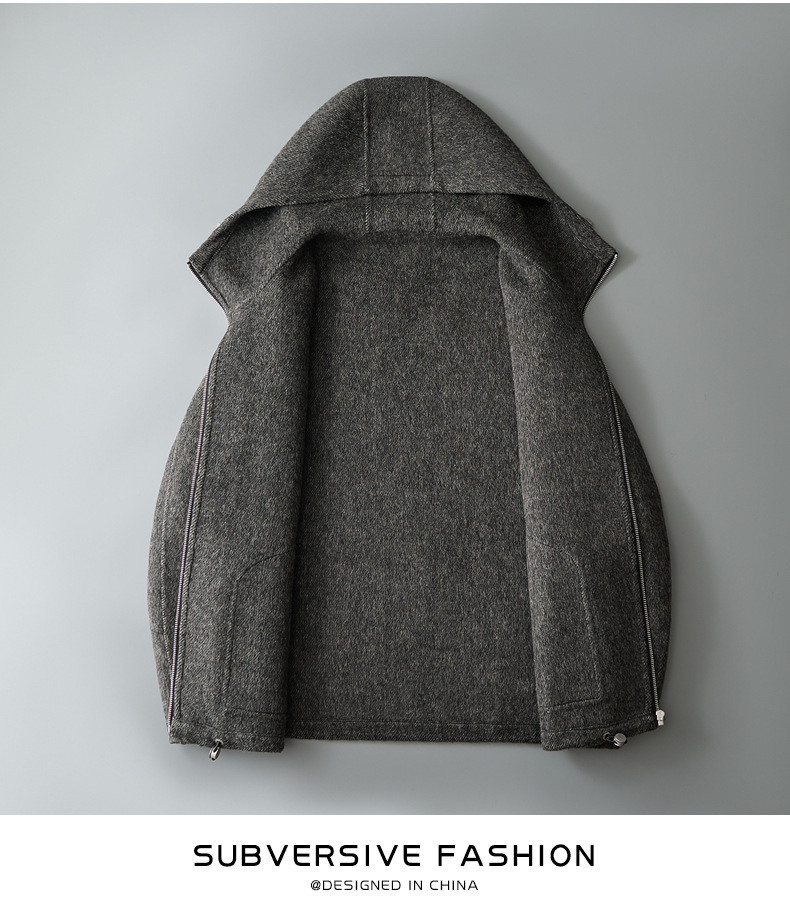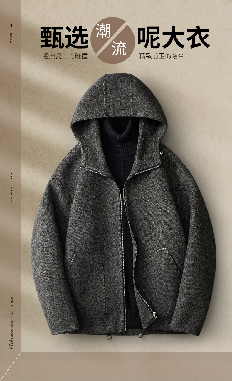 유럽역 2025 봄새 남자 양면 모직 쇼트코트 한국 캐주얼 양모 후드재킷