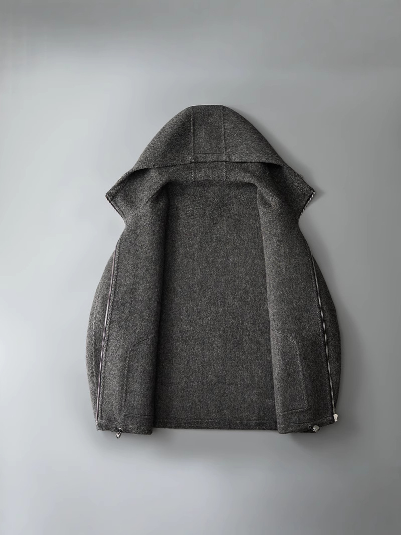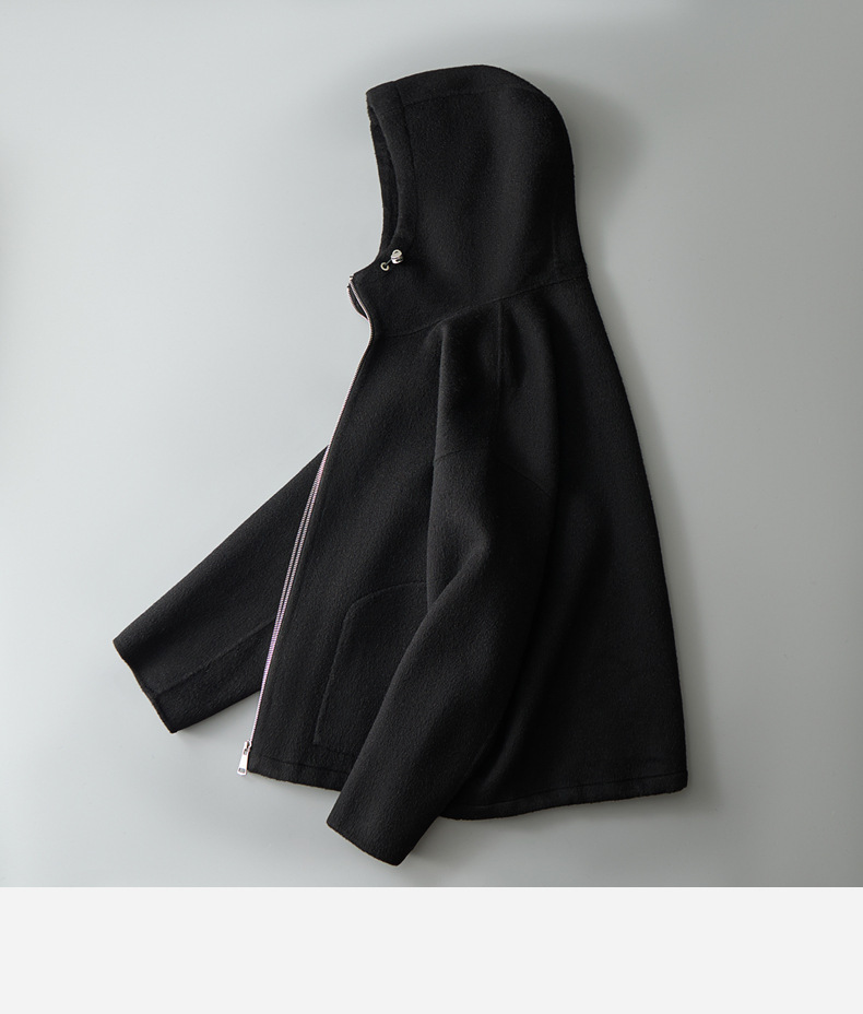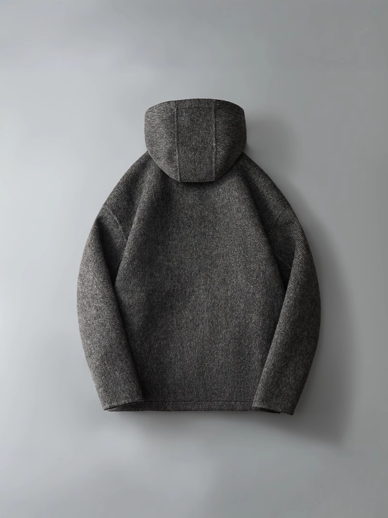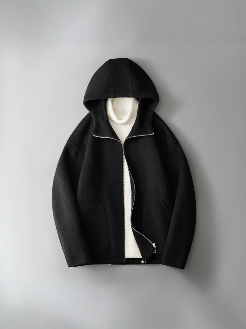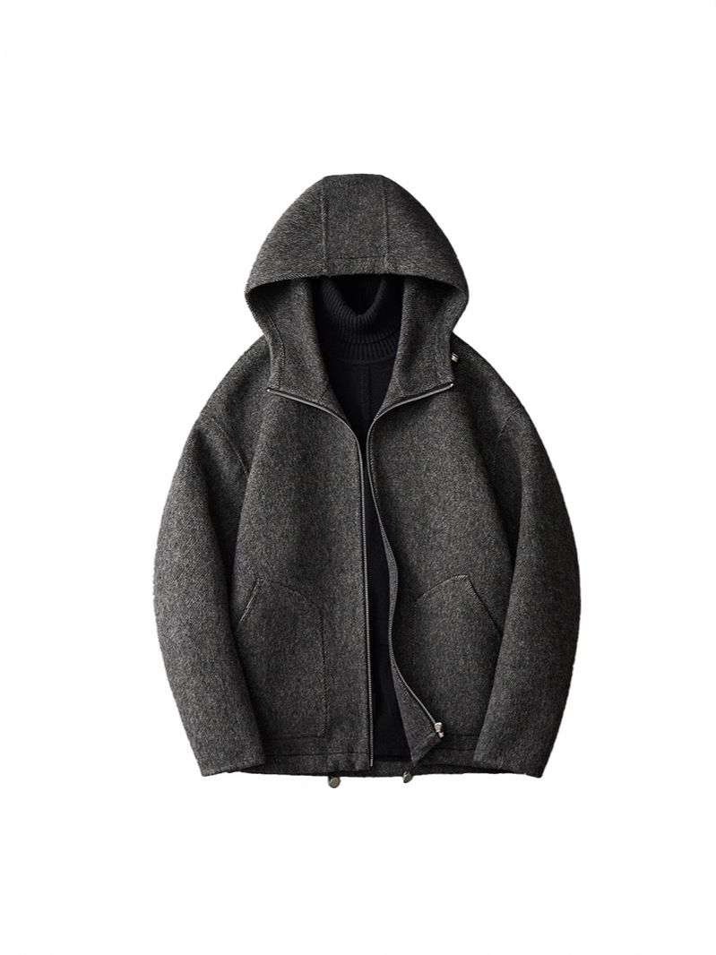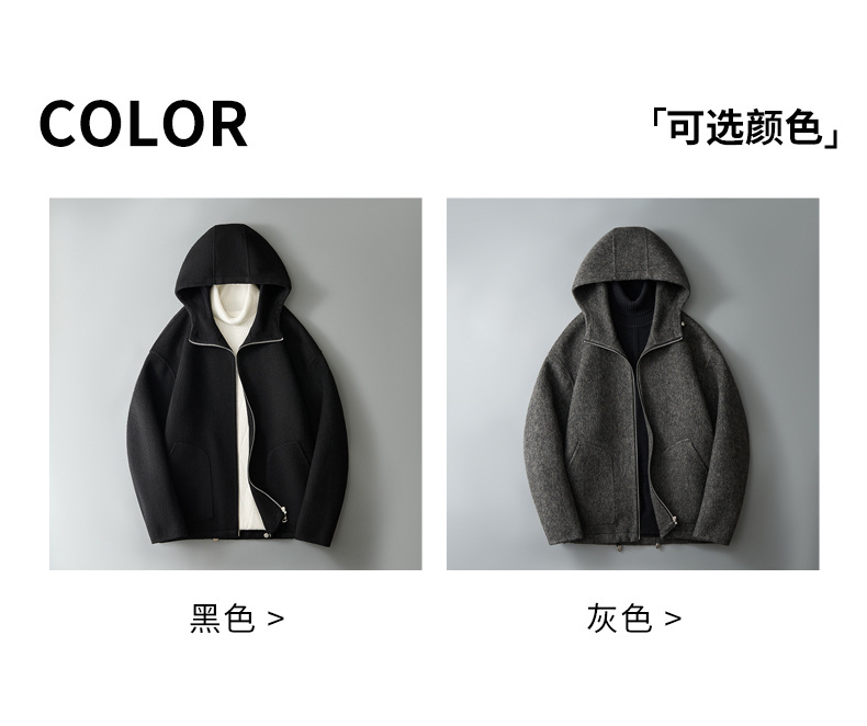 유럽역 2025 봄새 남자 양면 모직 쇼트코트 한국 캐주얼 양모 후드재킷