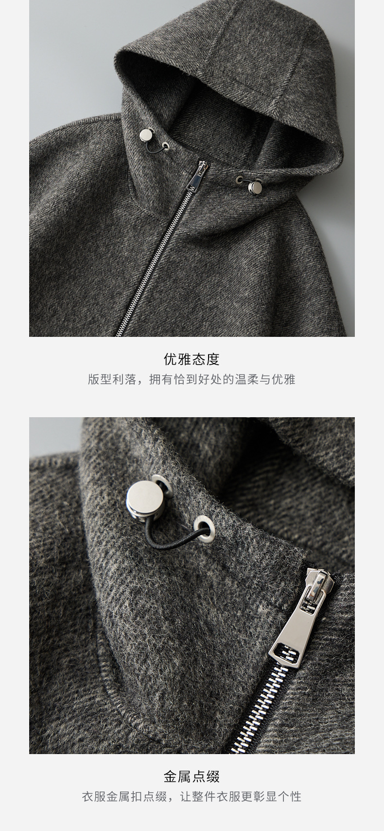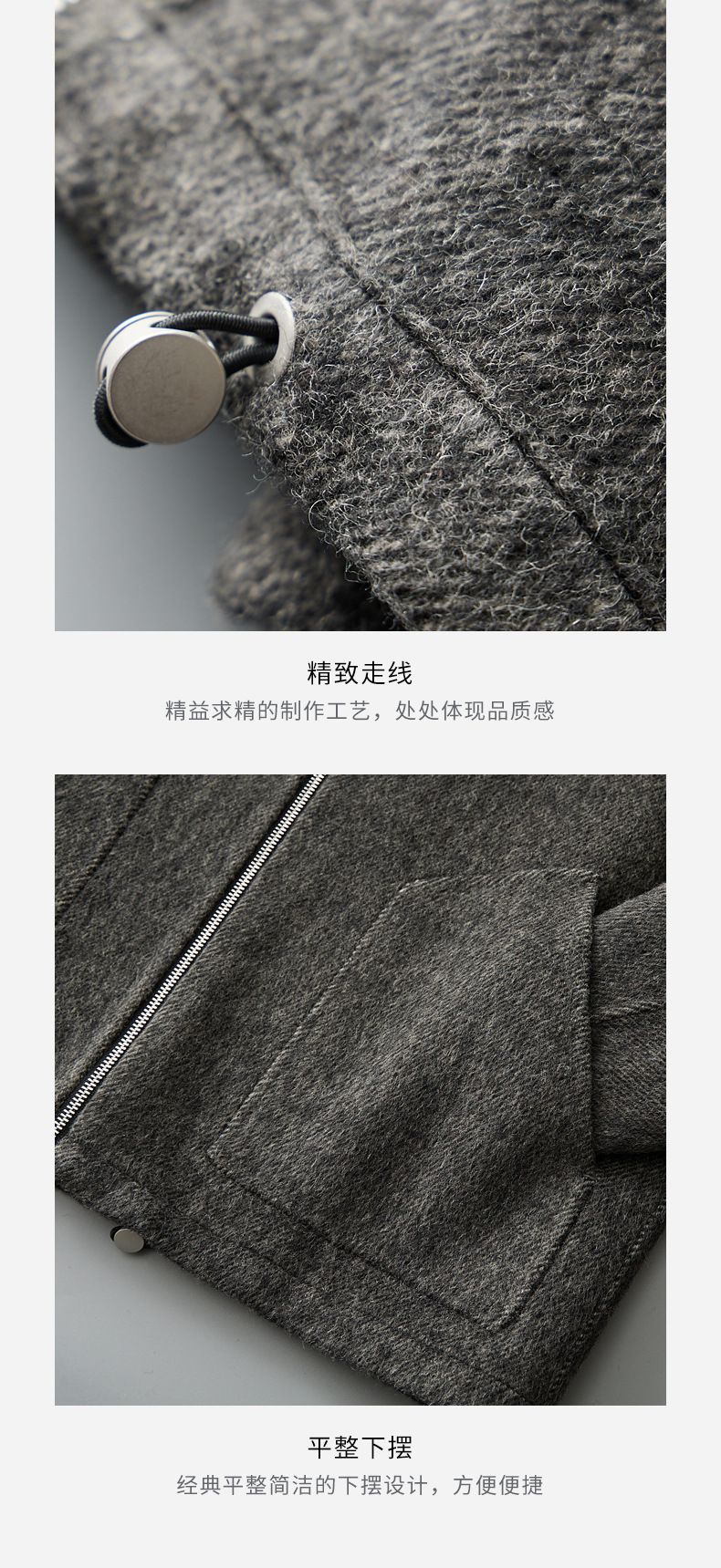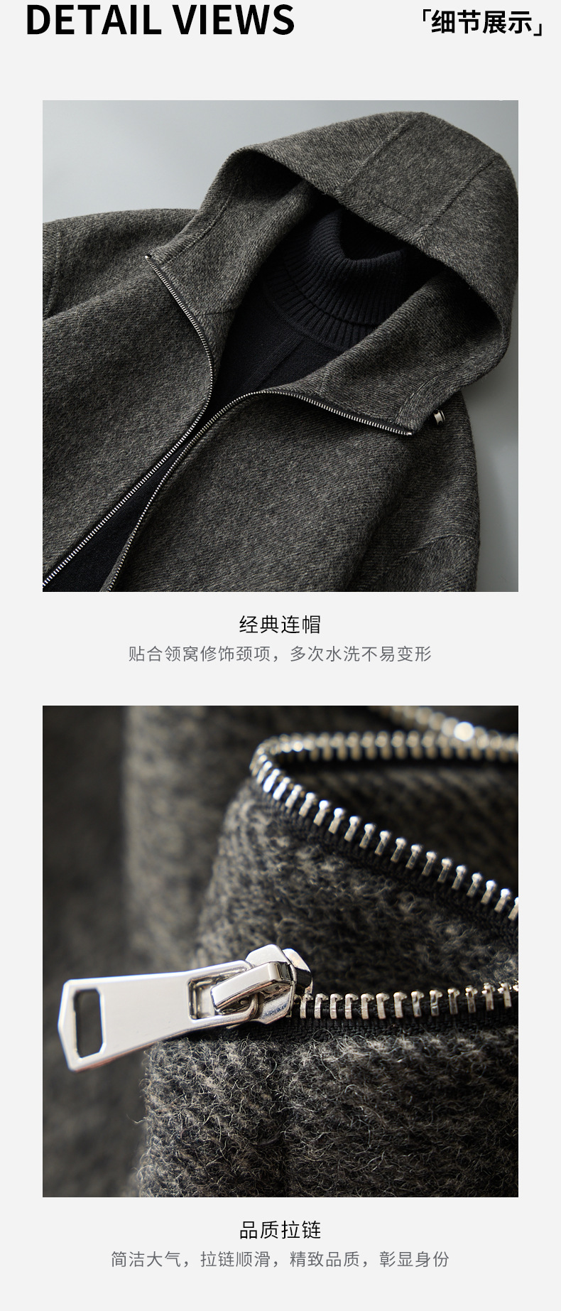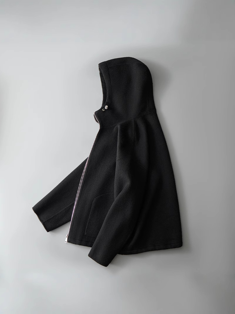유럽역 2025 봄새 남자 양면 모직 쇼트코트 한국 캐주얼 양모 후드재킷