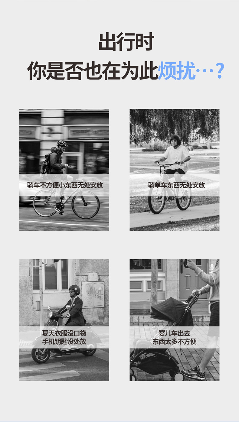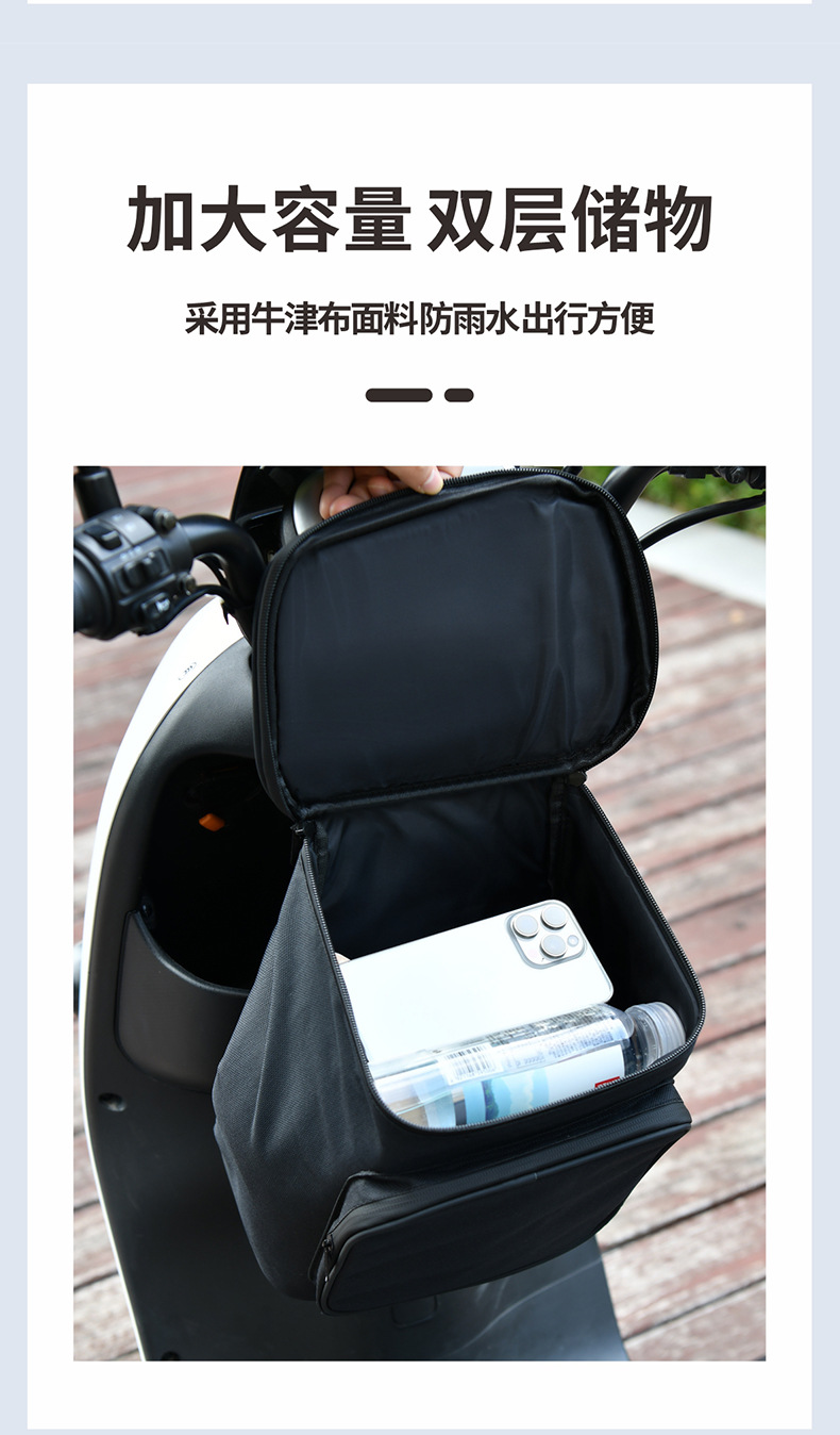 대형 전동 스쿠터 전면 수납 가방 옥스포드 천 - 블랙