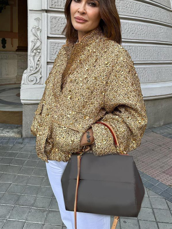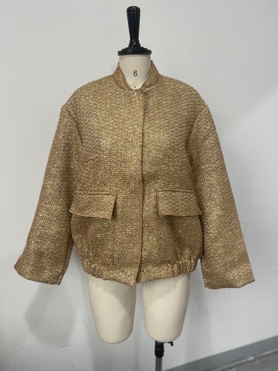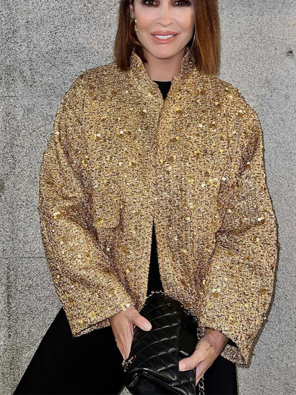 2023 레트로 스타일 자켓 가을 겨울 골드 우아한 오프숄더 허리 조임 긴팔 자켓 여성복 신상