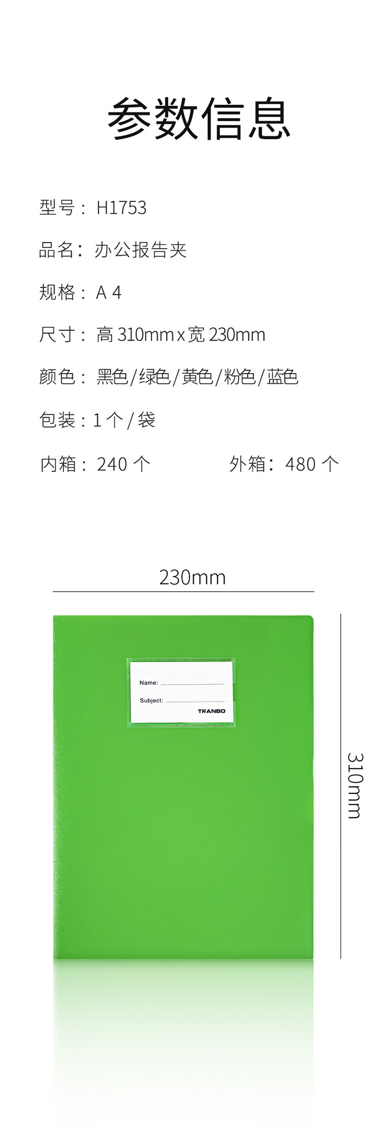 Tranbo/전체 표준 패션 학생 테스트 종이 스토리지 폴더 패션 라이트 컬러 인증서 컬렉션 사무실 보고서 폴더