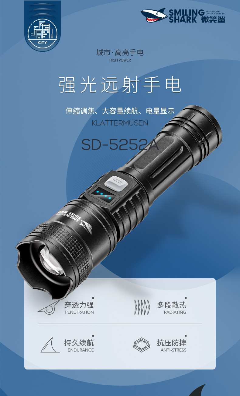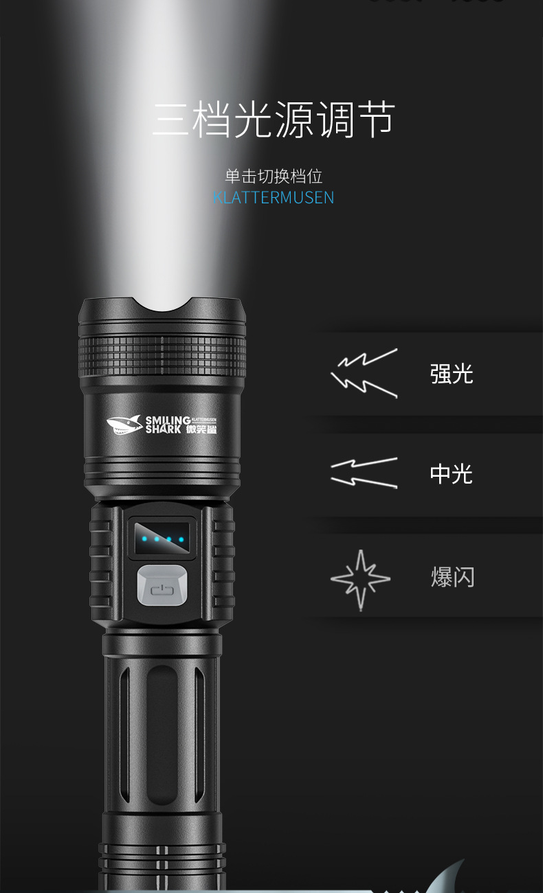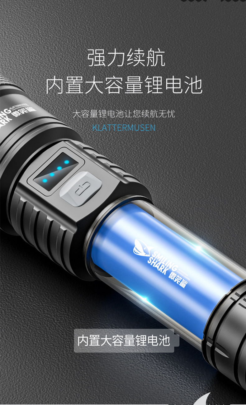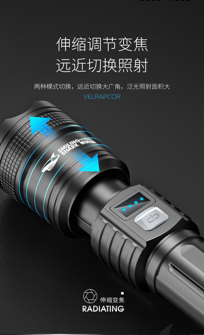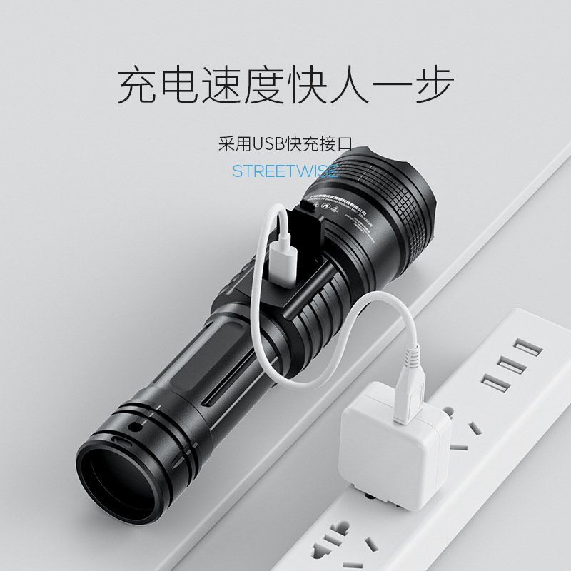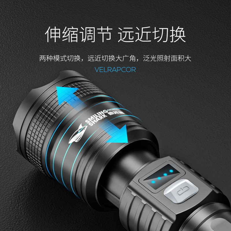야외 줌 장거리 ABS 손전등 LED 전원 디스플레이 휴대용 하이라이트 손전등 가정용 비상 손전등