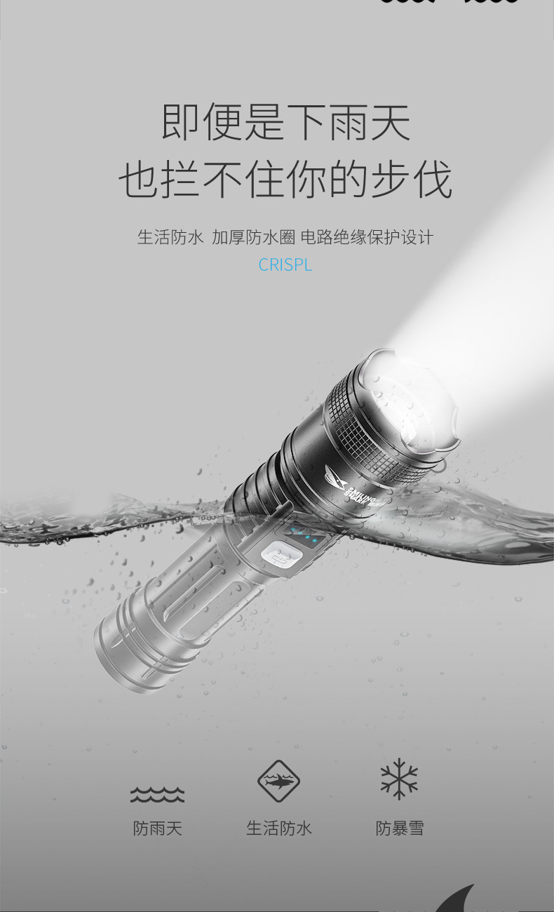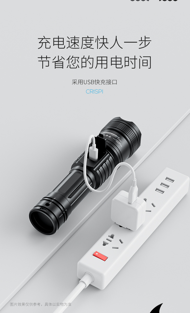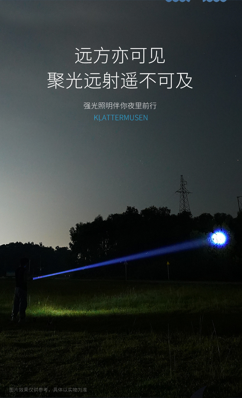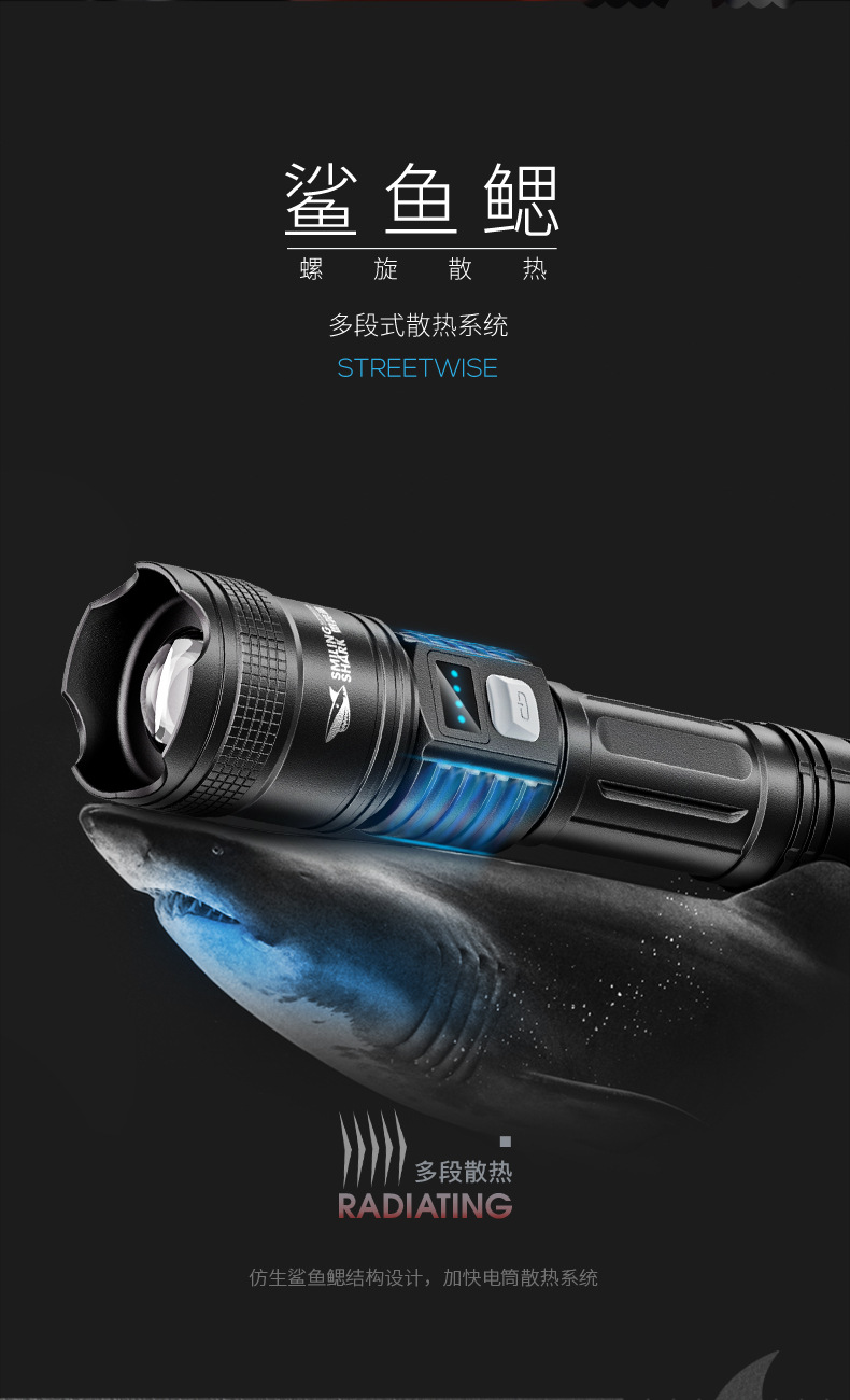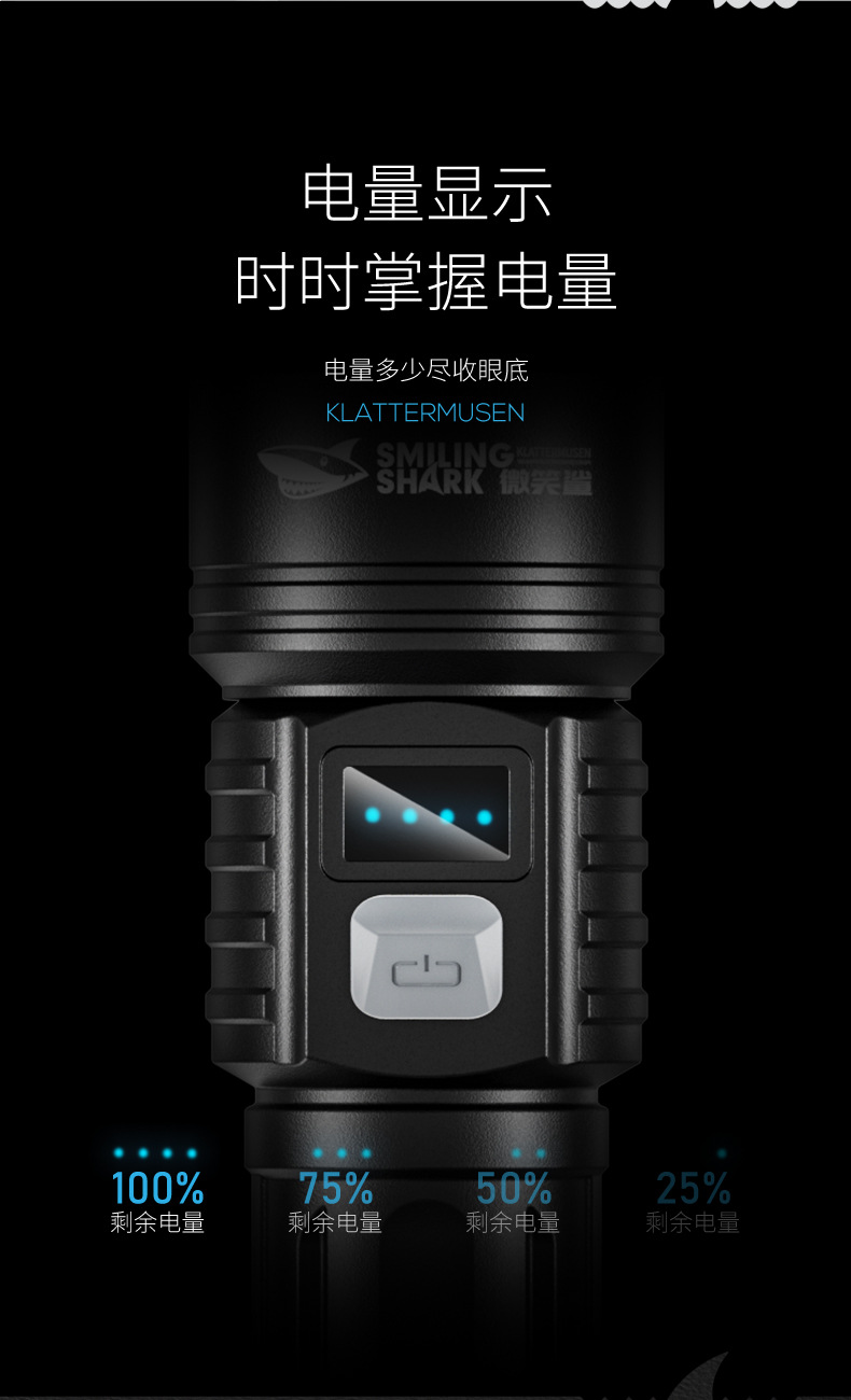 야외 줌 장거리 ABS 손전등 LED 전원 디스플레이 휴대용 하이라이트 손전등 가정용 비상 손전등