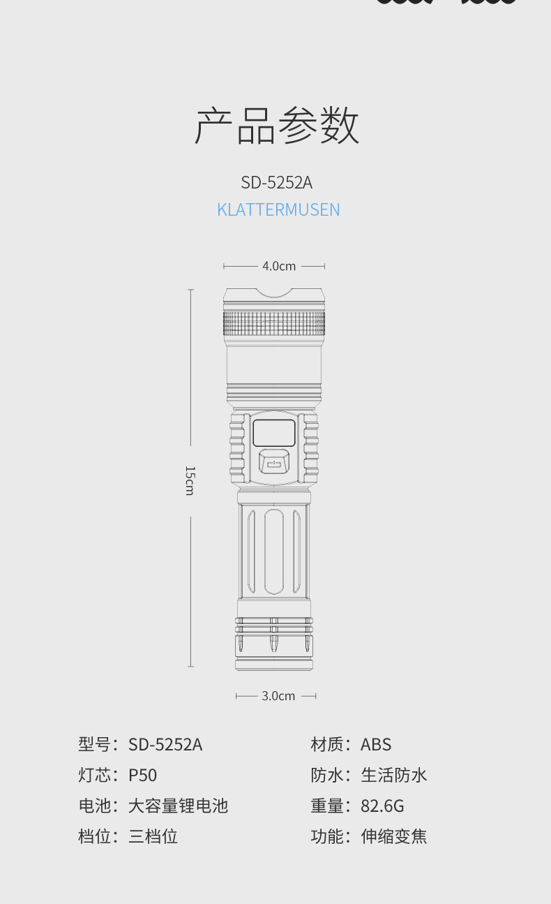 SD-5300 미니 휴대용 손전등 [백색광, 내장 배터리 400MAH]