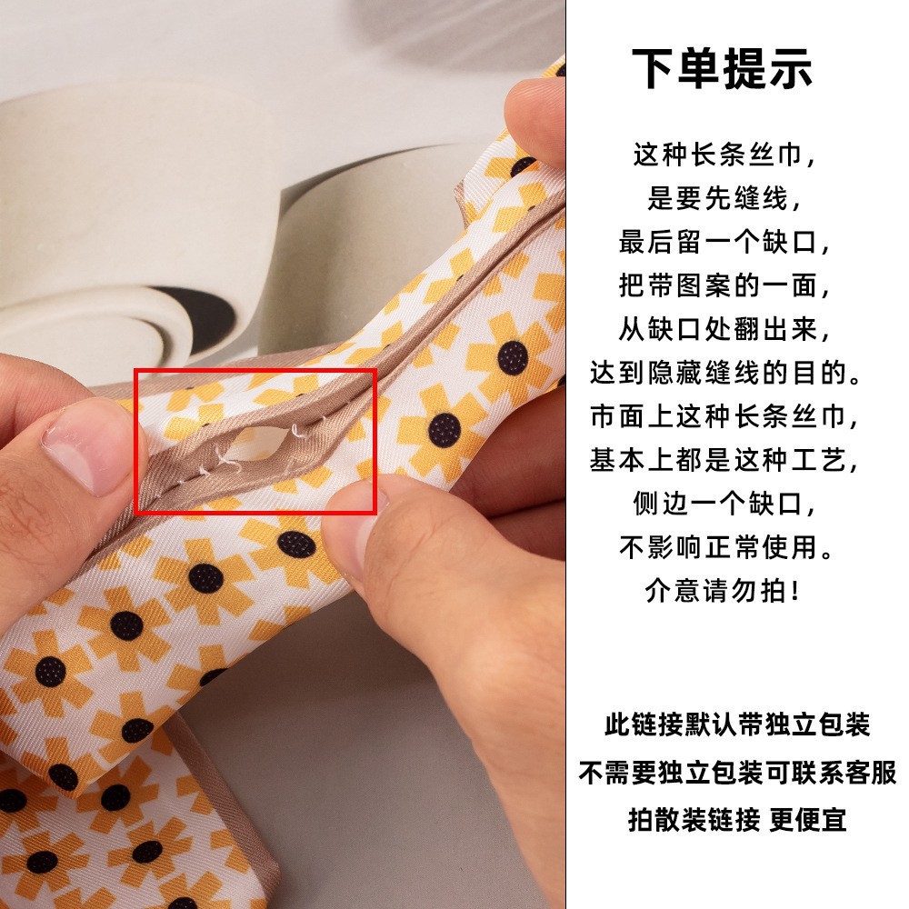 세련된 롱 실크 스카프, 우아한 분위기, 공장 직판, 머리끈, 노란색 꽃무늬, 새로운 스타일, 녹색 스카프