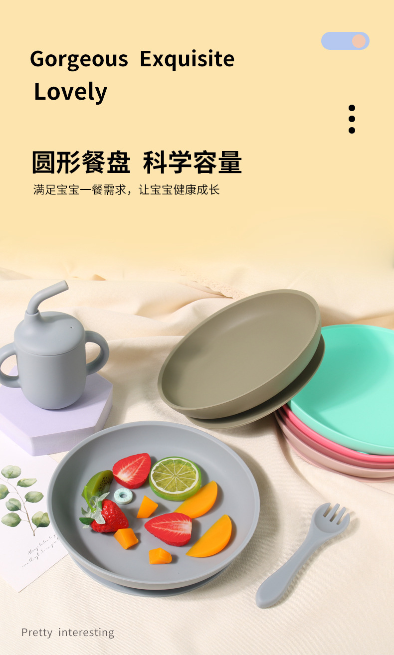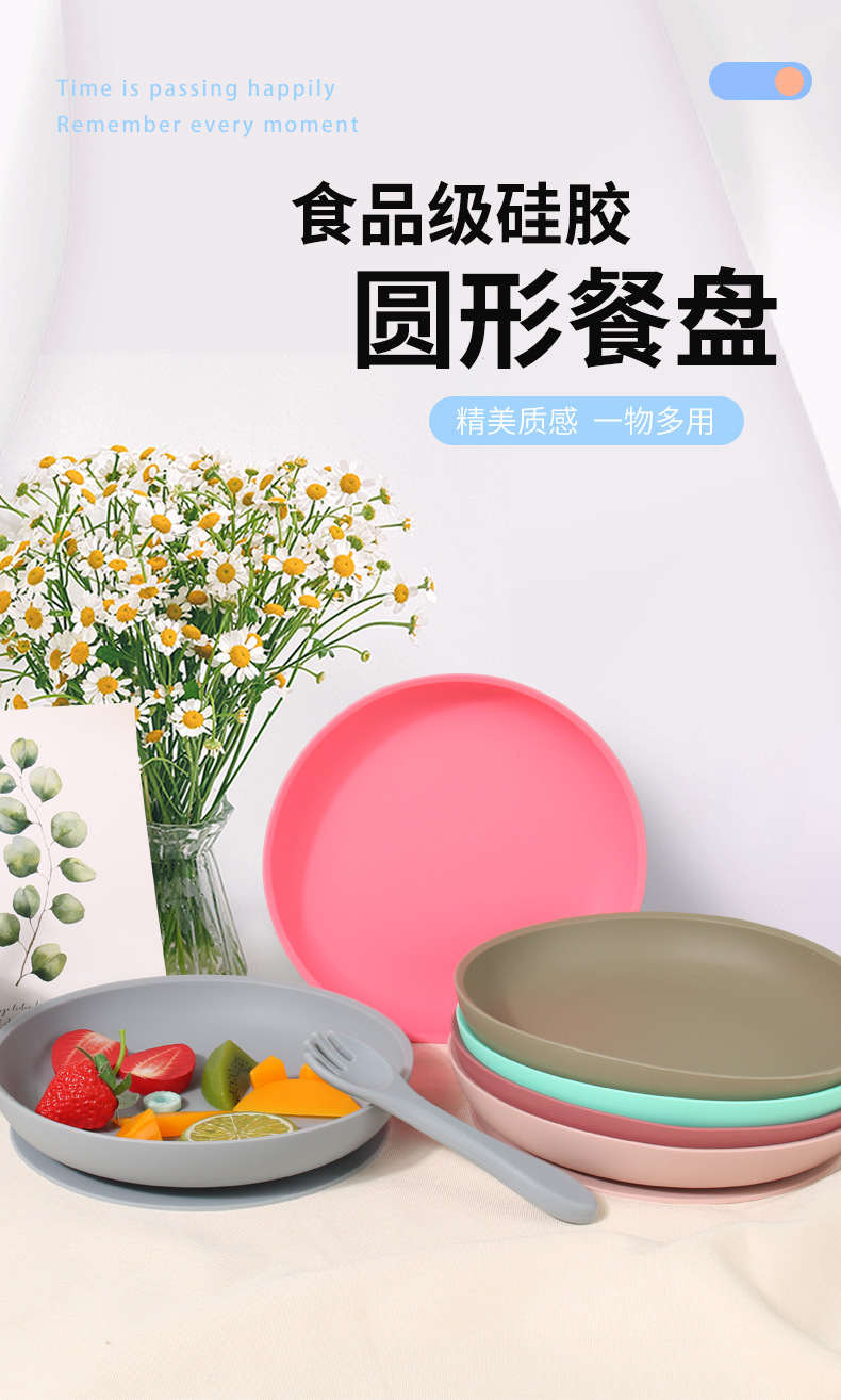 아기 실리콘 디너 플레이트 어린이 접시 큰 흡입 과일 플레이트 비산적인 공급 식기 세트 레스토랑 라운드 플레이트