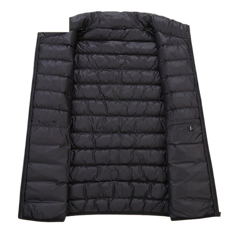 Hengyuanxiang 얇은 다운 재킷 남자의 겨울 새로운 경량 수직 칼라 짧은 아빠를위한 따뜻한 내부 라이너 재킷