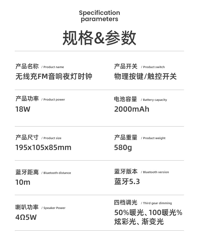 夜灯模式:50%暖灯/100%暖灯/跑马灯/渐变灯