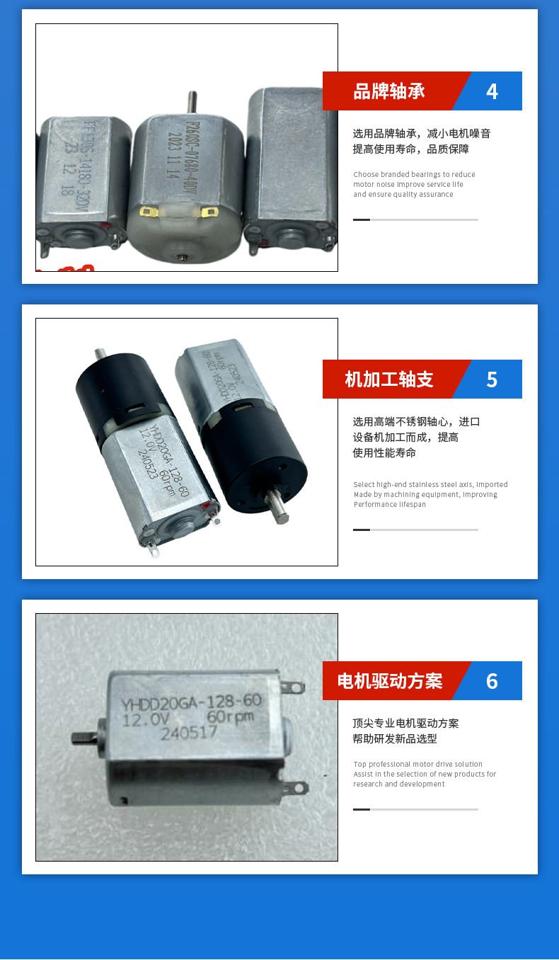YHD130 마이크로 DC 브러시 감속기 모터 전기 칫솔 워터 펌프 면도기 침묵하는 작은 모터