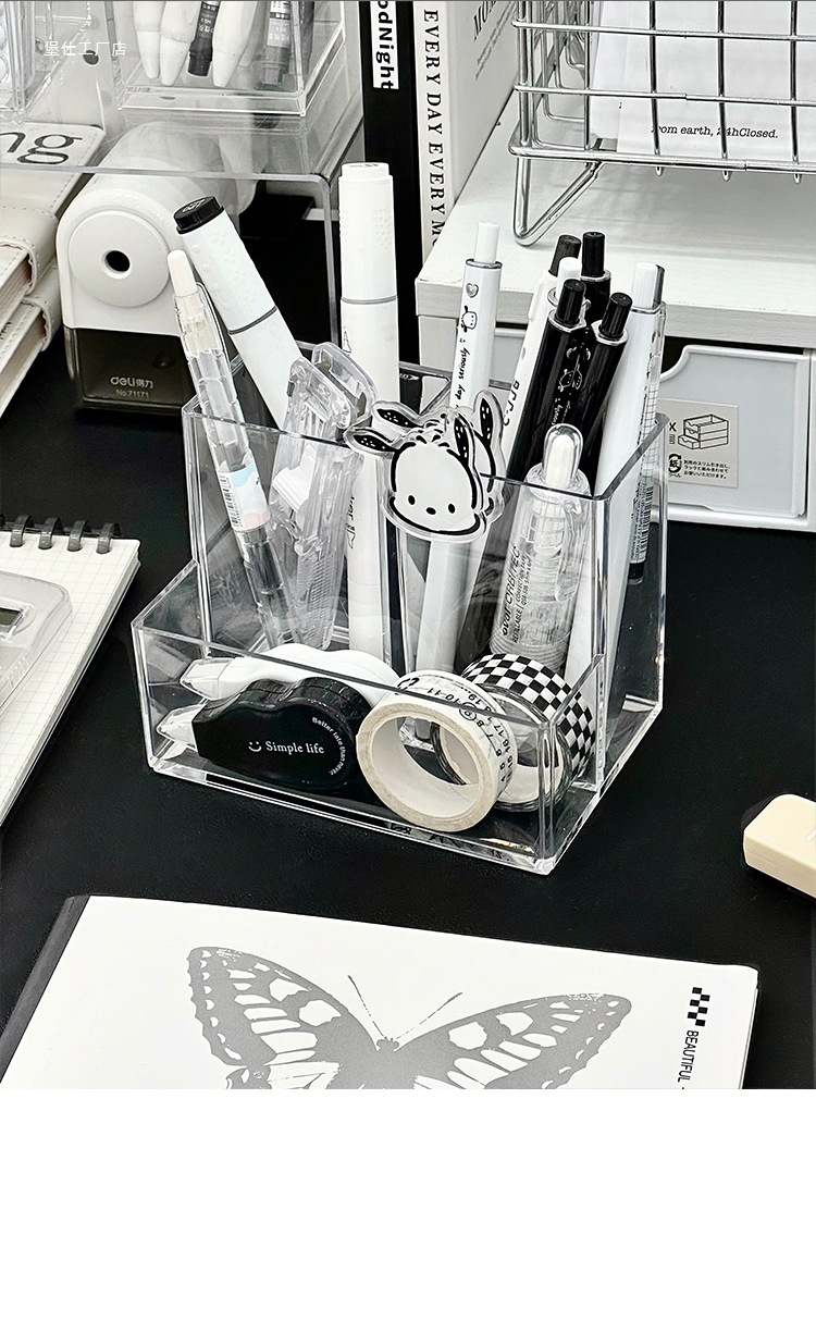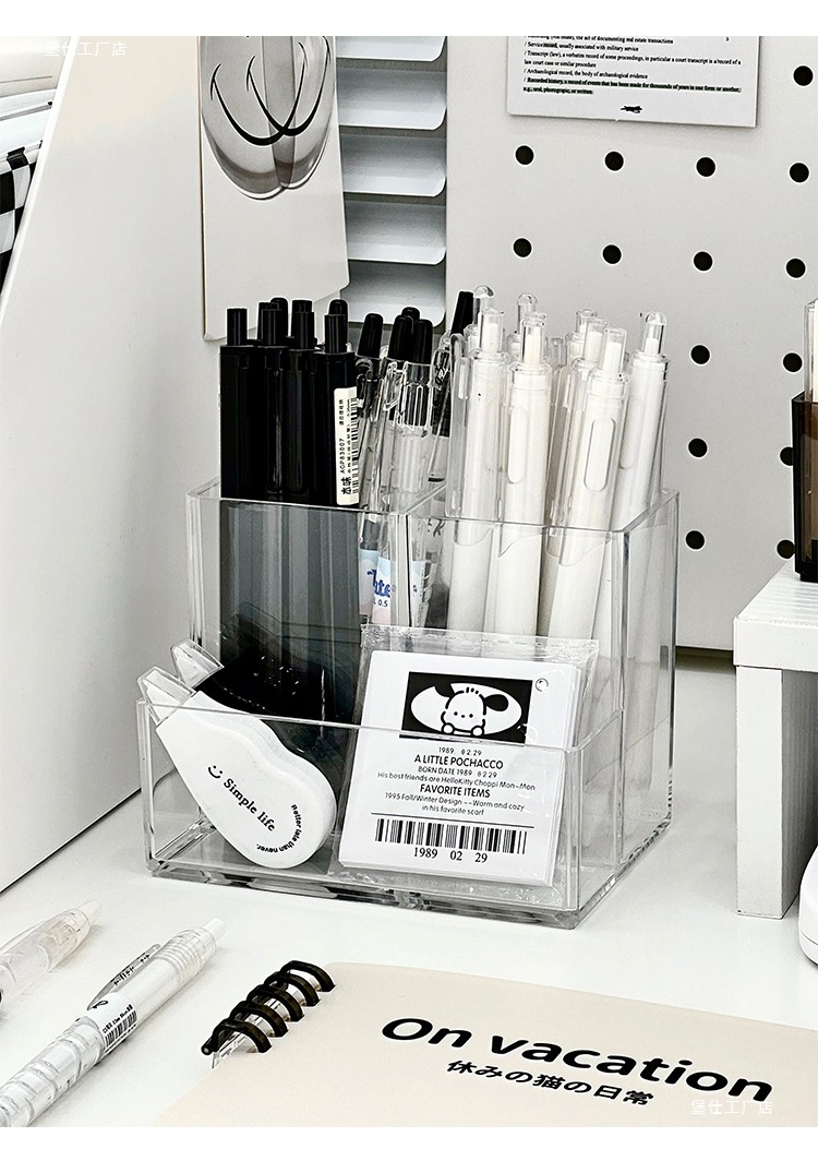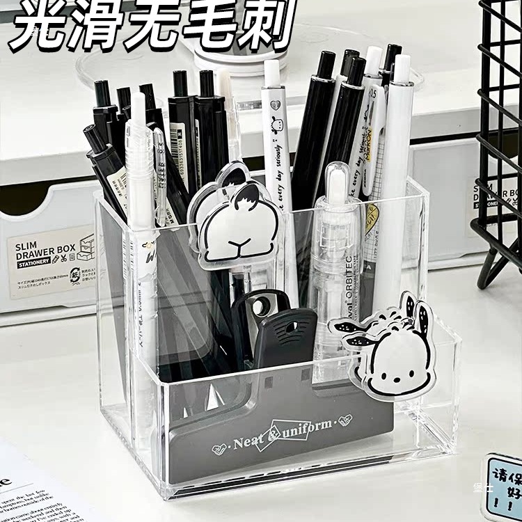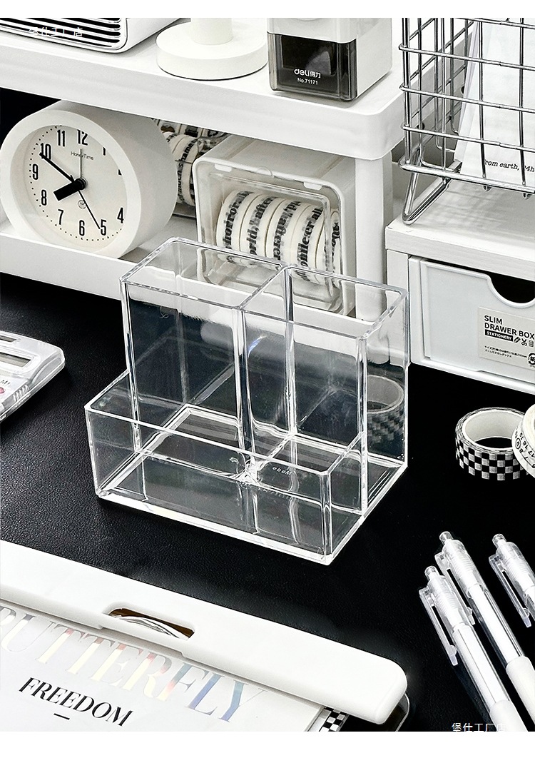 아크릴 펜 케이스 학생 데스크탑 스토리지 박스 사무실 빛 럭셔리 연필 케이스 데스크 투명 문구 펜 배럴