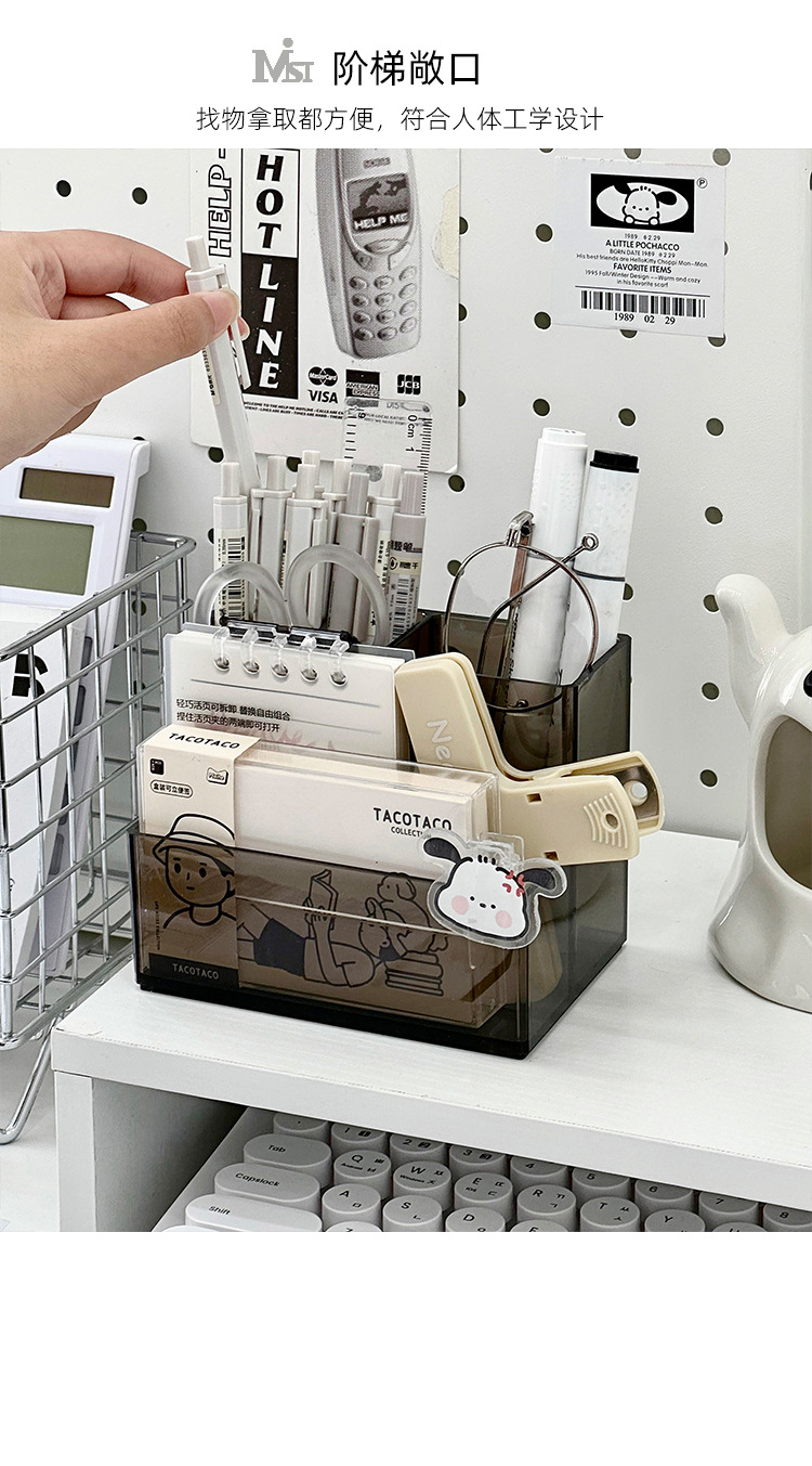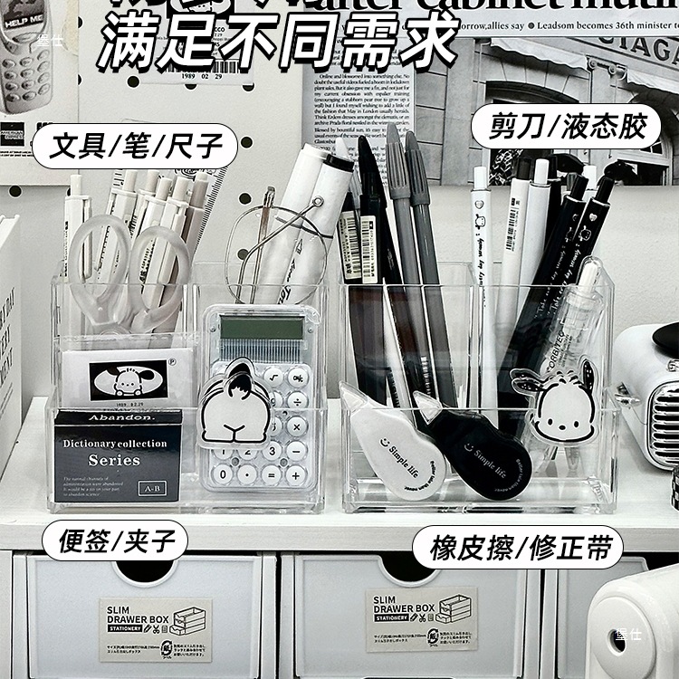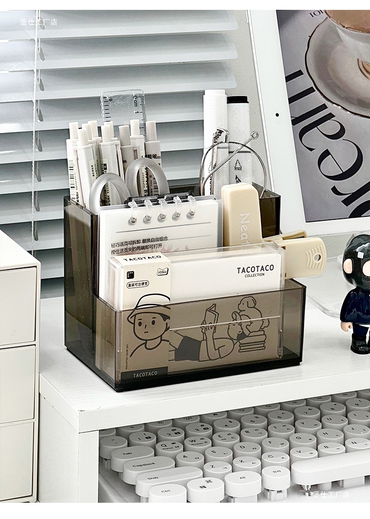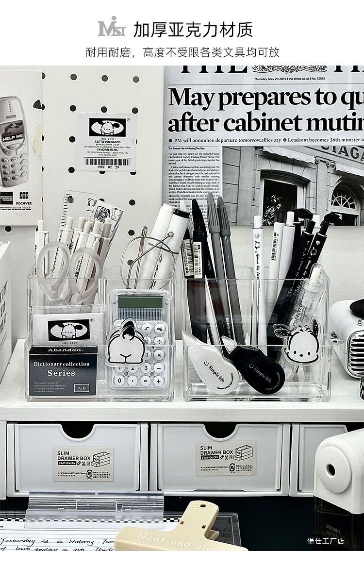 아크릴 펜 케이스 학생 데스크탑 스토리지 박스 사무실 빛 럭셔리 연필 케이스 데스크 투명 문구 펜 배럴