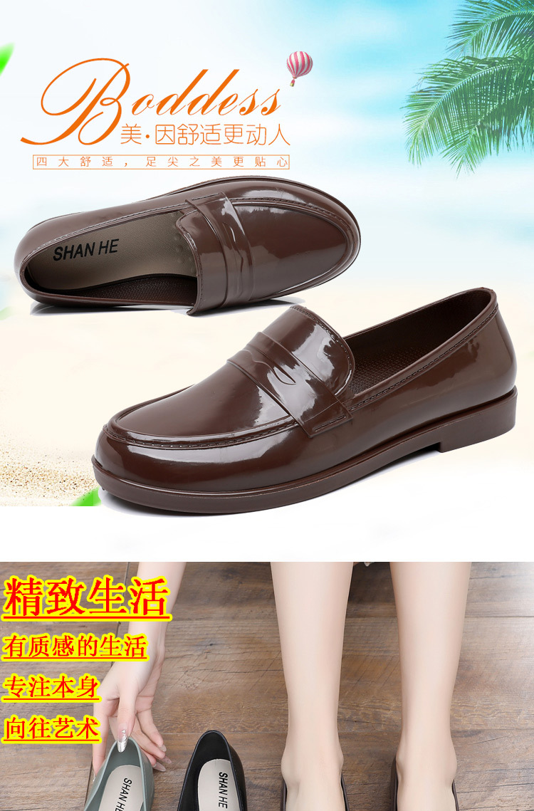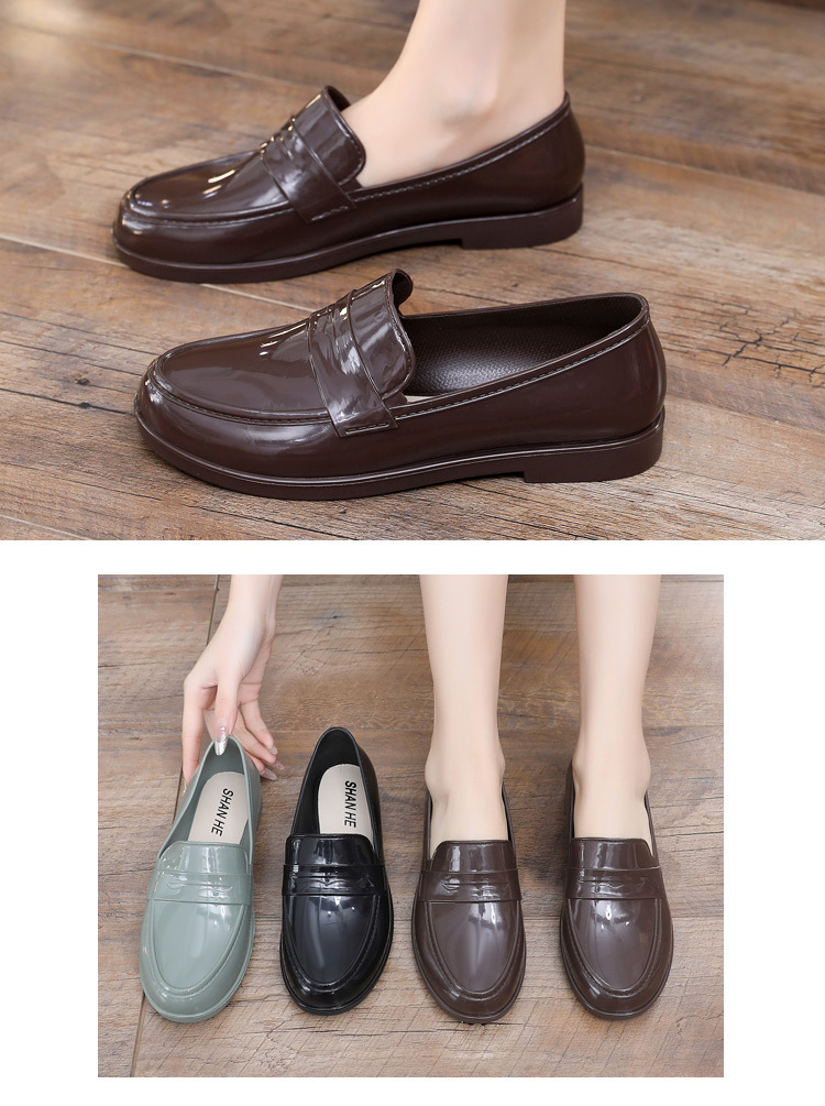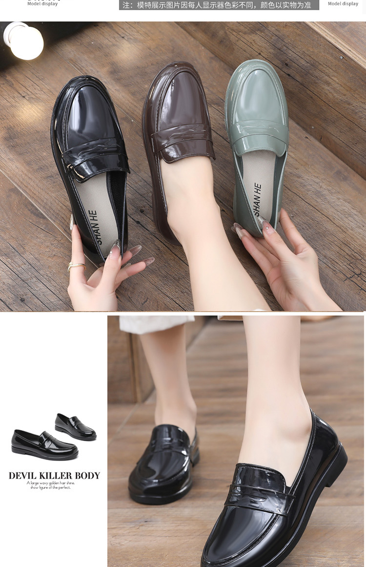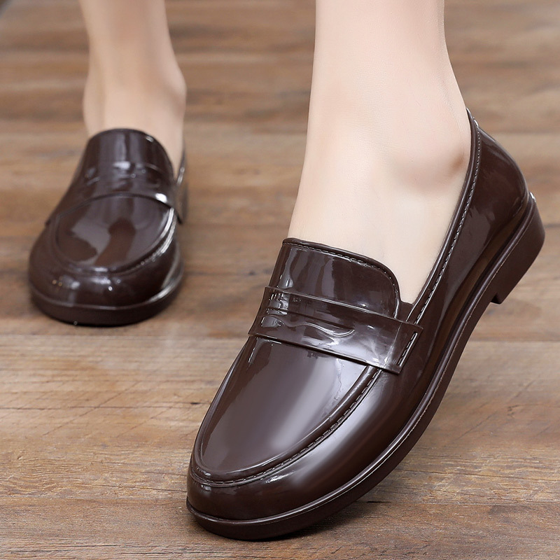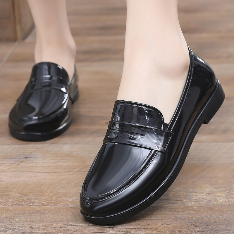 영국 스타일 싱글 레이어 신발 여성용 로퍼 두꺼운 새 도착 얕은 입 올매치 두꺼운 힐 주방 작업 신발 방수 장화