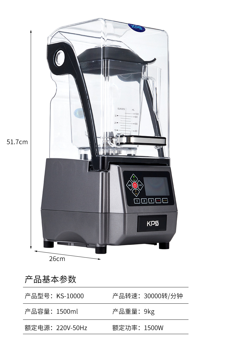 Qihe KS-10000 스무디 머신, 주스, 빙수, 밀크티 가게용, 고출력 얼음 분쇄기