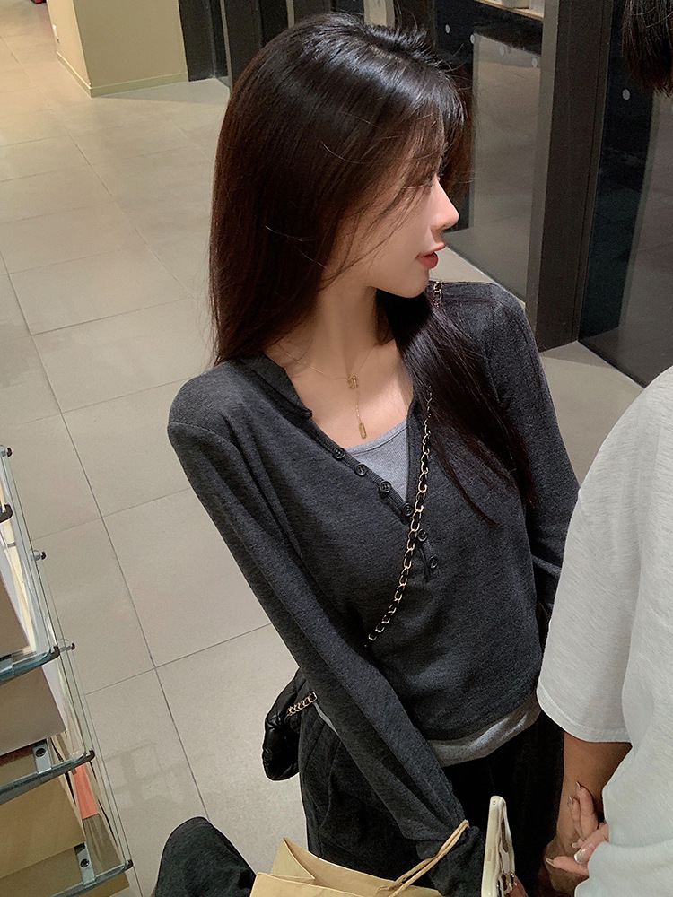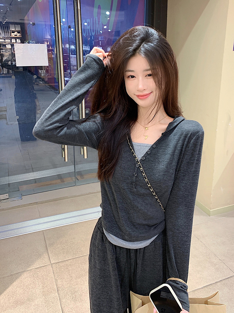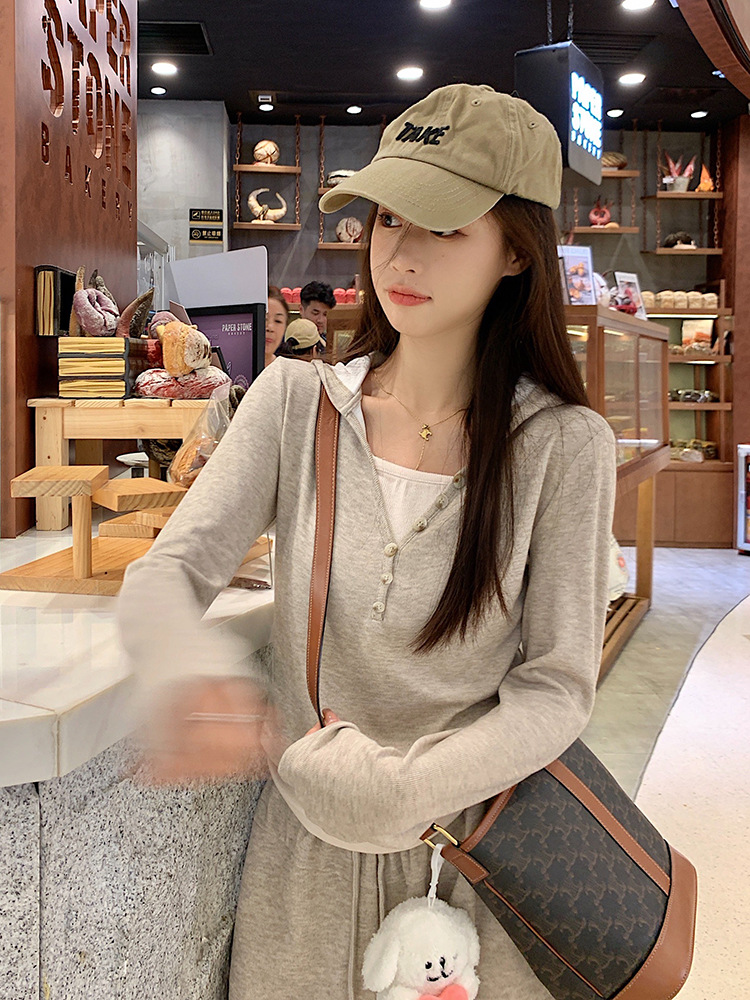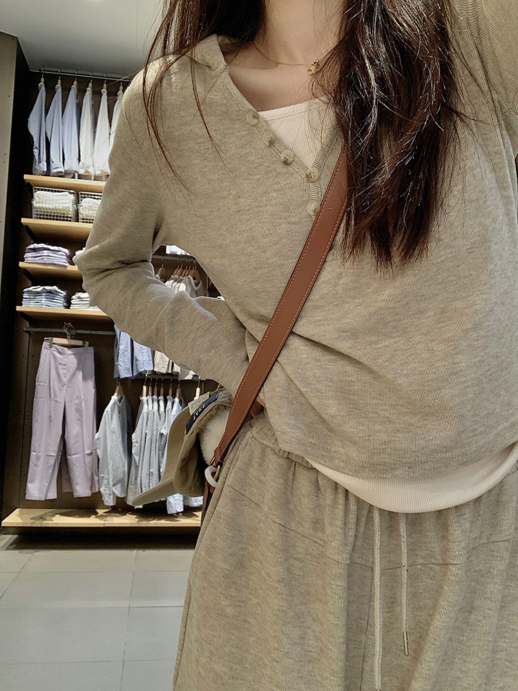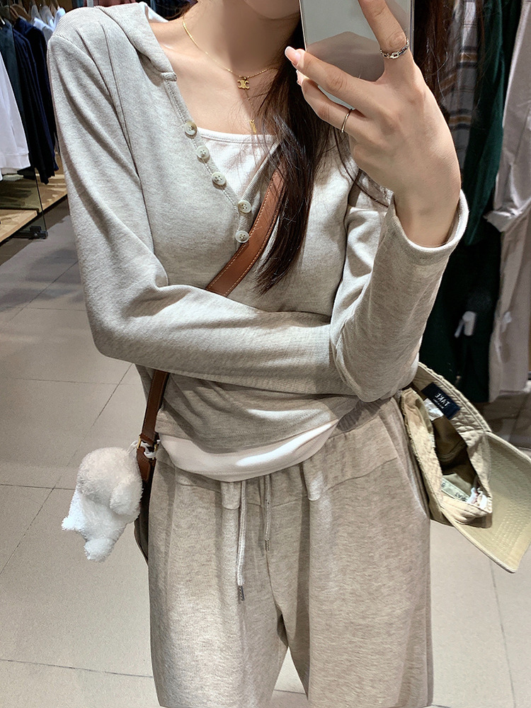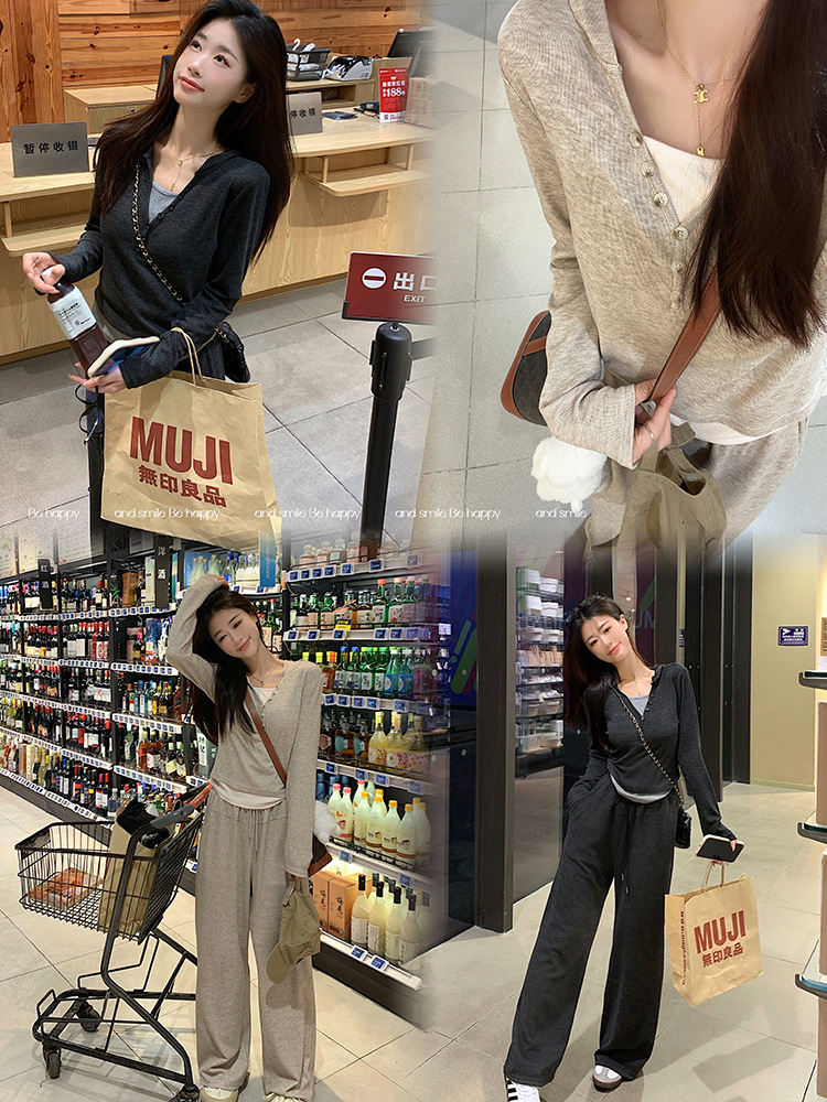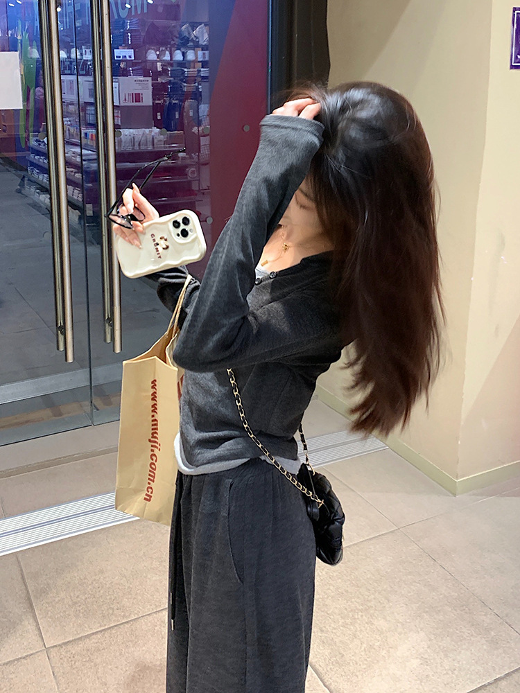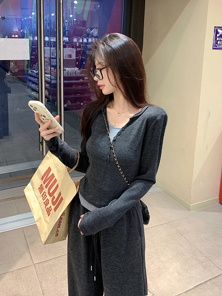 찹쌀 세트 투피스 캐주얼 스포츠 세트 가짜 투피스 긴팔 탑 여성용 가을 높은 허리 바지 와이드 레그 바지