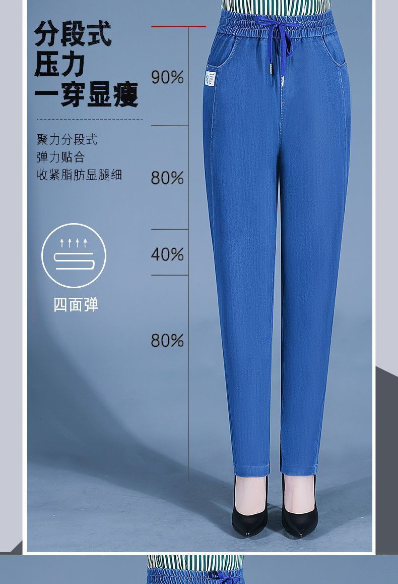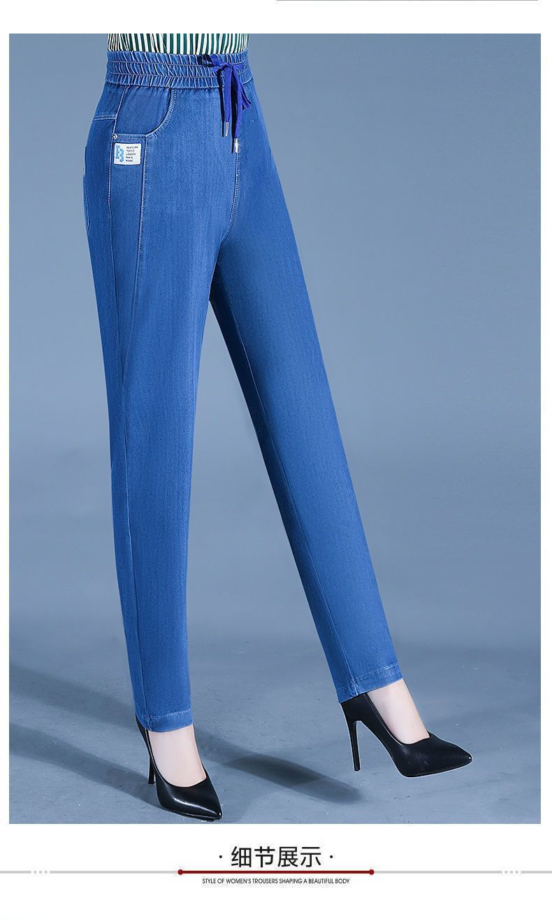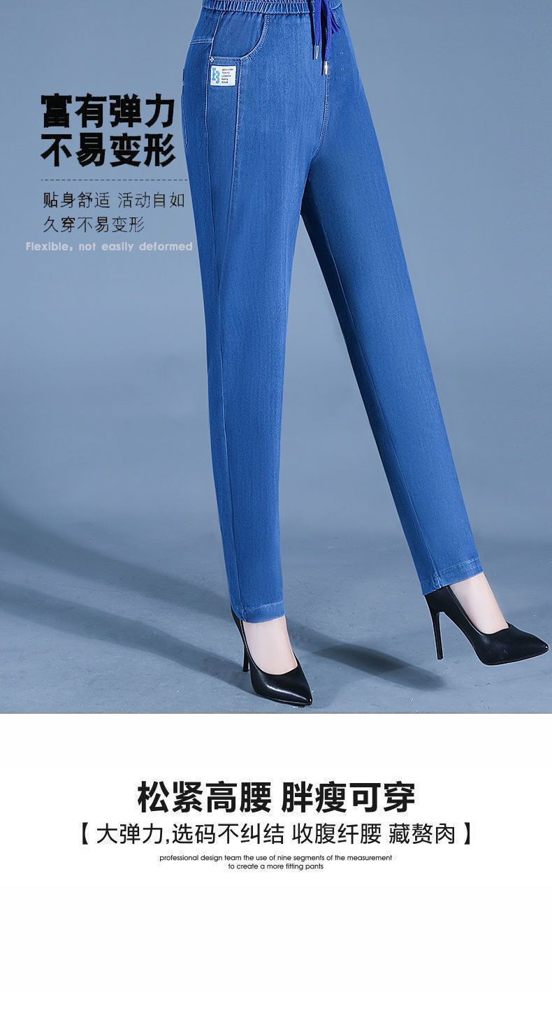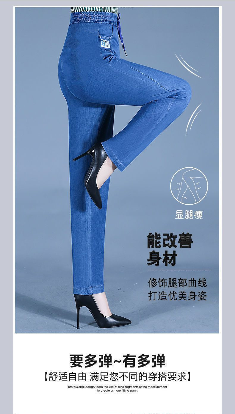 여성용 아이스 실크 청바지, 하이웨이스트, 신축성, 여름용, 엄마용, 신축성 있는 허리, 슬림핏, 중년 및 노년층 캐주얼 텐셀 롱 팬츠