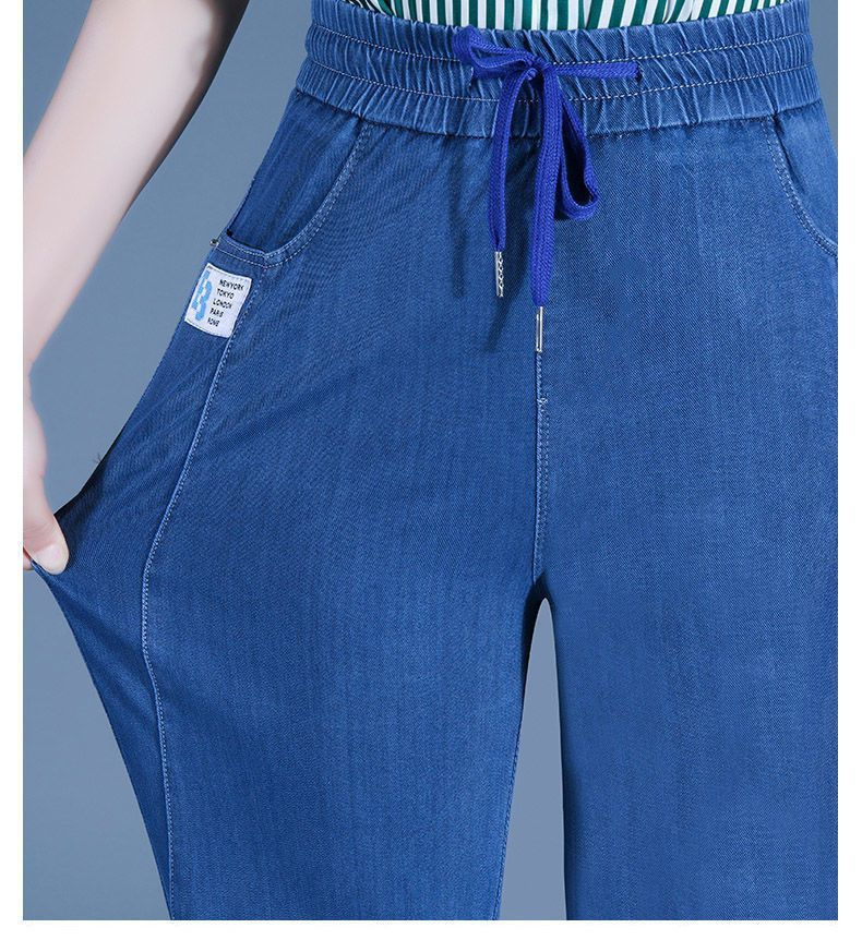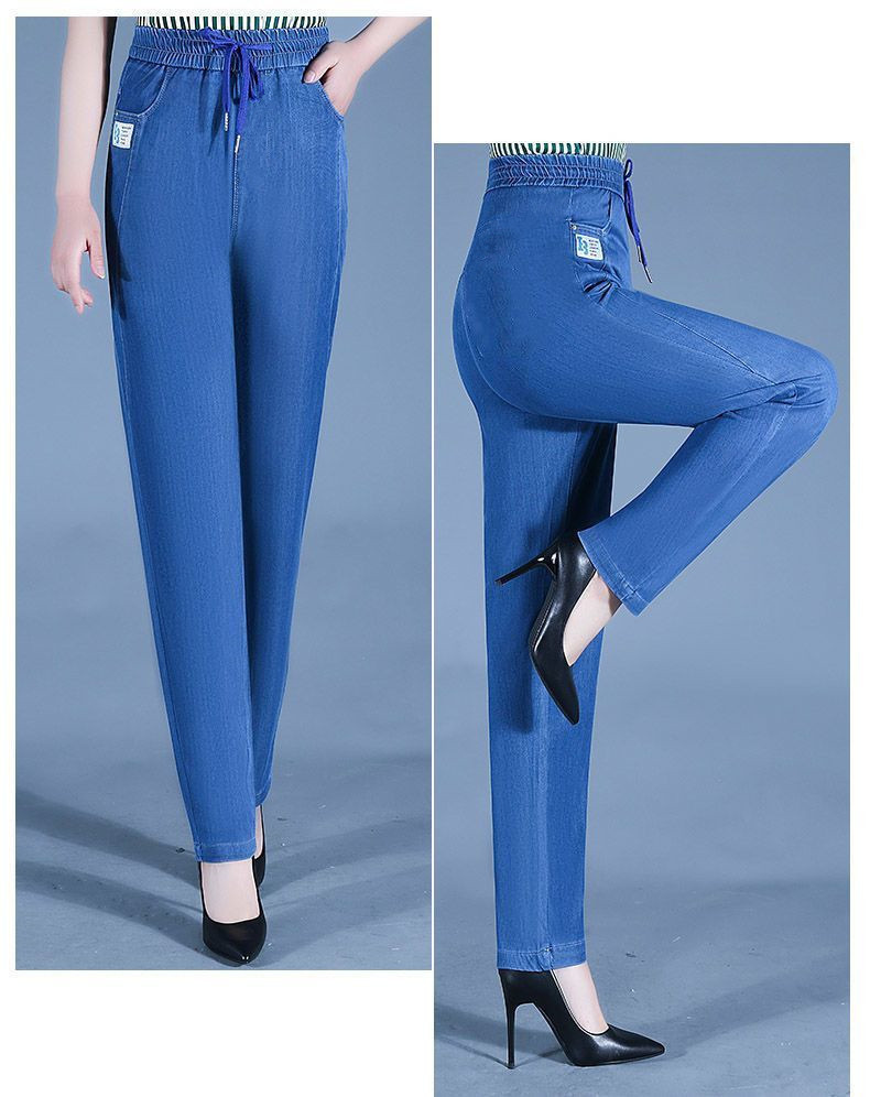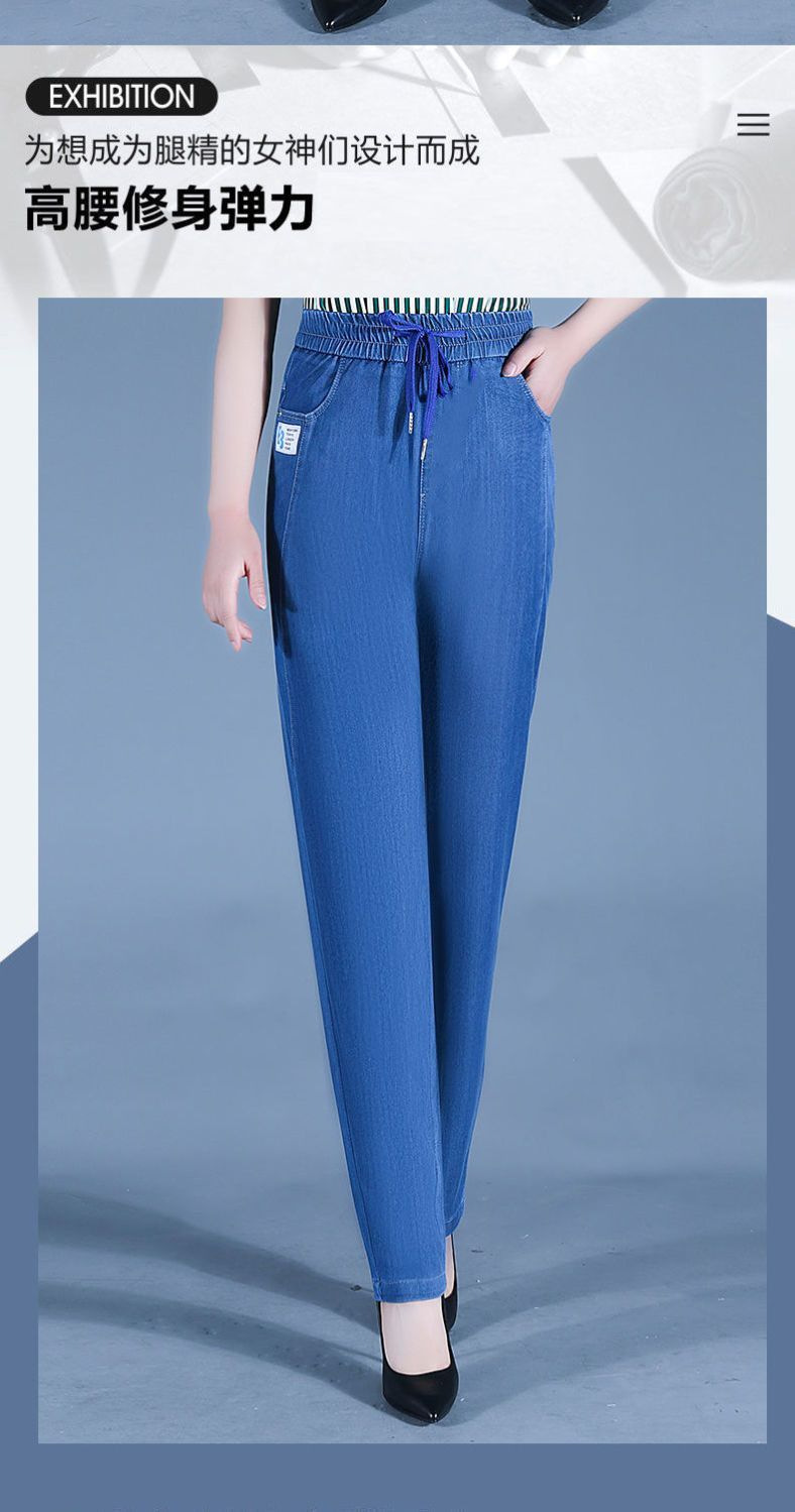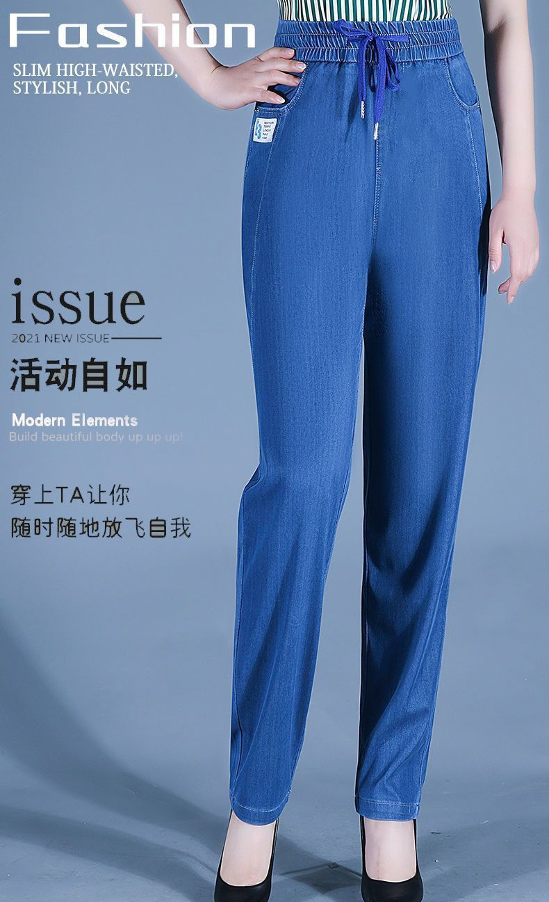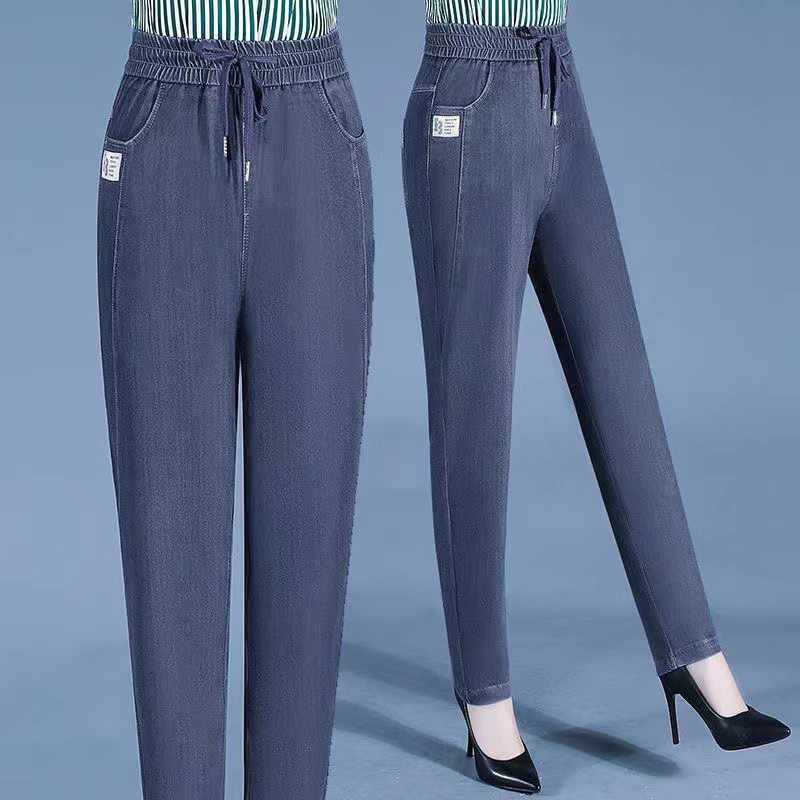 여성용 아이스 실크 청바지, 하이웨이스트, 신축성, 여름용, 엄마용, 신축성 있는 허리, 슬림핏, 중년 및 노년층 캐주얼 텐셀 롱 팬츠