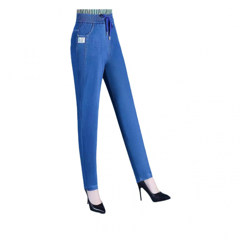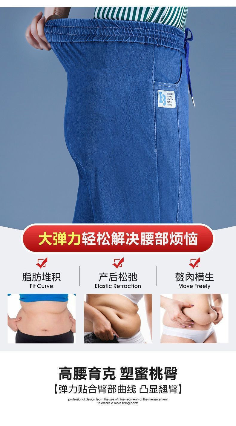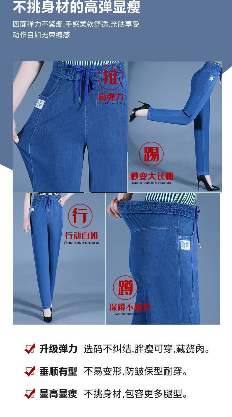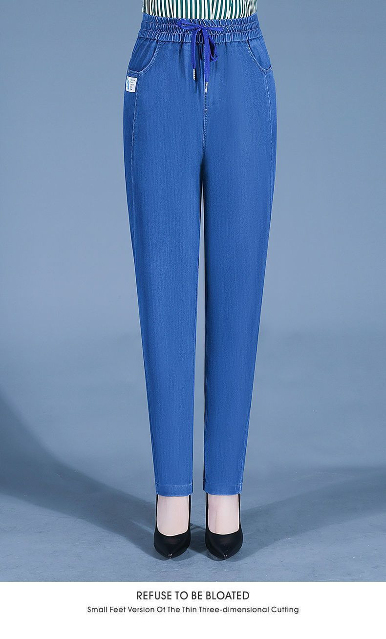 여성용 아이스 실크 청바지, 하이웨이스트, 신축성, 여름용, 엄마용, 신축성 있는 허리, 슬림핏, 중년 및 노년층 캐주얼 텐셀 롱 팬츠