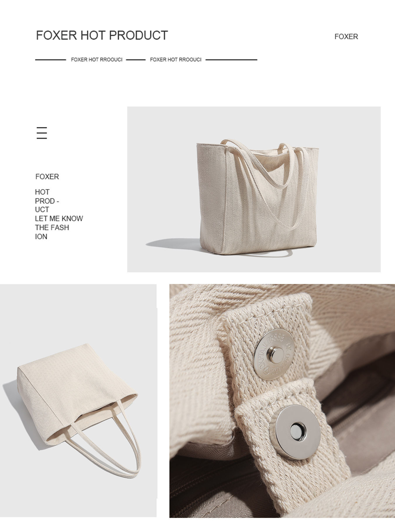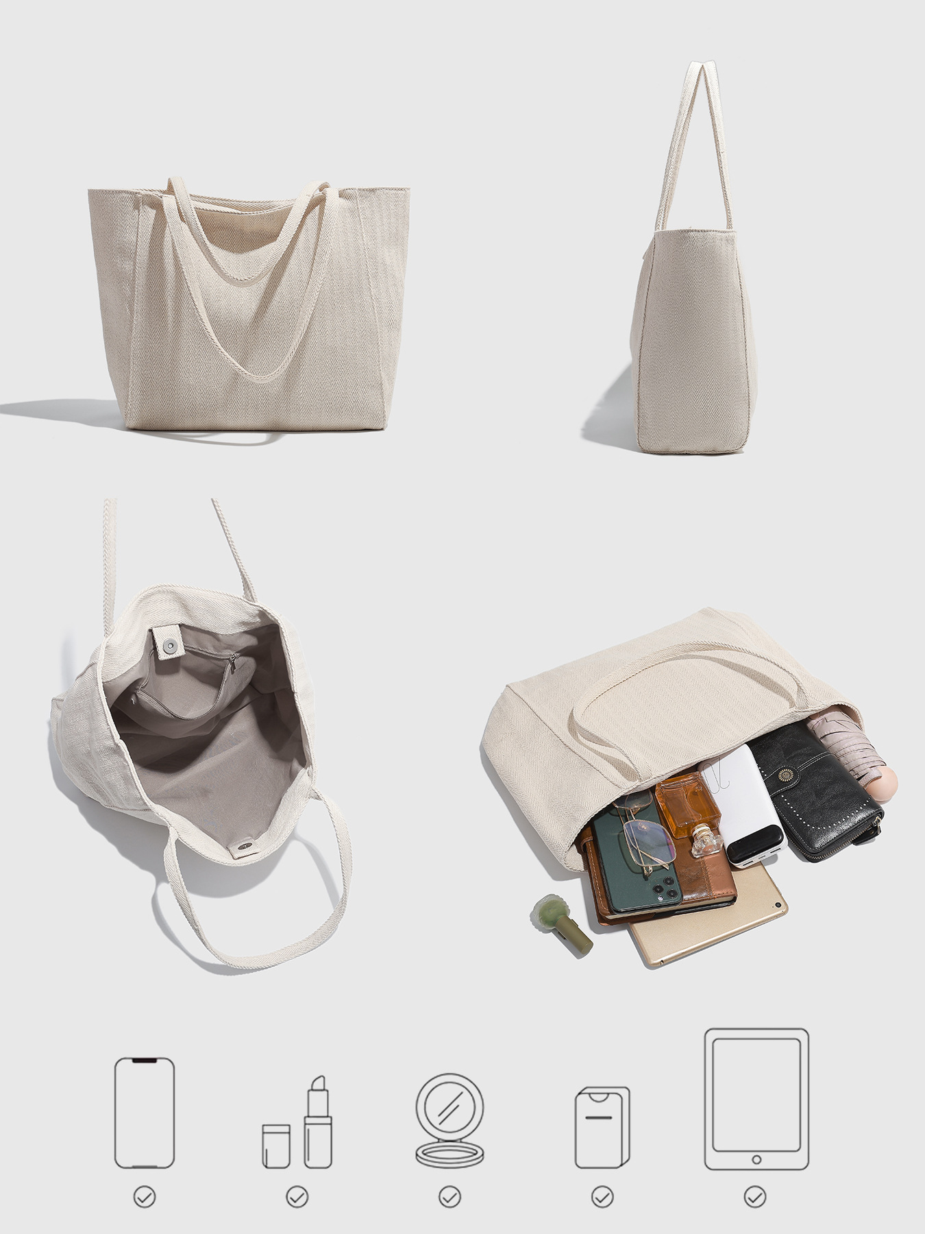 2026년 여름 신상 헤링본 패턴 대용량 토트백 한국 스타일 트윌 캔버스백 통근용 숄더백 여성용 핸드백