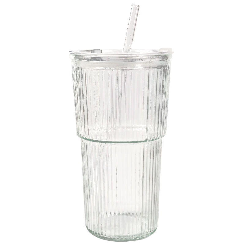 무료 배송 Ins 스타일 유리 아이스 아메리칸 스타일 대형 수직 패턴 흡입 튜브 컵 여름 차가운 음료 컵 가구 큰 용량 뚜껑