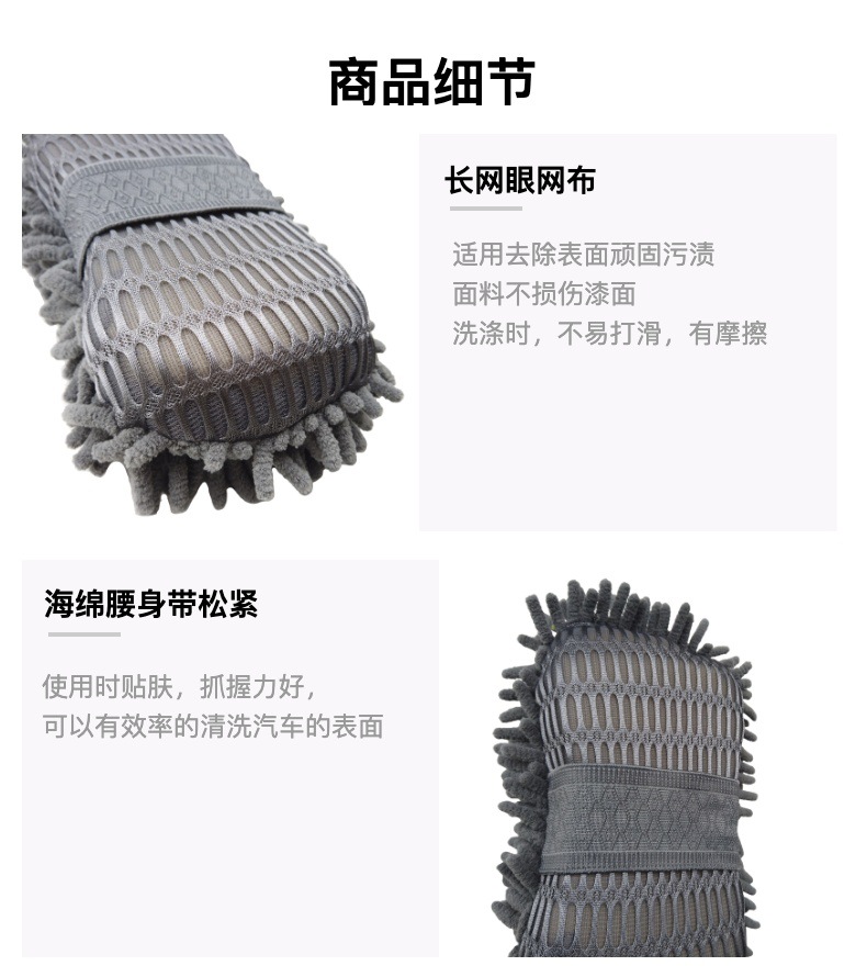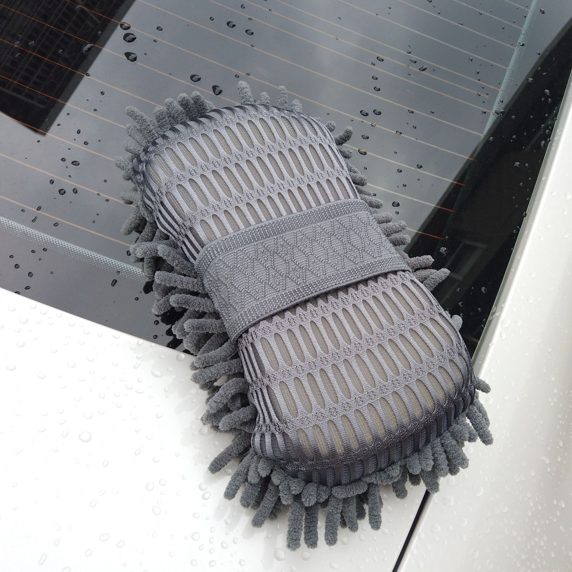 신축성 있는 체닐 샌드위치형 세차용 8자형 청소 스펀지, 자동차 세척 및 미용용 긴 메쉬 스펀지