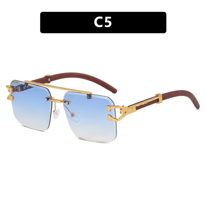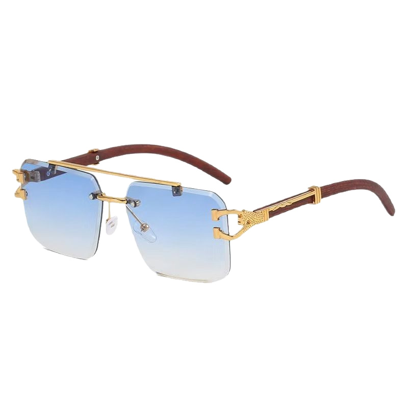 레오파드 패션 프레임리스 컷 선글라스 2024 새로운 패션 인터넷 인기있는 동일 스타일 선글라스 상자 유행