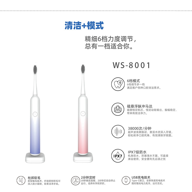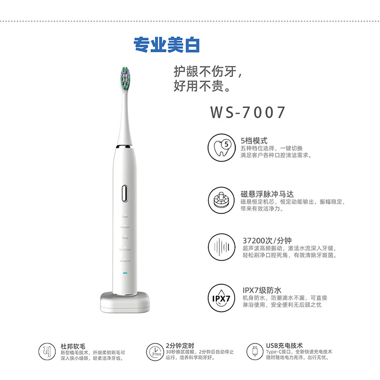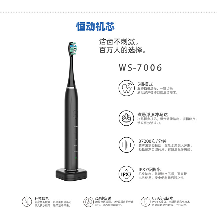 스윕 진동 전동 칫솔 소프트 헤어 공장 맞춤형 도매 공장 성인 자기 부상 전기 무선 충전 커플