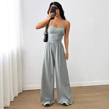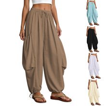 유럽과 미국의 국경 간 여름 새로운 여성 캐주얼 느슨한 패션 민소매 코튼 및 리넨 솔리드 컬러 V-넥 비치 원피스