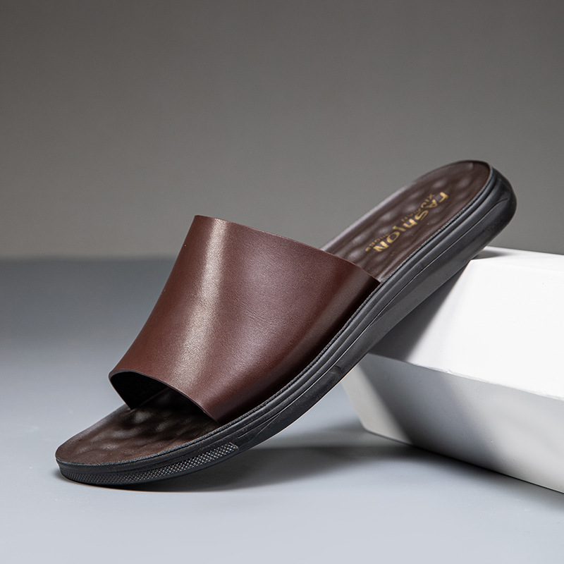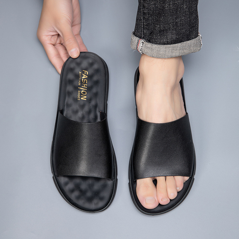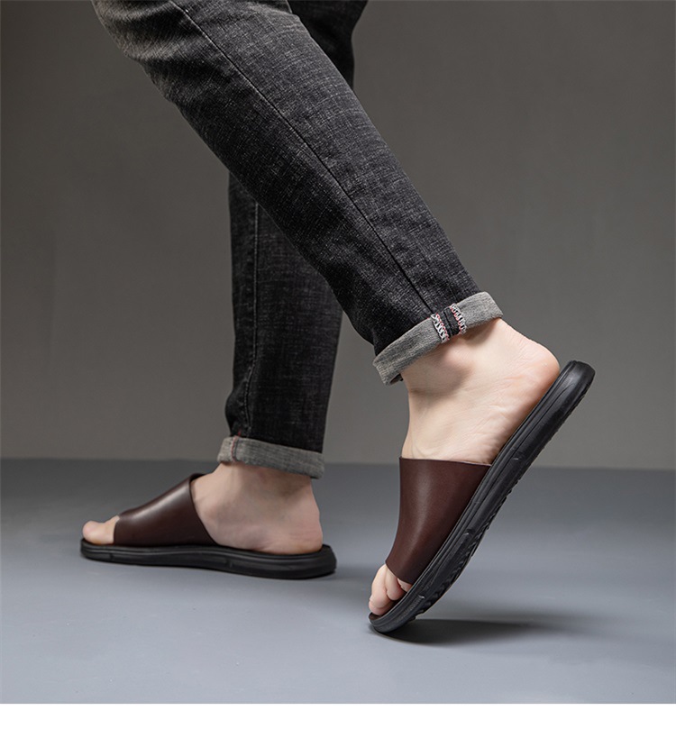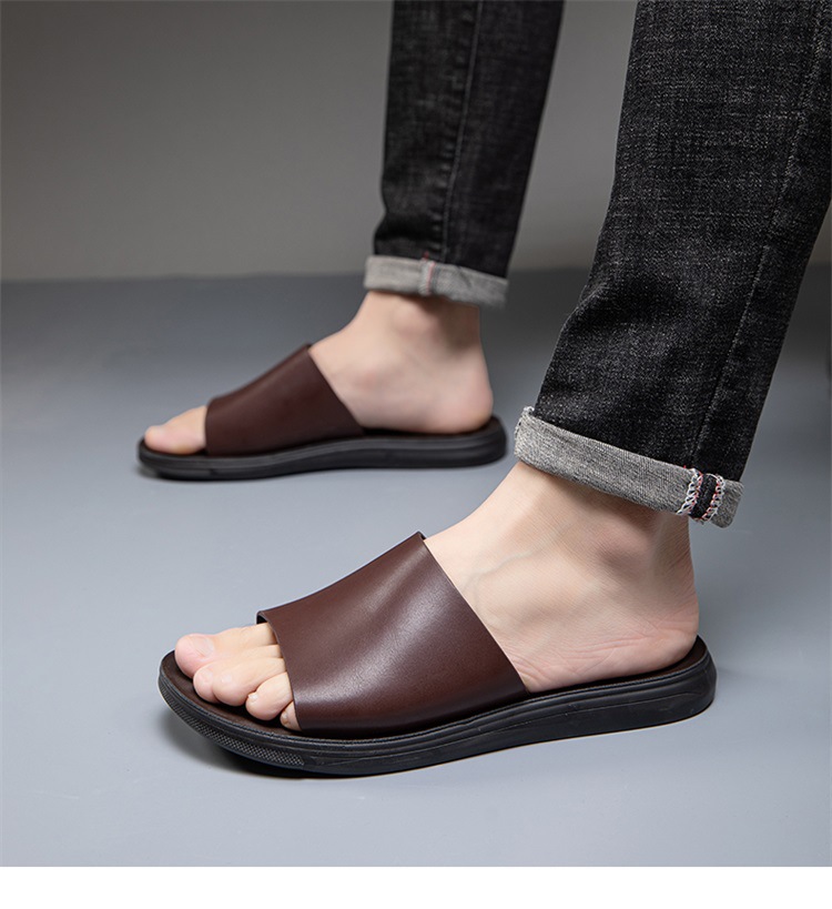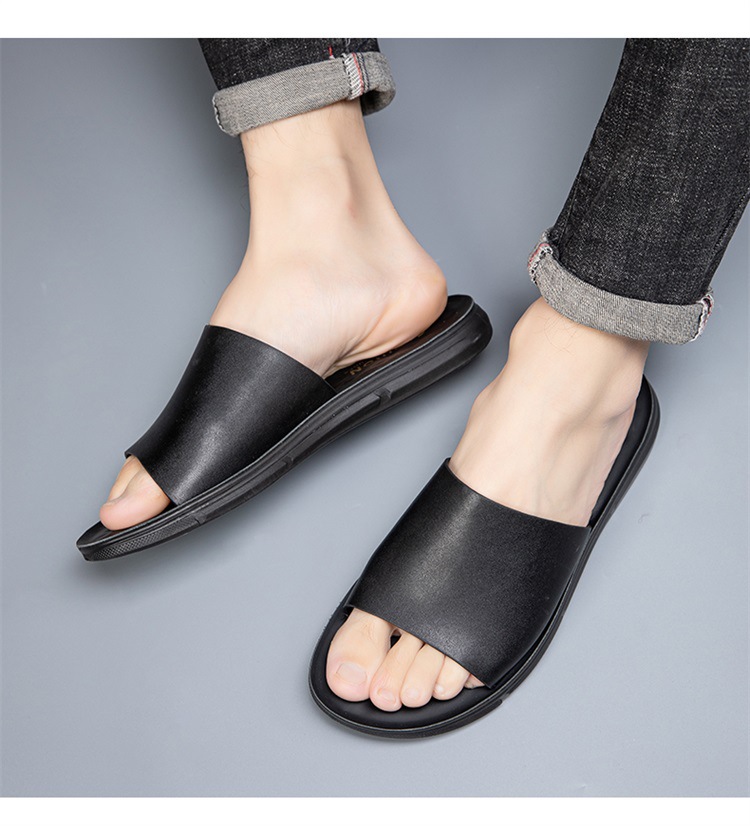 부드러운 가죽 슬리퍼 남성용 신발 2025 년 봄과 여름 새로운 남성용 샌들 샌들과 슬리퍼 소 가죽 이중 목적 캐주얼 비치 슈즈 미끄럼 방지