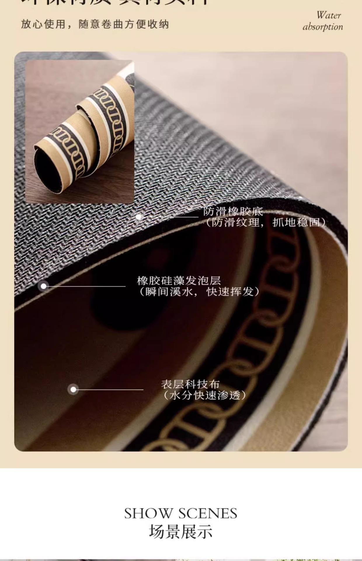 Diatom 진흙 주방 매트 미끄럼 방지 오일이없는 특수 발 매트 흡수 매트 청결없는 카펫