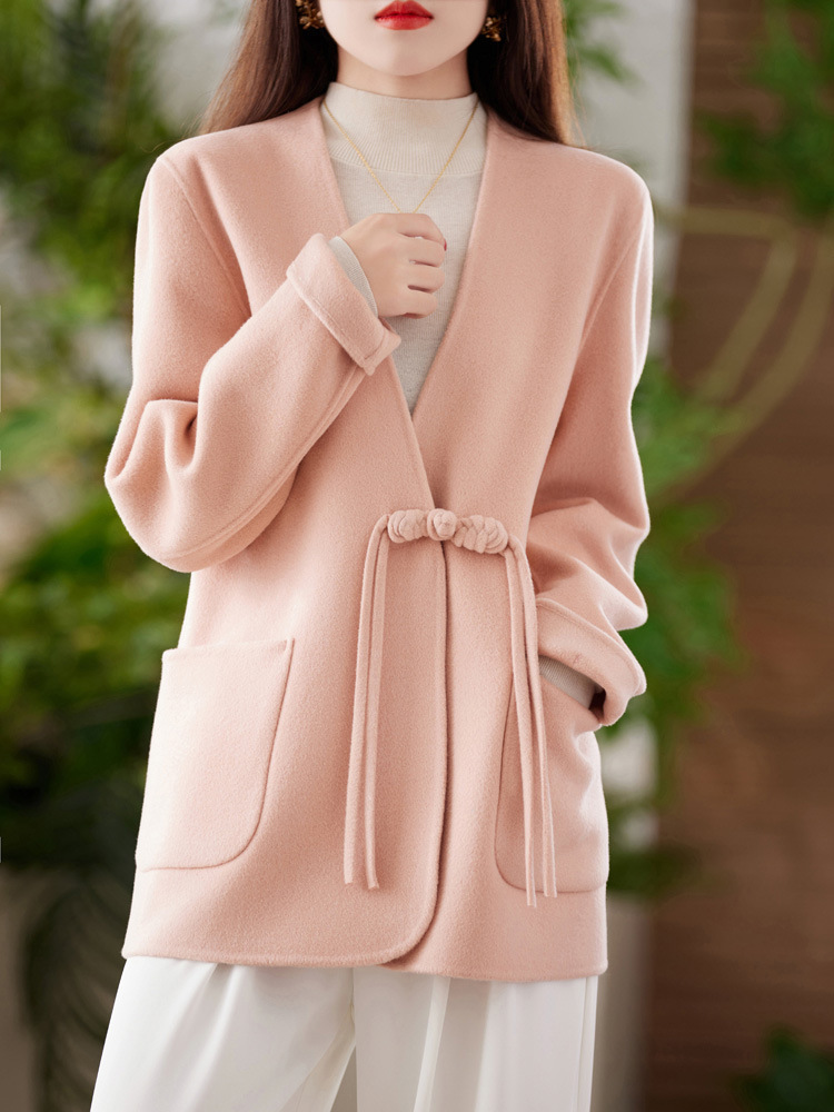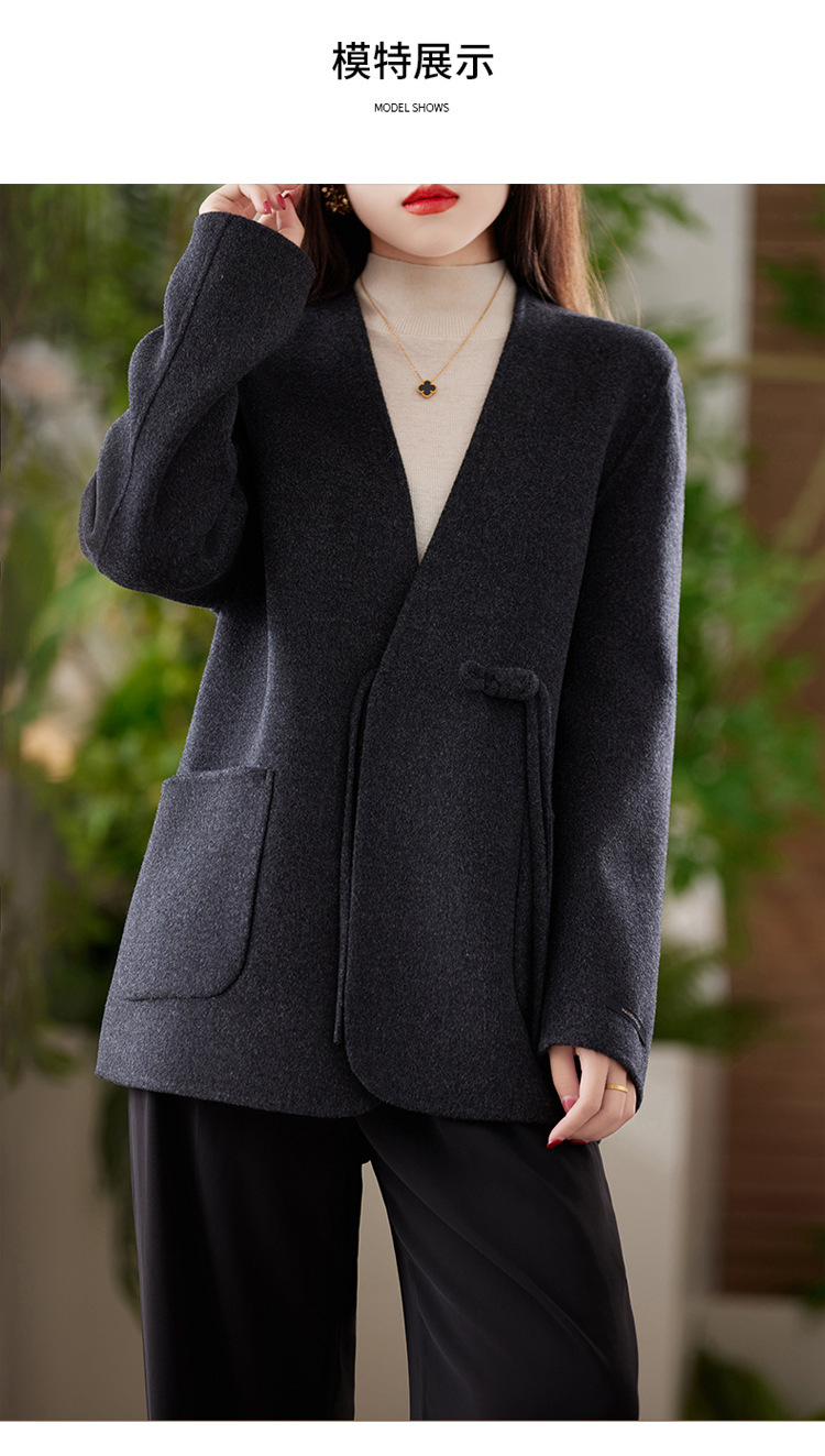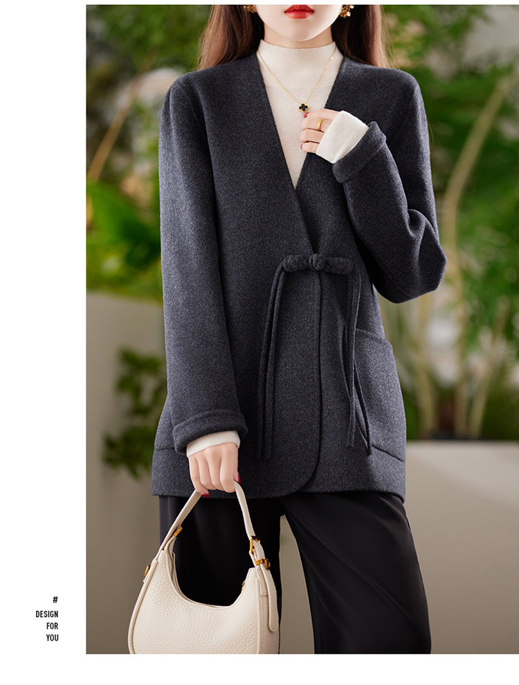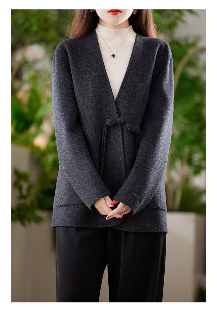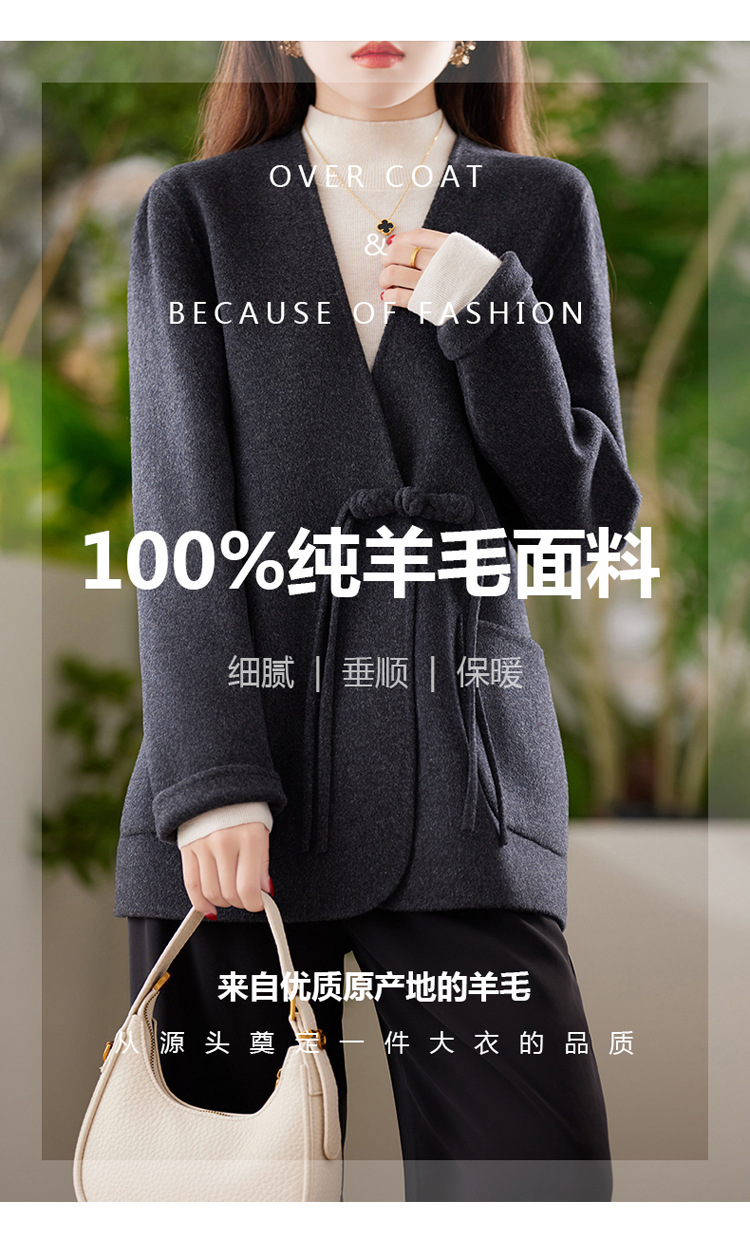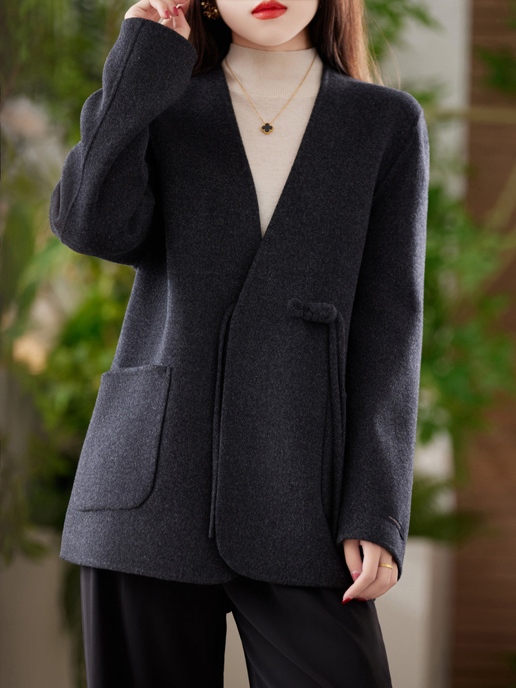 양면 양모 코트 여자 새로운 올 매치 V 넥 중국식 손으로 꿰매는 우아한 울 코트