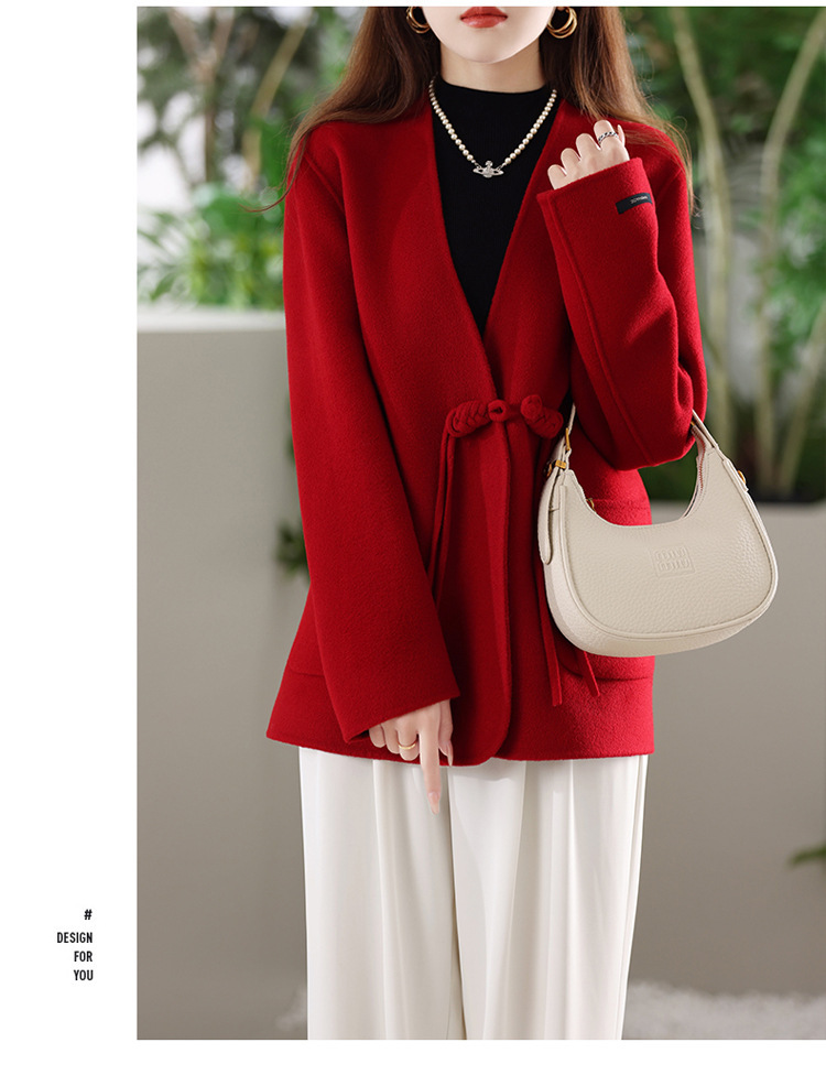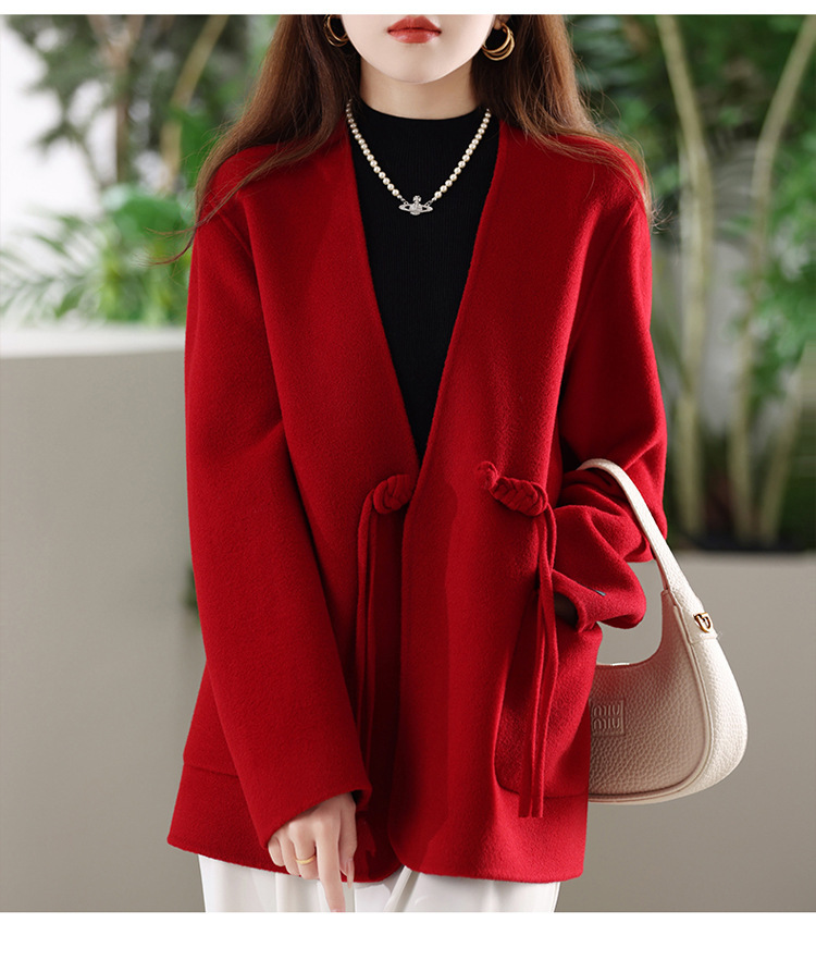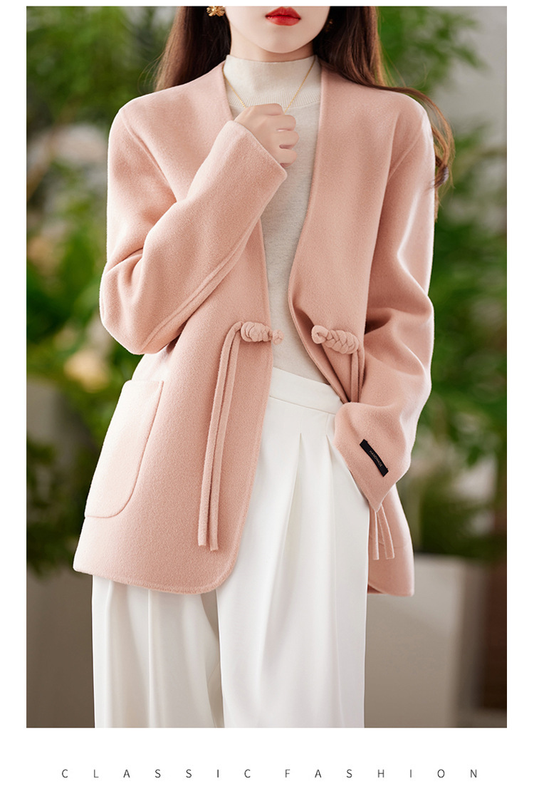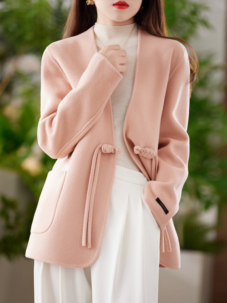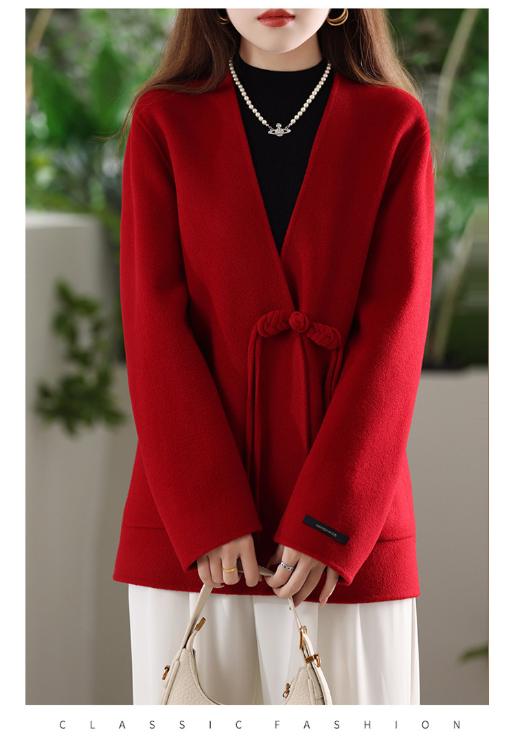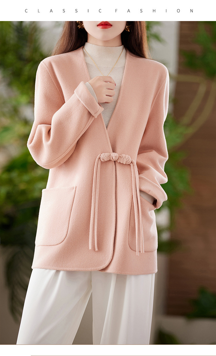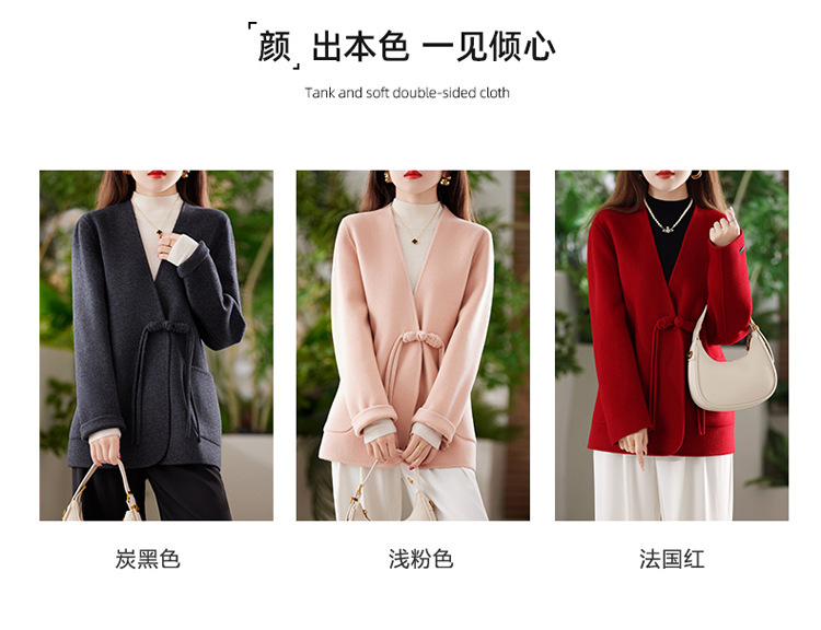 양면 양모 코트 여자 새로운 올 매치 V 넥 중국식 손으로 꿰매는 우아한 울 코트