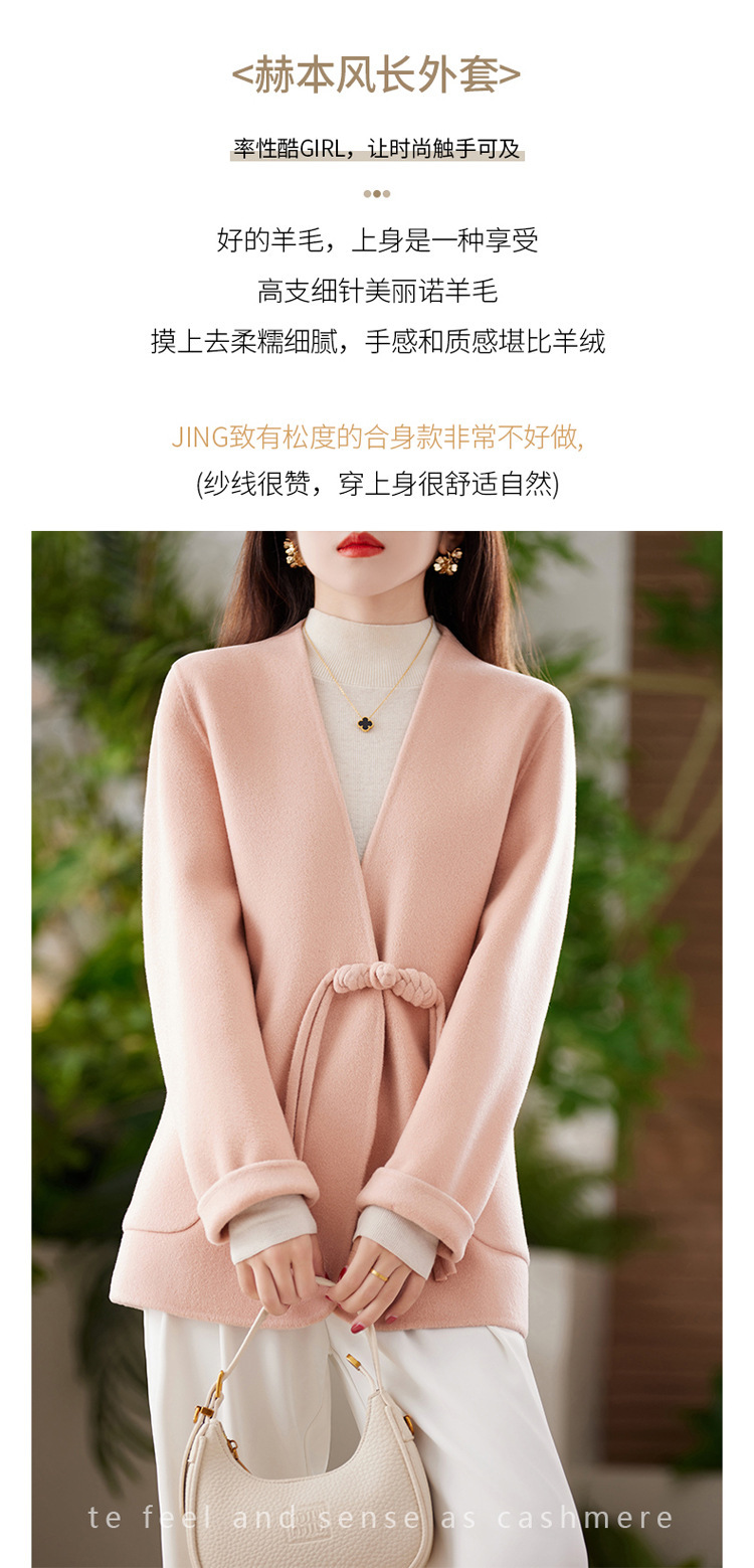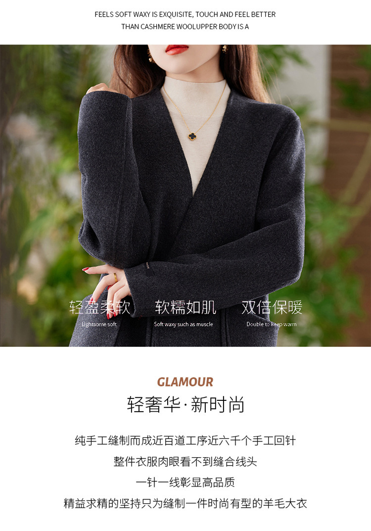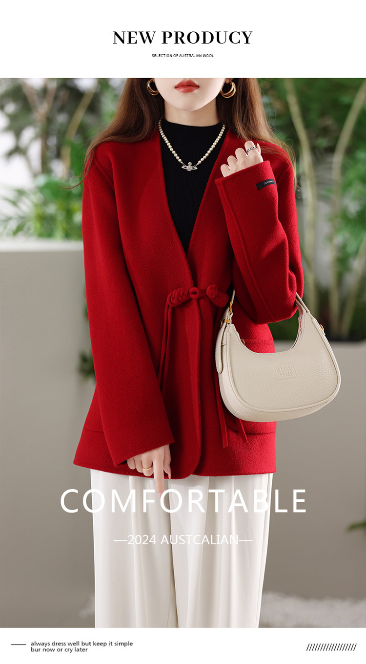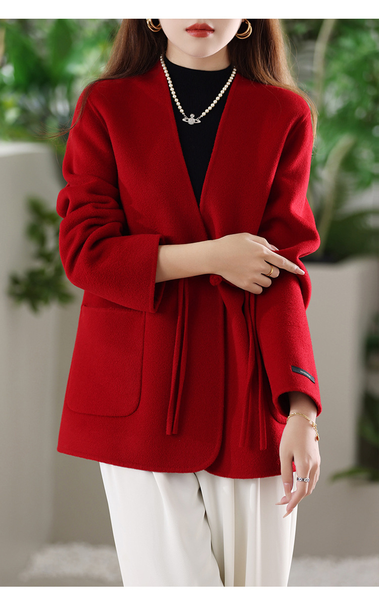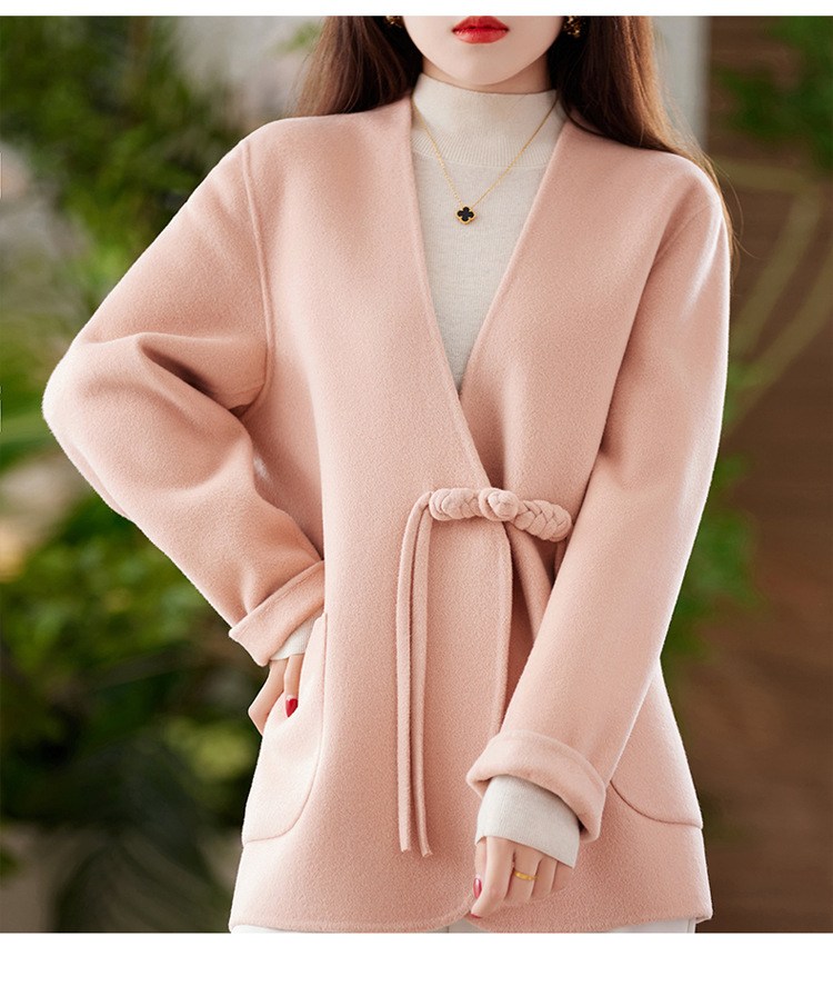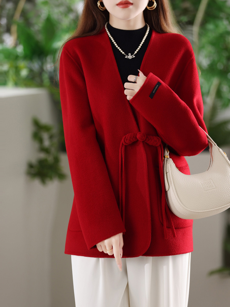 양면 양모 코트 여자 새로운 올 매치 V 넥 중국식 손으로 꿰매는 우아한 울 코트