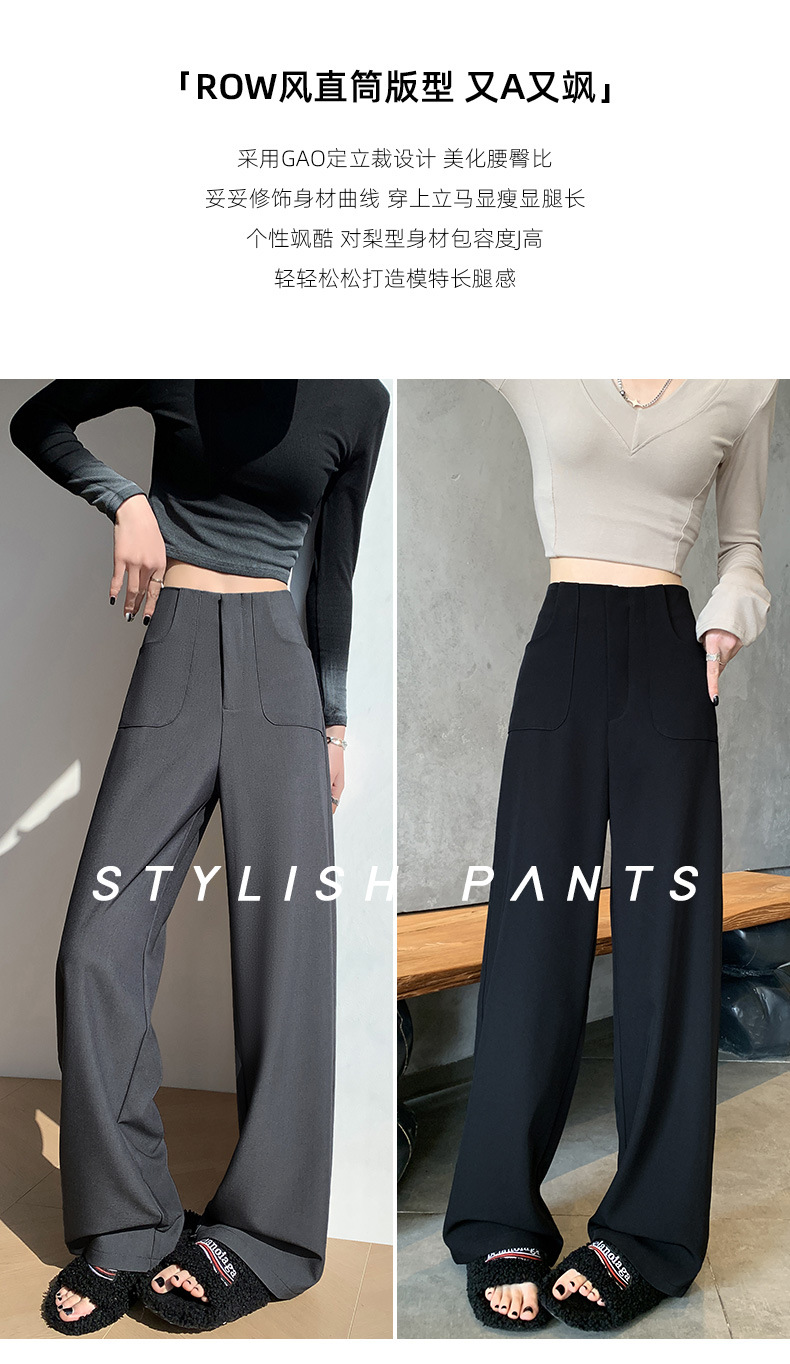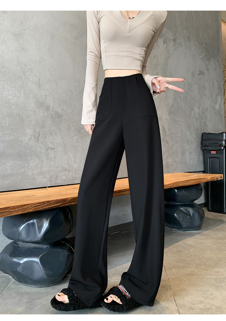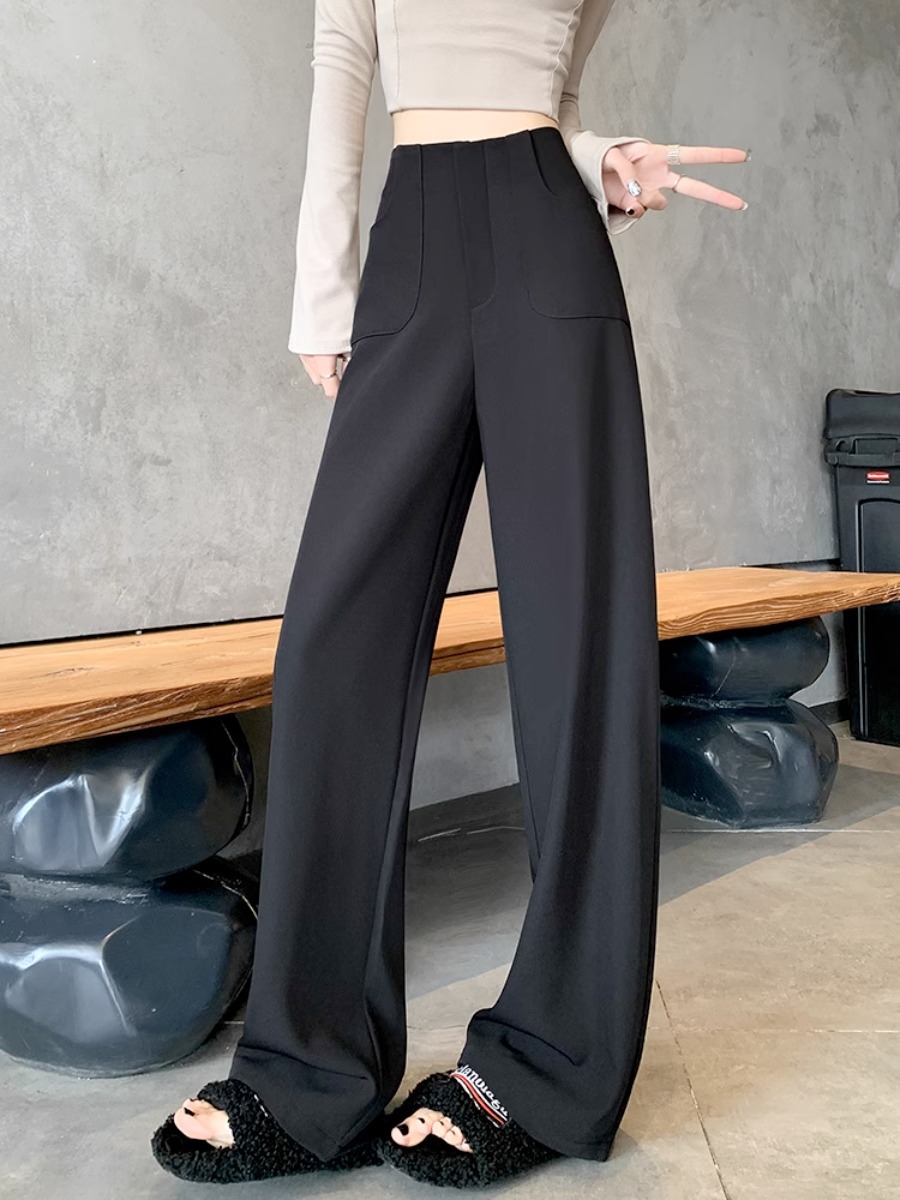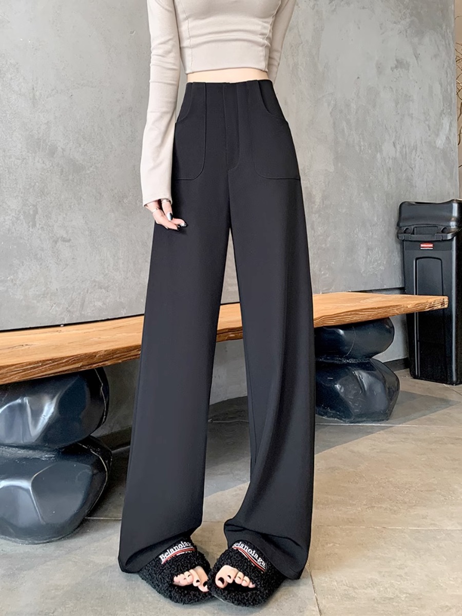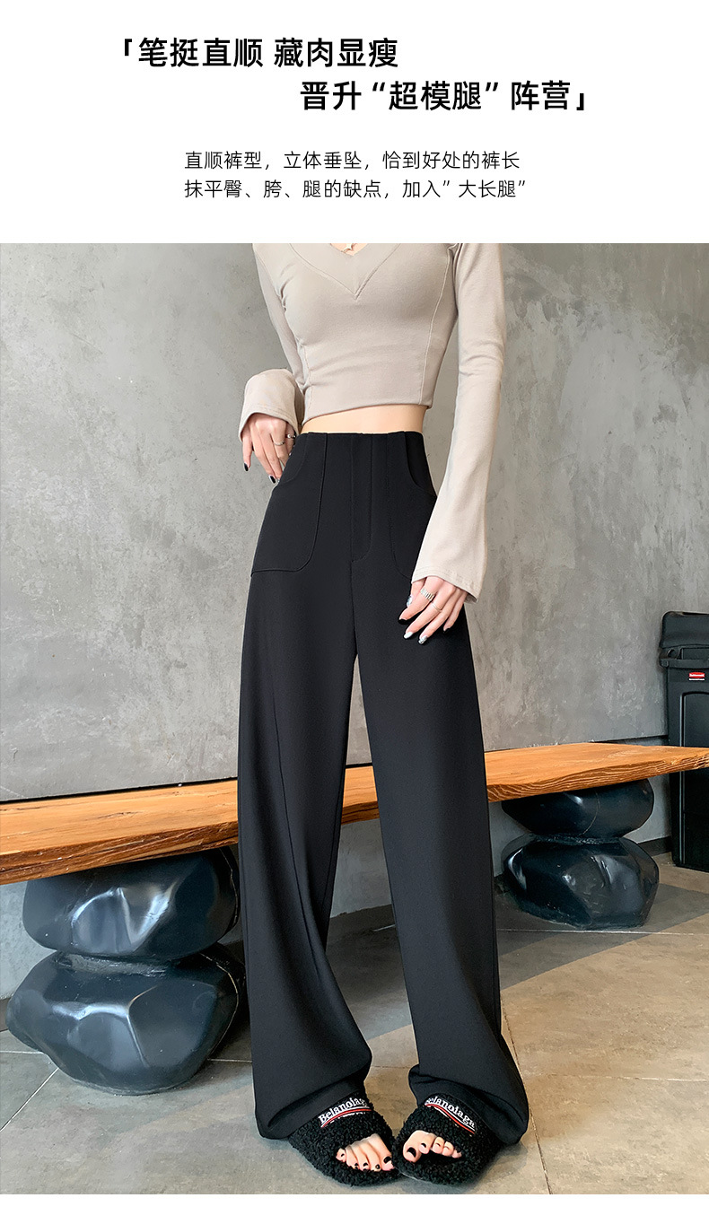 블랙 고급 여성 정장 바지 2026 봄 여름 신상 하이웨이스트 드레이프 캐주얼 롱 와이드 팬츠
