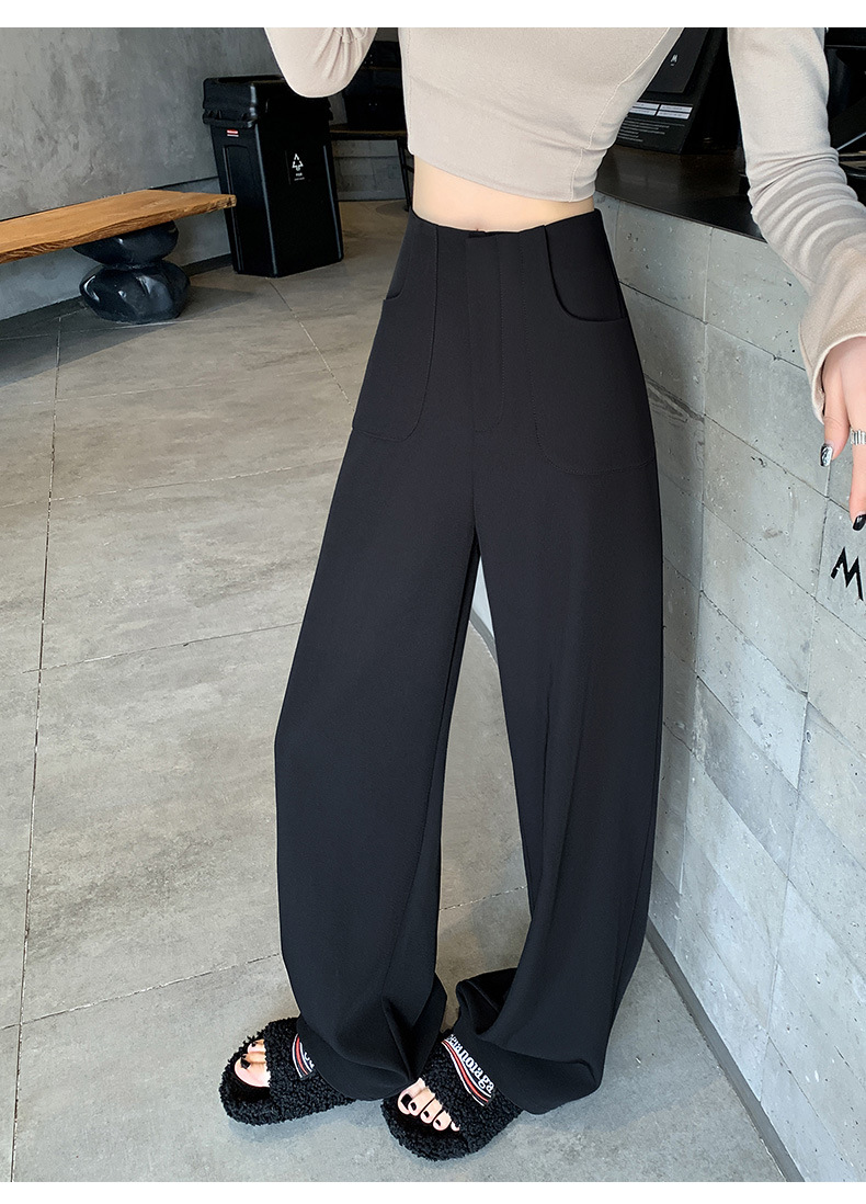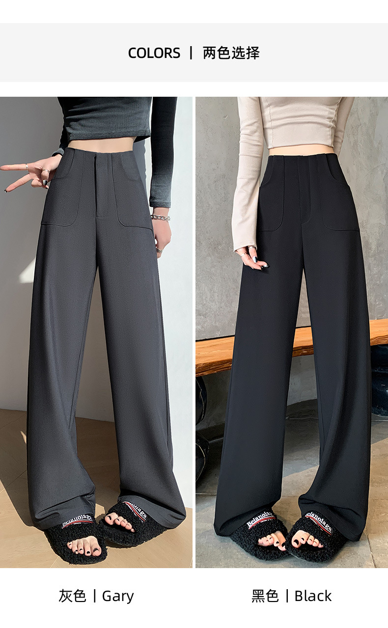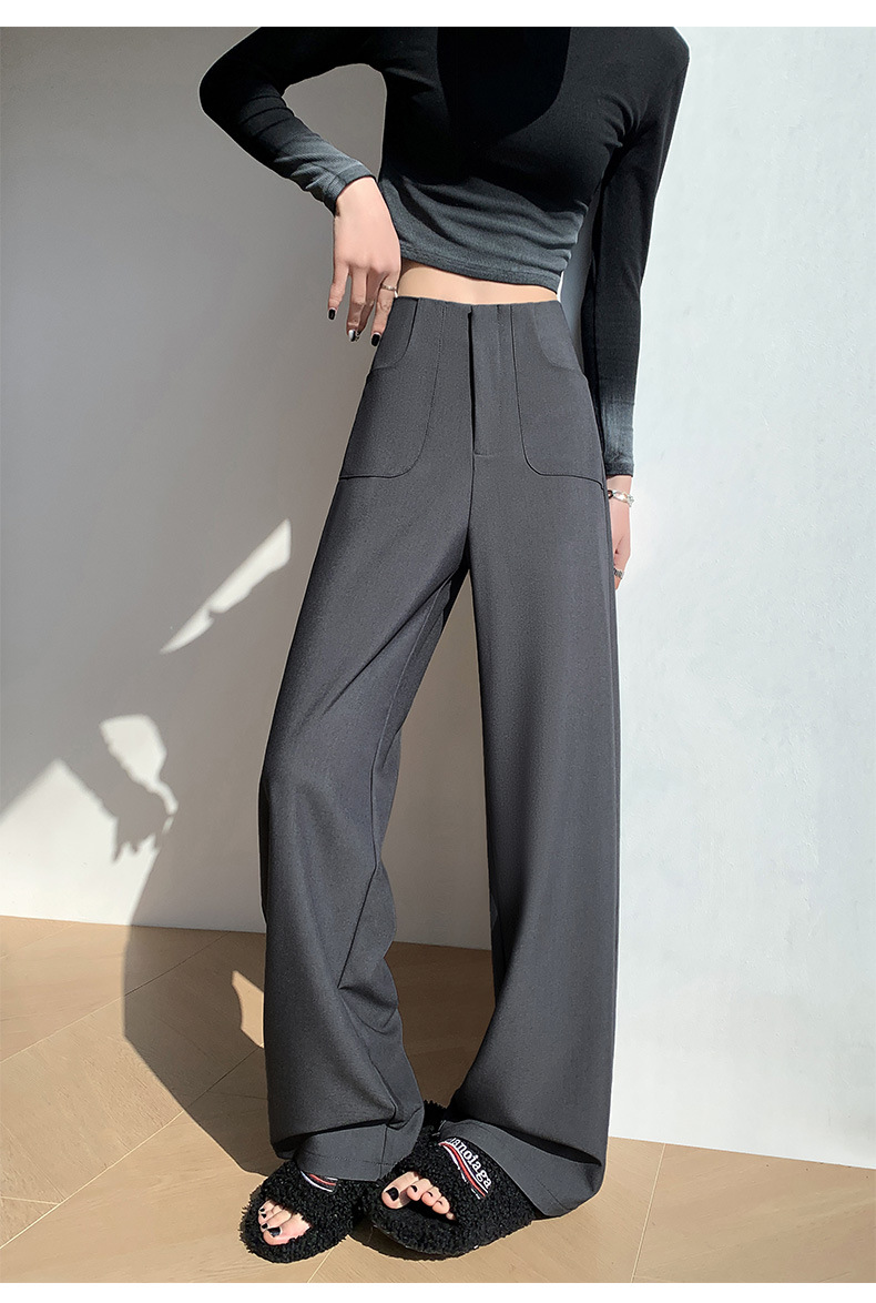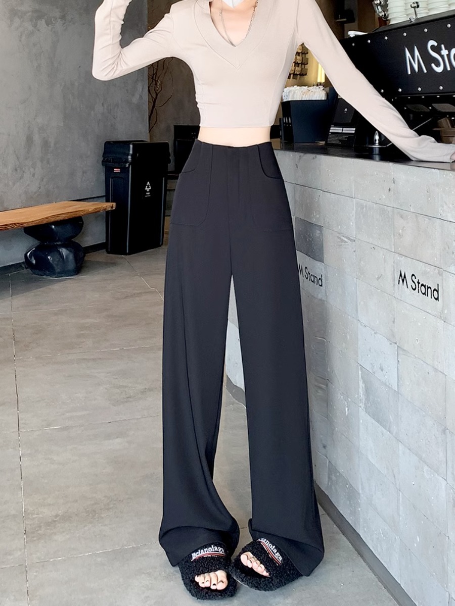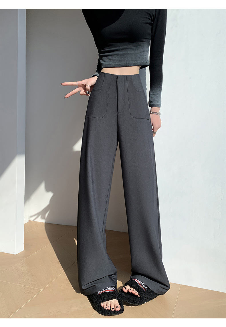 블랙 고급 여성 정장 바지 2026 봄 여름 신상 하이웨이스트 드레이프 캐주얼 롱 와이드 팬츠