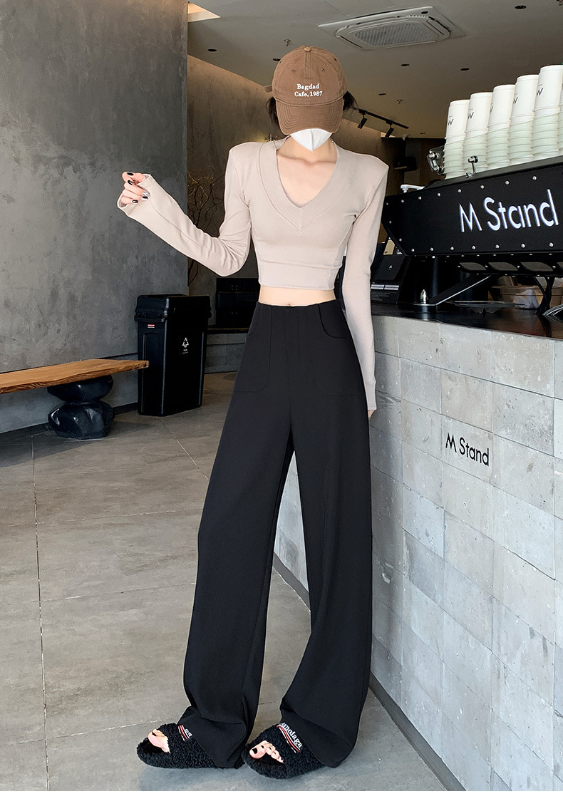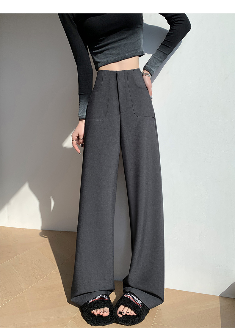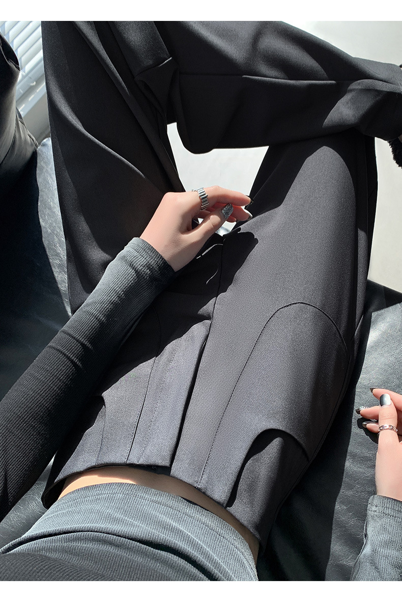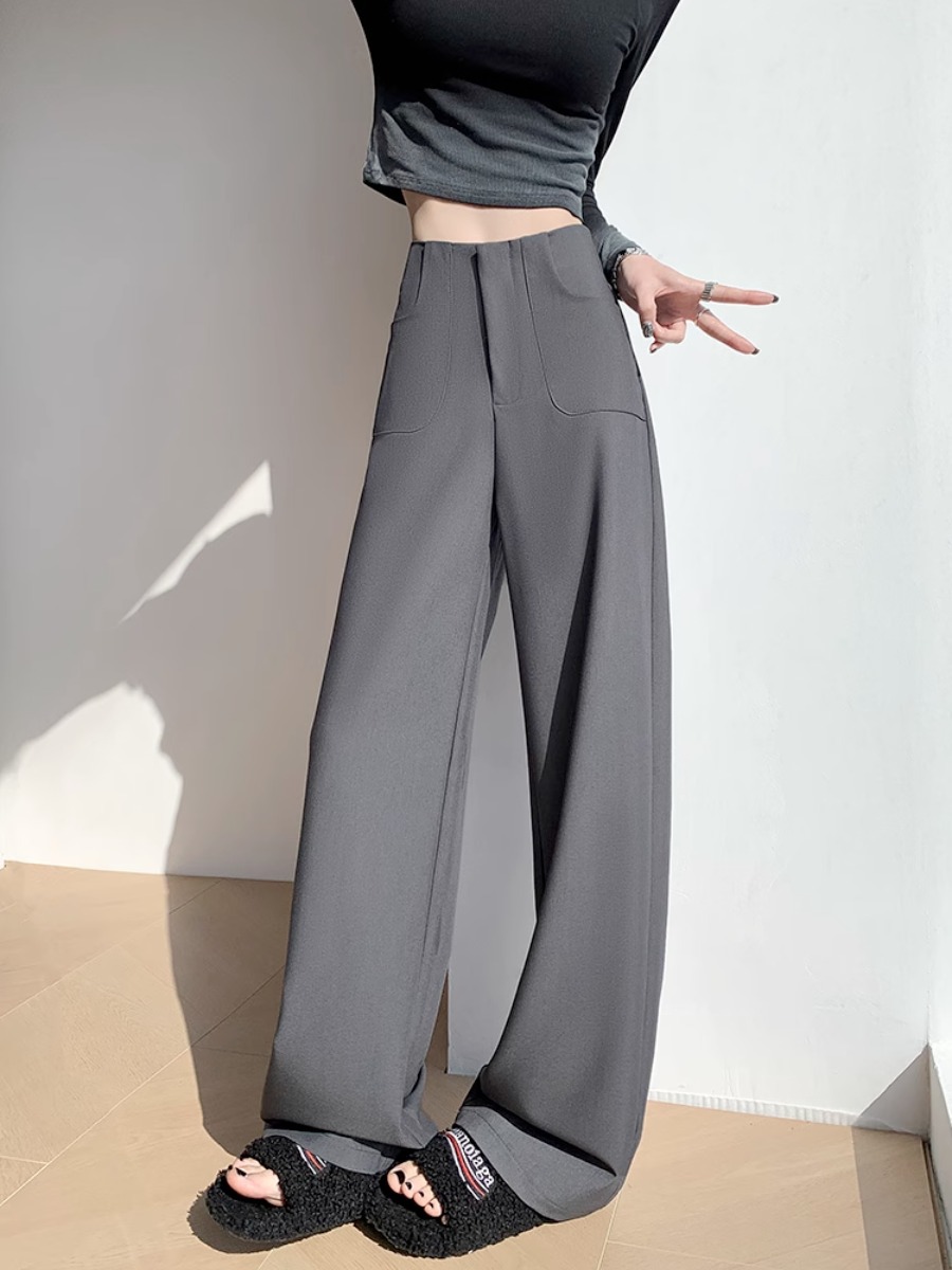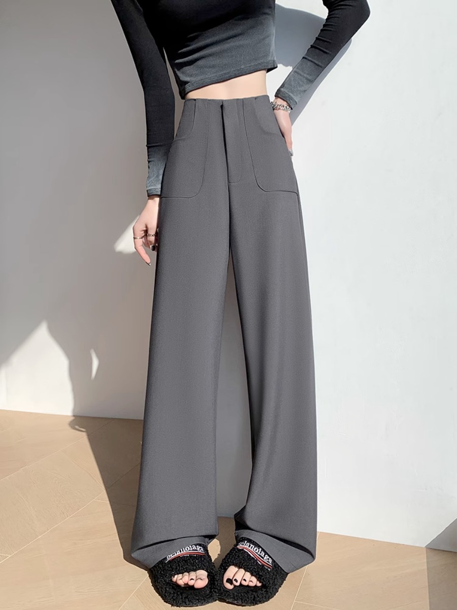 블랙 고급 여성 정장 바지 2026 봄 여름 신상 하이웨이스트 드레이프 캐주얼 롱 와이드 팬츠
