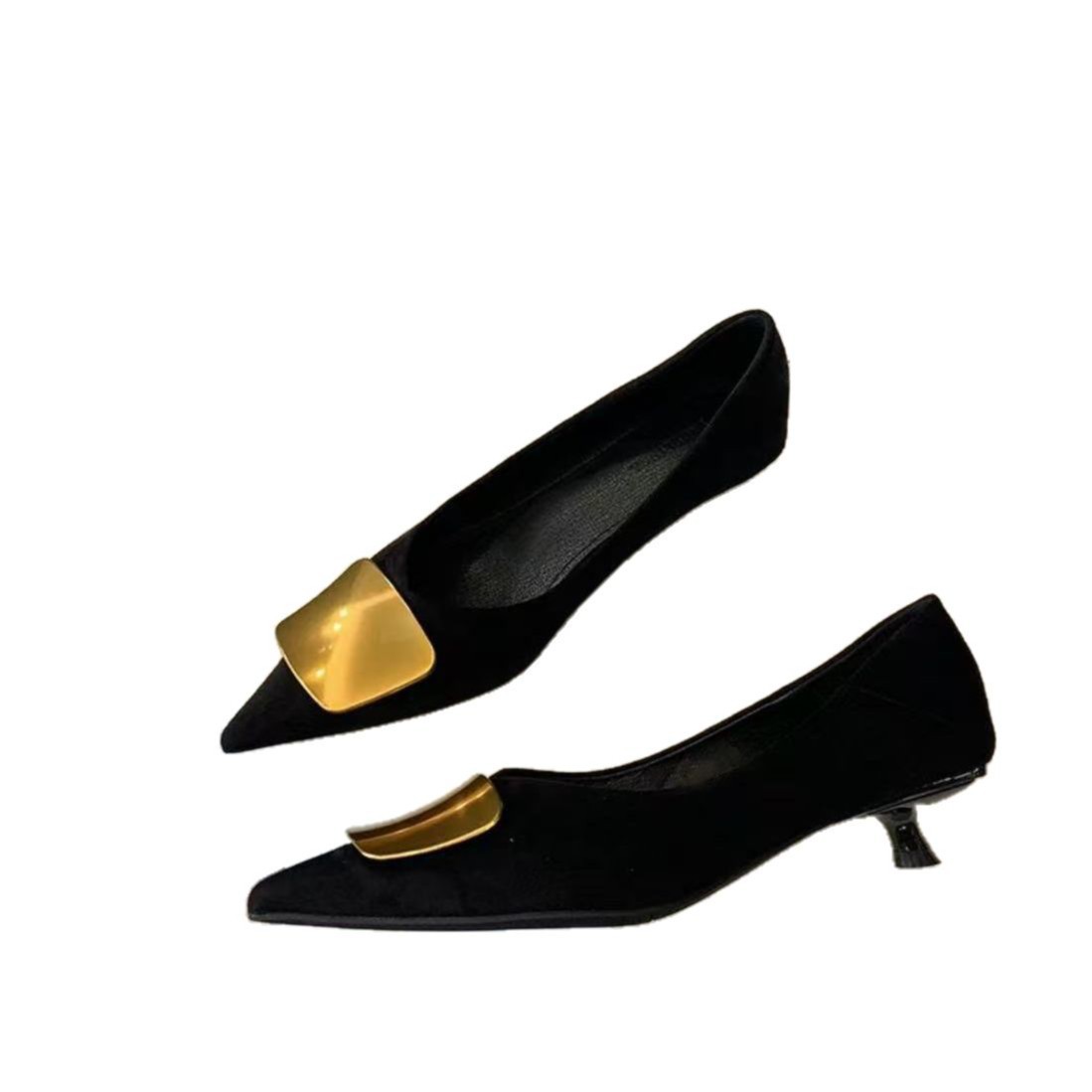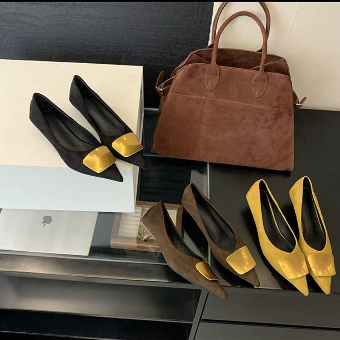 프렌치 스타일 여성용 포인티드 토 슈즈 2026 봄 신상품, 우아한 디자인의 부드러운 밑창 플랫 슈즈, 벨벳 플랫 슈즈, 블랙