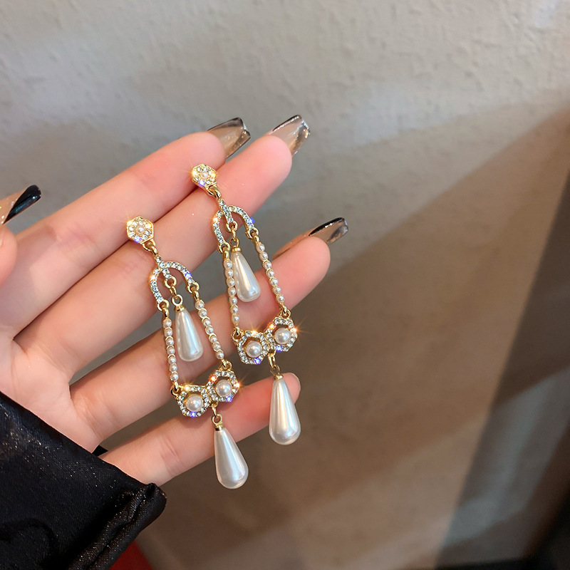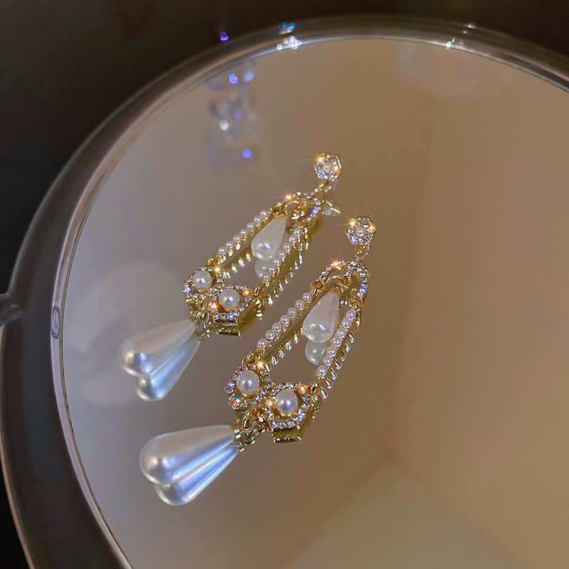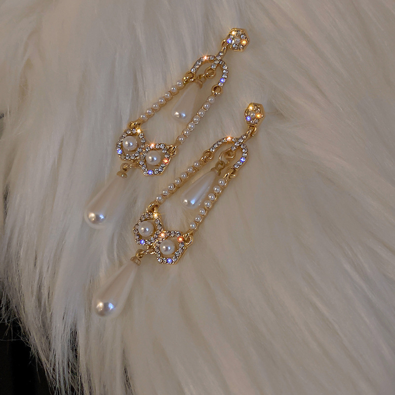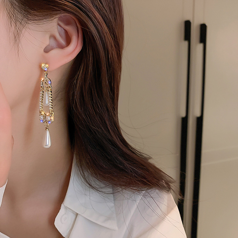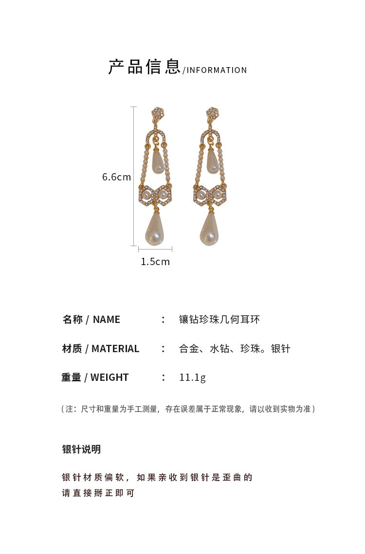 실버 바늘 슈퍼 플래시 다이아몬드 진주 기하학적 귀걸이 가벼운 럭셔리 우아한 우아한 우아한 우아한 귀걸이 프랑스 레트로 코트 스타일 귀걸이