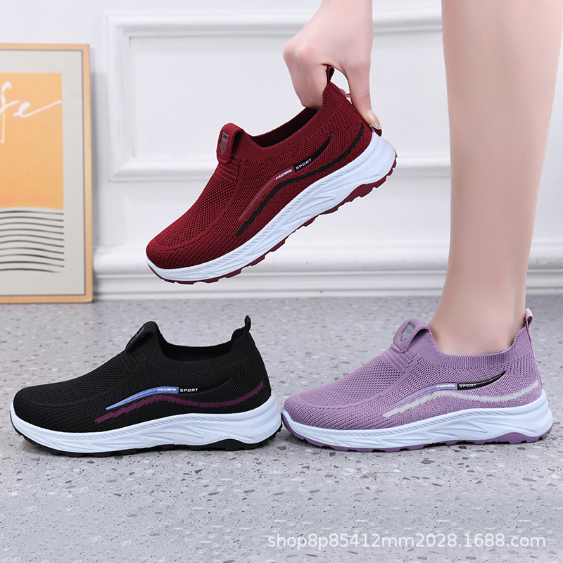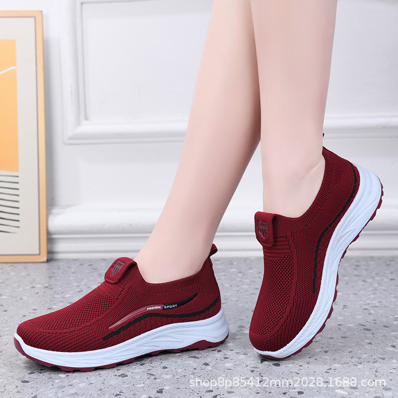 오래 된 베이징 여성 신발 봄과 여름 새로운 운동화 여성 경량 통기성 캐주얼 신발 메시 어머니를위한 통기성 플랫 신발