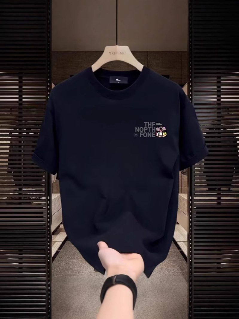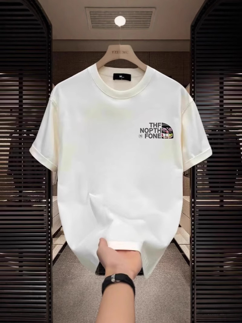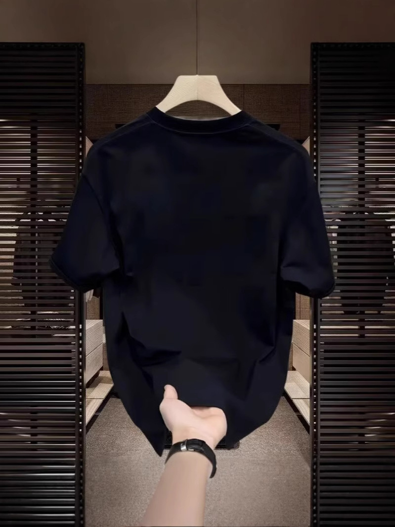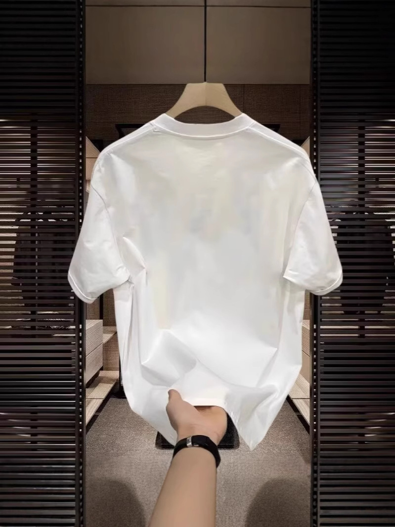 퓨어 코튼 하이 엔드 트렌디 브랜드 간단한 반팔 티셔츠 남성용 아메리칸 스타일 루즈 2025 여름 라운드 넥 탑 티셔츠