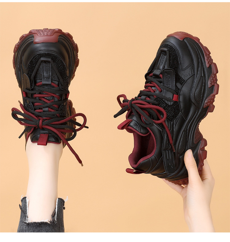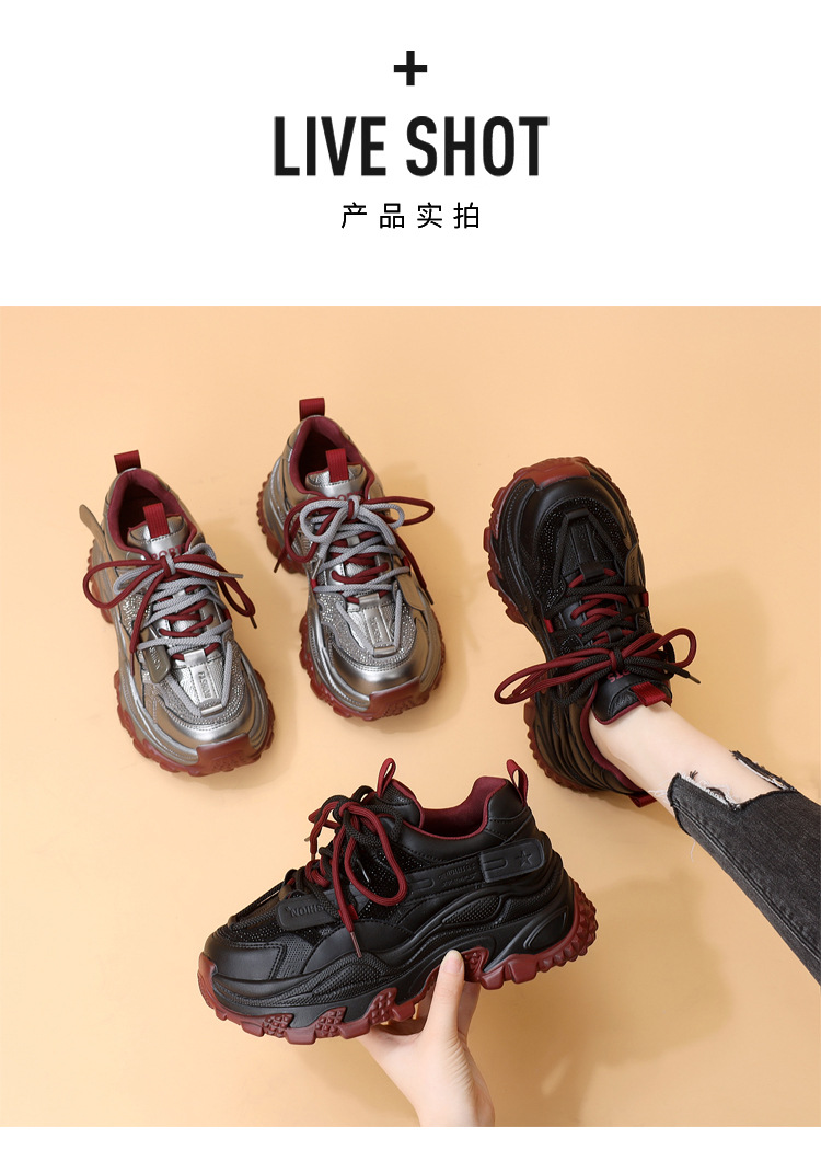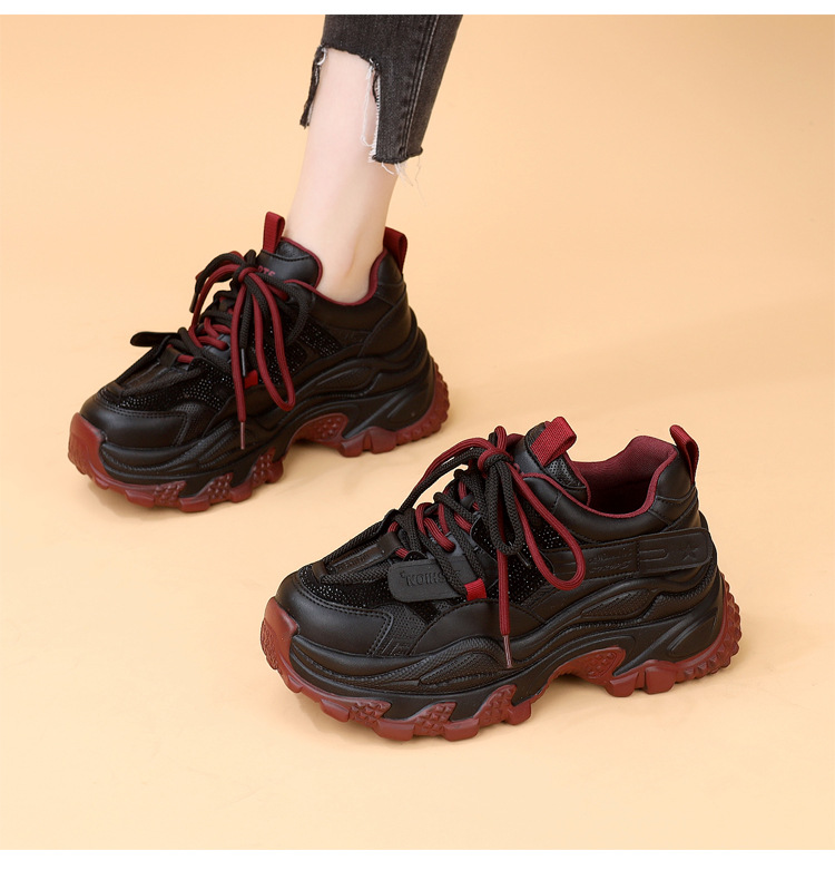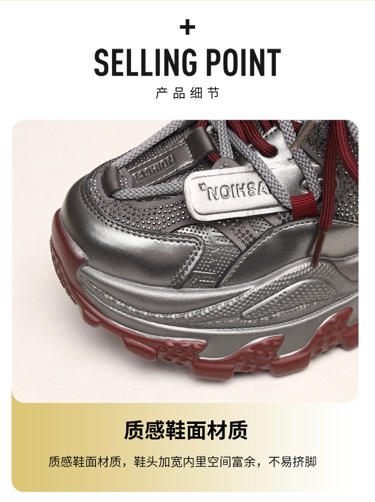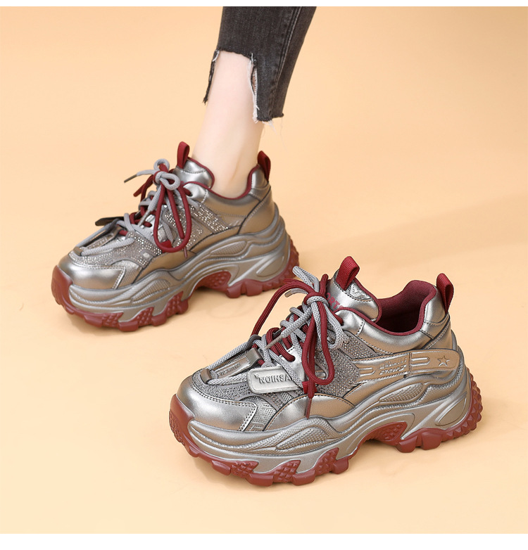 가죽 모조 다이아몬드 두꺼운 밑창 아빠 신발 여성 2024 새로운 가을과 겨울 기모 작은 두꺼운 밑창 캐주얼 운동화