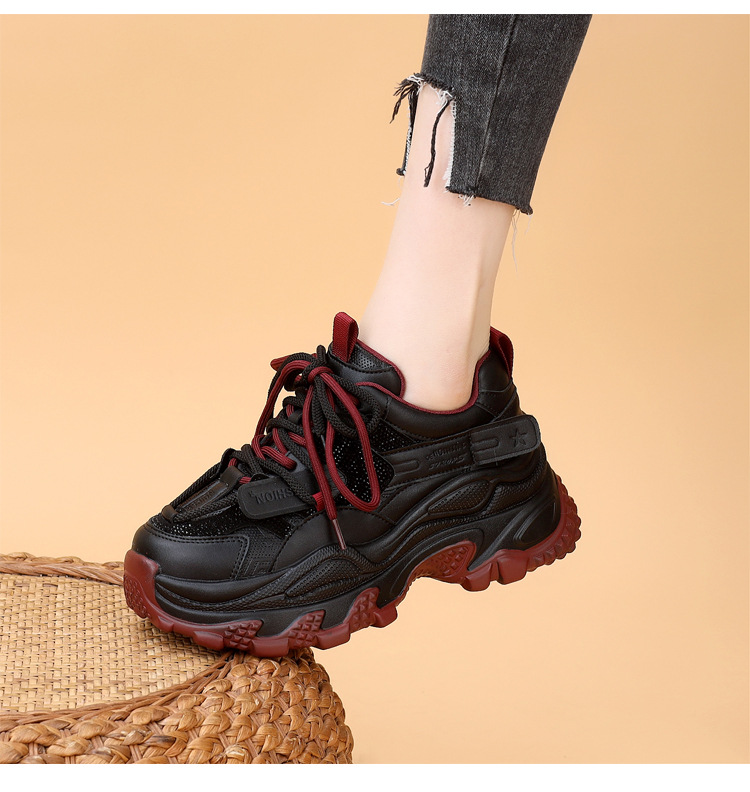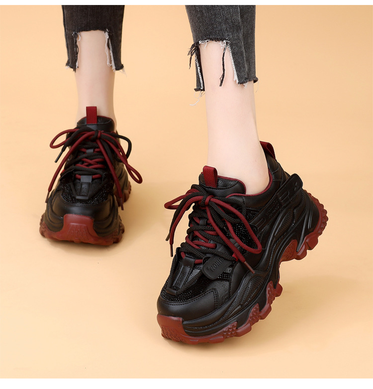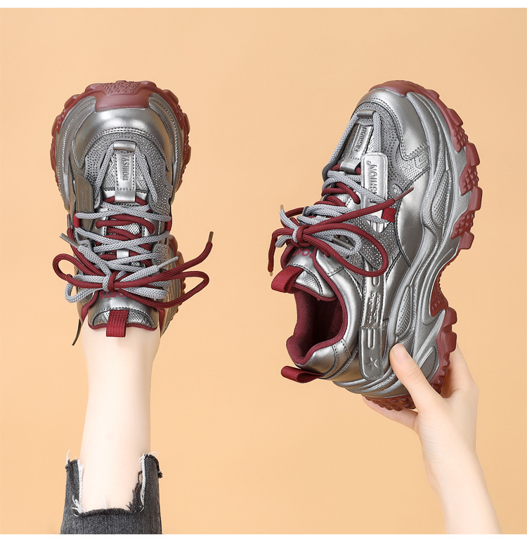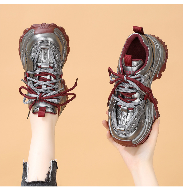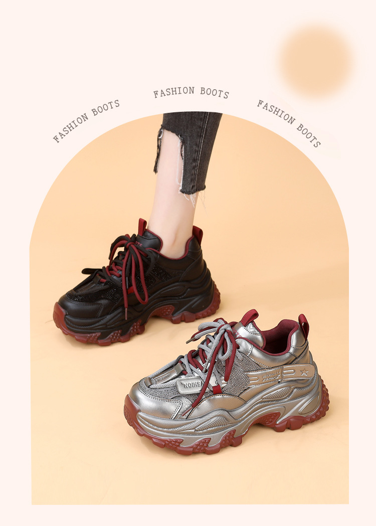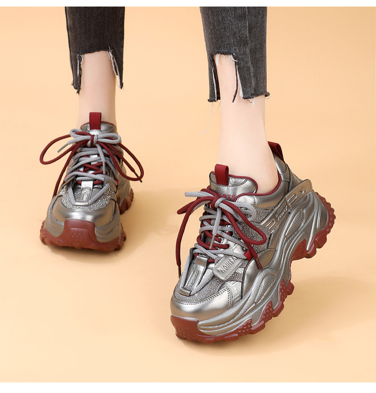 가죽 모조 다이아몬드 두꺼운 밑창 아빠 신발 여성 2024 새로운 가을과 겨울 기모 작은 두꺼운 밑창 캐주얼 운동화