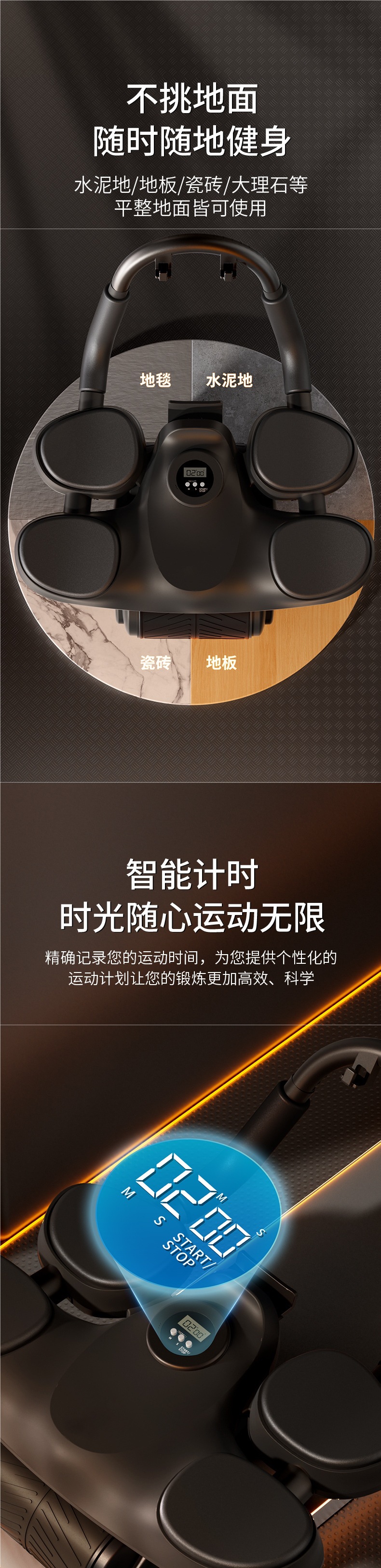 *[전용 조합 모델-블랙] 지능형 복부 휠 + 윗몸 일으키기 + 전문 스포츠 요가 매트/무릎 매트 무료*