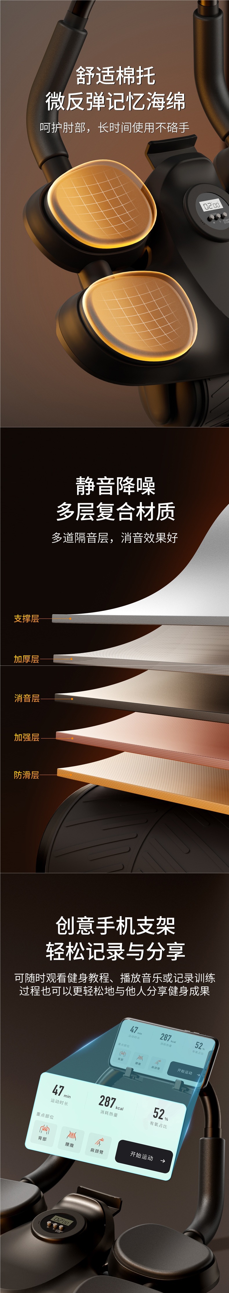 *[피트니스 매트 조합-오렌지] 스마트 복부 휠 + 전문 스포츠 요가 매트/무릎 매트 무료*