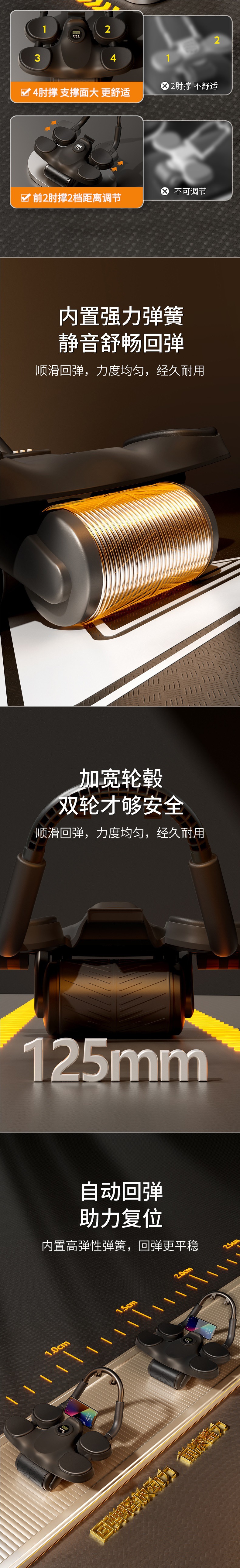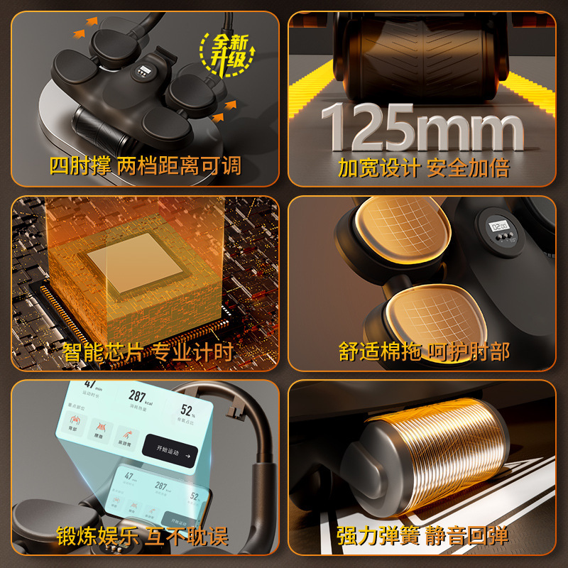Yuan Yi Jian 복부 휠 자동 리바운드 롤 복부 얇은 배 복부 근육 훈련 아티팩트 가정용 팔꿈치 지원 스포츠 피트니스 장비