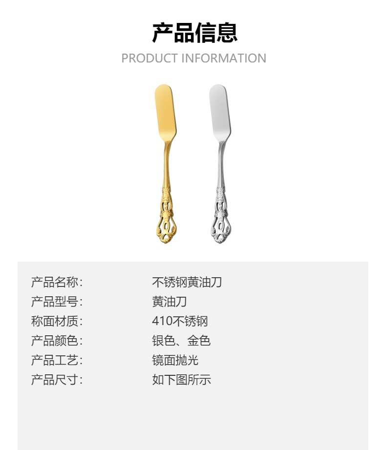 국경 간 도매 고급 레트로 스테인리스 궁정식 버터 나이프, 치즈 나이프, 스프레이저 나이프