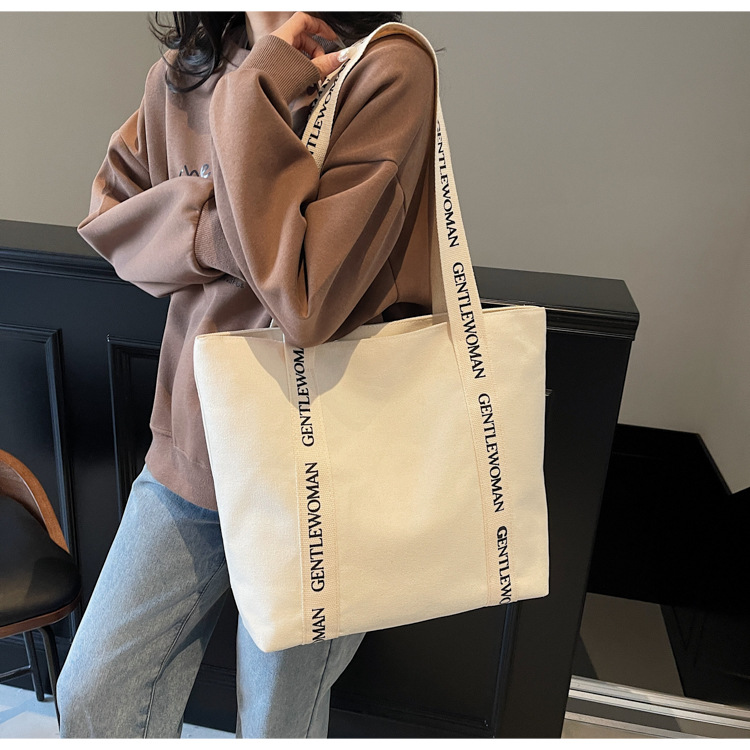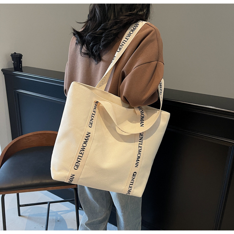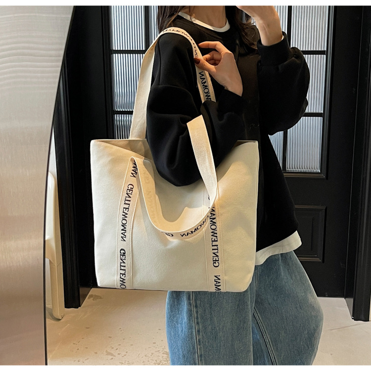 캔버스 가방 여성의 2025 새로운 트렌디 한 캐주얼 패션 손 어깨 가방 대형 용량 클래스 통근 토트 백