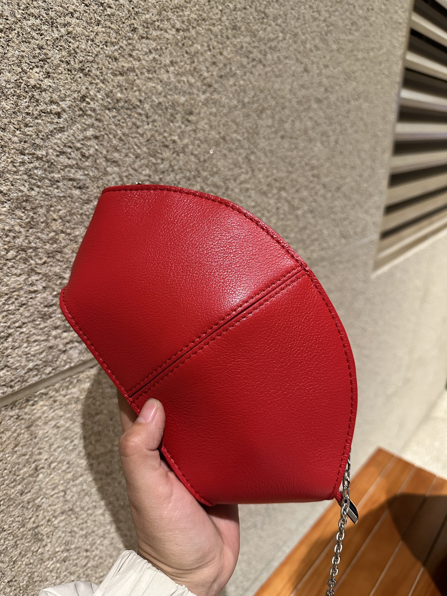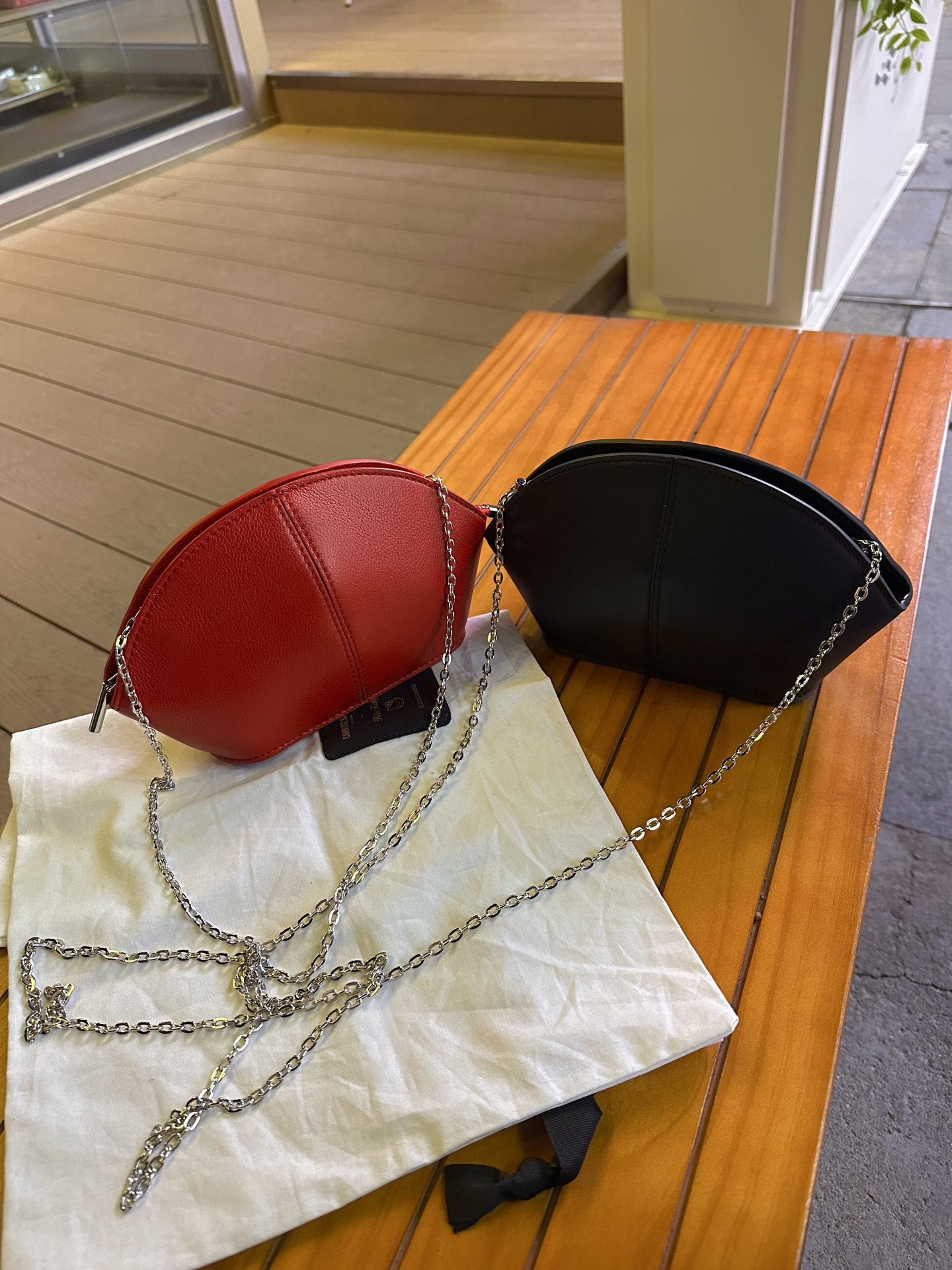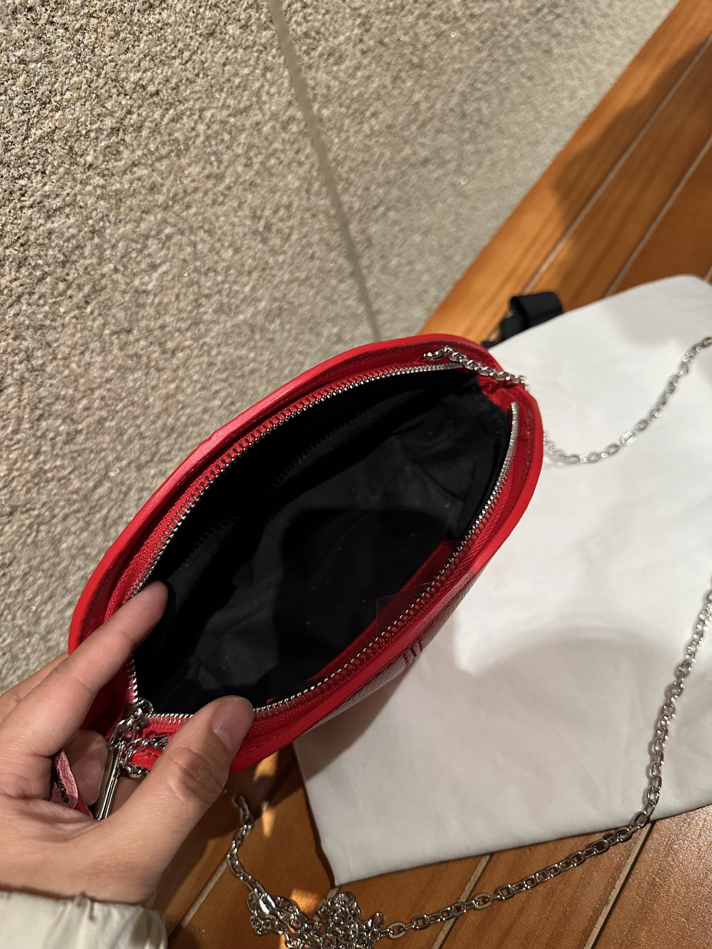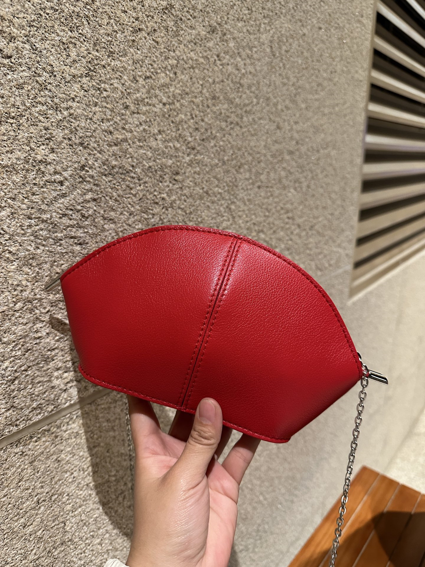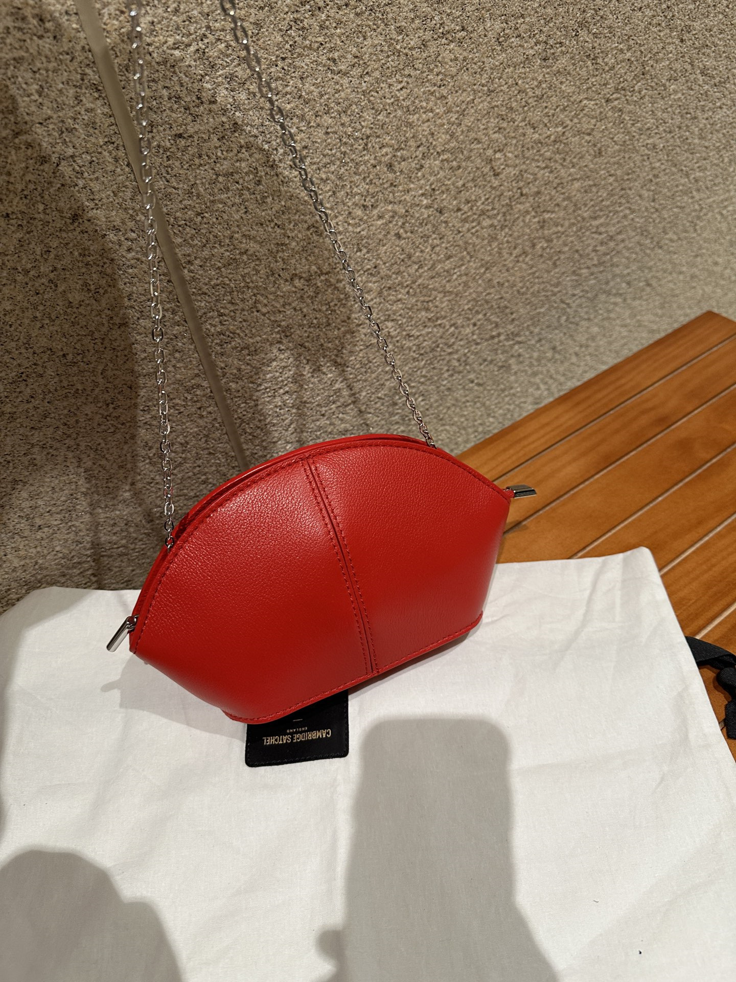 1등급 소가죽 쉘백, 샤오홍슈에서 인기 있는 레드 컬러 핸드 클러치 동전 지갑, 미니멀리스트 스타일 체인 크로스백