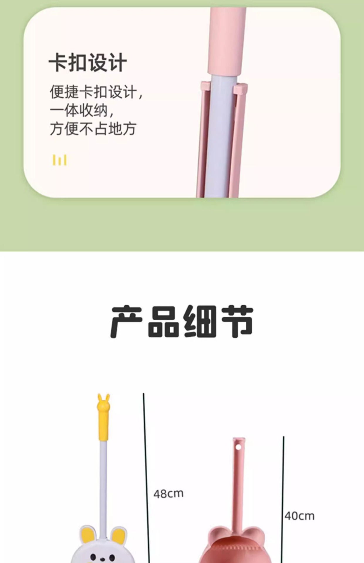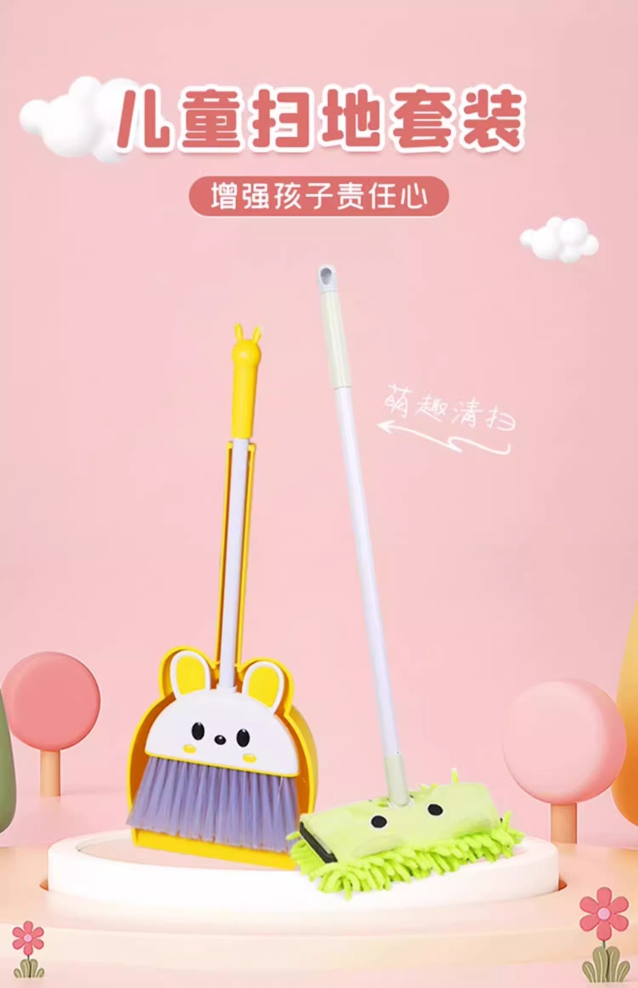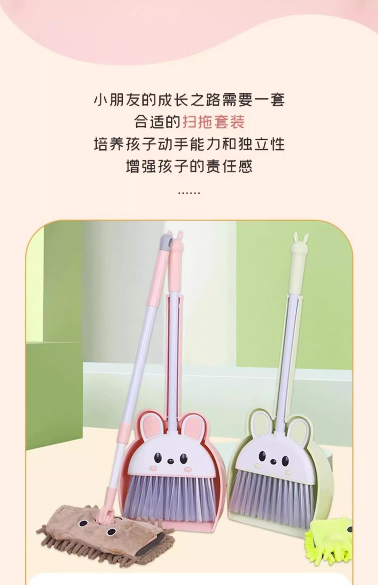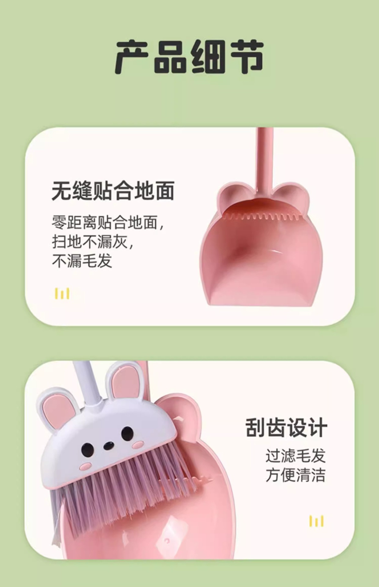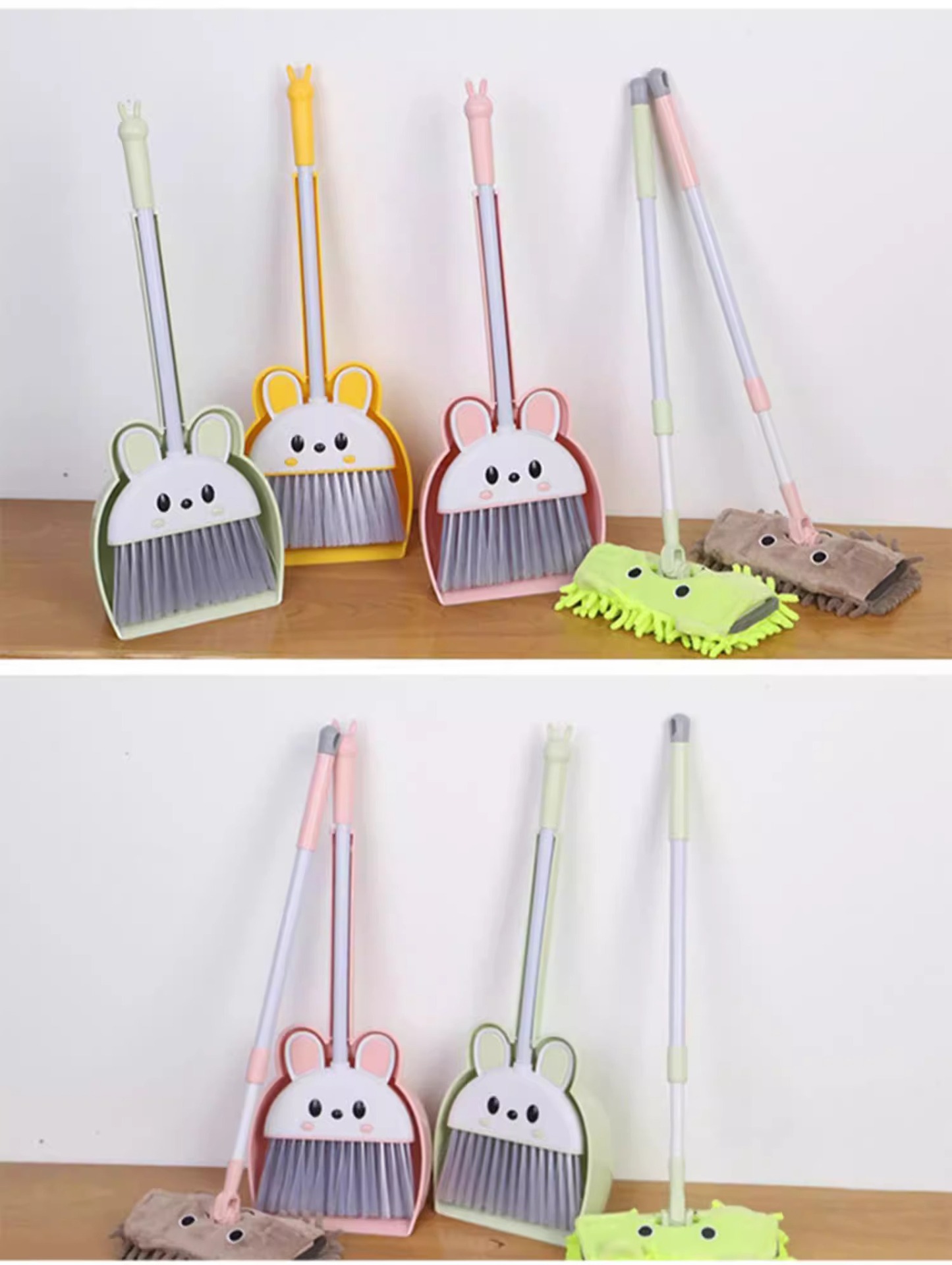 [그린 2종세트] 귀여운 토끼 쓰레받기 + 빗자루 (걸이 이빨 포함)